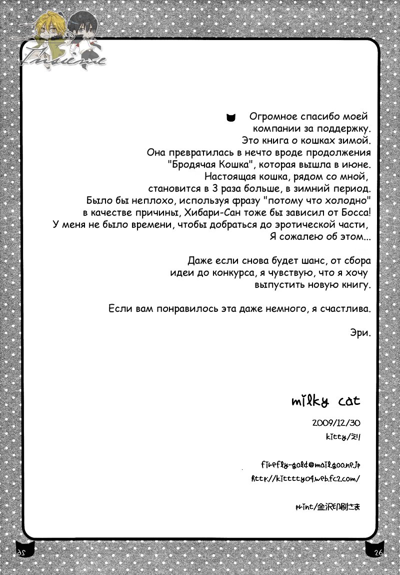 Katekyo Hitman Reborn! dj - Milky Cat (Молочный Кот) 1 Глава 1 2012-06-19 Показать все Читаем: Том: 1. Глава 1 ⬇ Пред глава ⬆ След глава Katekyo Hitman Reborn! dj - Milky Cat (Молочный Кот) 31 0 19 Июн 2012 в 0:00 00 0 Поделиться Переводчики: ao candle Категории: романтикасёнэн айдодзинси Теги: манга Дино/Хибари Комментарии 0 Добавить Отправить Комментариев еще нет. Вы можете стать первым Похожее Yowamushi Pedal dj - Green and Black Cat (Зеленый и Черный кот) 11 лет назад 00 0 1 Yowamushi Pedal dj - Green, black cat and rut (Зеленый кот, черный кот и половое возбуждение) 9 лет назад 00 0 1 Yongou x Keibi (Четвертая стража) 8 лет назад 00 0 24 The Husky and His White Cat Shizun (Хаски и его Учитель Белый Кот) 3 месяца назад 00 0 73 Shingeki no Kyojin dj - Mr. Smith's Black Cat (Чёрный кот мистера Смита) 7 лет назад 00 0 1 Shingeki no Kyojin dj - Mr. Smith's Black Cat II (Чёрный кот мистера Смита 2) 3 года назад 00 0 1 Nakanai Hibari (Хибари не будет плакать) 3 года назад 00 0 6 My Milky Roomie - Homemade Pudding (Мой Молочный Соседушка - Домашний Пудинг) 9 месяцев назад 00 0 1 Katekyo Hitman Reborn! Fantastic Fantasy Hour (Чудесный фантастический час) 3 года назад 00 0 1 Katekyo Hitman Reborn! Lyrical Magical Time (Лирическое волшебное время) 3 года назад 00 0 1 Katekyo Hitman Reborn! Midnight Temptation (Полуночная страсть) 3 года назад 00 0 1 Katekyo-Hitman, Reborn! dj - Nyan to wonderful (Волшебное мяуканье) 13 лет назад 00 0 1 Katekyo Hitman Reborn! dj - Wait in Uranus (Репетитор киллер Реборн! - Ожидание на Уране) 11 лет назад 00 0 1 Katekyo Hitman Reborn! dj - Yuugai Kagoubutsu (Губительная смесь) 13 лет назад 00 0 1 Katekyo Hitman Reborn! dj – Andante (Репетитор киллер, Реборн! – Андантэ) 7 лет назад 00 0 1 Katekyo Hitman Reborn! dj - Vampire Wars (Вампирские войны) 10 лет назад 00 0 1 Katekyo Hitman Reborn! dj - Virginia (Непорочность) 11 лет назад 00 0 1 Katekyo Hitman Reborn! dj - That's Tough Luck!! (Это неудачи!!) 14 лет назад 00 0 1 Katekyo Hitman Reborn! dj - The Boy Next Door (Мальчик по соседству) 13 лет назад 00 0 1 Katekyo Hitman Reborn! dj - The Eternity You Desire (Учитель Мафиози Реборн dj -Kimi ga Nozomu Eien) 14 лет назад 00 0 1 Katekyo Hitman Reborn! dj - The Ways We Express Our Love (Как мы выражаем нашу любовь) 12 лет назад 00 0 1 Katekyo Hitman Reborn! dj - Theseuse H 12 лет назад 00 0 1 Katekyo Hitman Reborn! dj - Snow Lovers (Снежные возлюбленные) 12 лет назад 00 0 1 Katekyo Hitman Reborn! dj - Someday I Will Sing to the Sky (Когда-нибудь я спою для небес) 10 лет назад 00 0 1 Katekyo Hitman Reborn! Dj - Sweet room (Сладкая комната) 13 лет назад 00 0 1 Katekyo Hitman Reborn! dj - Sweet Trap (Сладкая ловушка) 13 лет назад 00 0 1 Katekyo Hitman Reborn! dj - Seaside School (Побережье) 13 лет назад 00 0 1 Katekyo Hitman Reborn! dj - Shall We Fall in Love (Katekyo Hitman Reborn! dj - Saa, Koi wo Shiyou ka) 14 лет назад 00 0 1 Katekyo Hitman Reborn! dj - Shoumonai White Day no Hon (Бесполезный Белый День) 13 лет назад 00 0 1 Katekyo Hitman Reborn! dj - Raito 13 лет назад 00 0 1 Katekyo Hitman Reborn! Dj - Repeat After (Повторяй) 13 лет назад 00 0 1 Katekyo Hitman Reborn! dj - Replay 10 лет назад 00 0 1 Katekyo Hitman Reborn! dj - Onsen Ryokou (Горячие источники) 10 лет назад 00 0 2 Katekyo Hitman Reborn! dj - Ouji (Принц) 10 лет назад 00 0 1 Katekyo Hitman Reborn! dj - Overcompensation (Сверхкомпенсация) 13 лет назад 00 0 1 Katekyo Hitman Reborn! dj - Overexcited (Перевозбужден) 13 лет назад 00 0 1 Katekyo Hitman Reborn! dj - Oyasumi (Спокойной ночи) 9 лет назад 00 0 1 Katekyo Hitman Reborn! dj - Poison Chocolate 14 лет назад 00 0 1 Katekyo Hitman Reborn! dj - Pure (Девственник) 13 лет назад 00 0 1 Katekyo Hitman Reborn! Dj - R-roky (Katekyo Hitman Reborn! Dj - Р-року) 13 лет назад 00 0 1 Katekyo Hitman Reborn! dj - Natsu no Hon 13 лет назад 00 0 1 Katekyo Hitman Reborn! dj - Natsuyasumi (Летние каникулы) 14 лет назад 00 0 1 Katekyo Hitman Reborn! dj - Neko no Iibun (Кошачье признание) 12 лет назад 00 0 1 Katekyo Hitman Reborn! dj - Neko wa suki desu ka (А вы любите кошек?) 12 лет назад 00 0 1 Katekyo Hitman Reborn! dj - Night without You, Morning without You (Дни без тебя, Ночи без тебя) 12 лет назад 00 0 1 Katekyo Hitman Reborn! dj - Nounai Sapuri (Слабое сопротивление) 13 лет назад 00 0 1 Katekyo Hitman Reborn! dj - One Day (Один день) 12 лет назад 00 0 1 Katekyo Hitman Reborn! Dj - Misunderstanding (Katekyo Hitman Reborn! Dj - Недоразумение) 13 лет назад 00 0 1 Katekyo Hitman Reborn! dj - Lover's spice XXX (Некоторые любят поострее) 12 лет назад 00 0 1 Katekyo Hitman Reborn! DJ - Lunatic Fringe