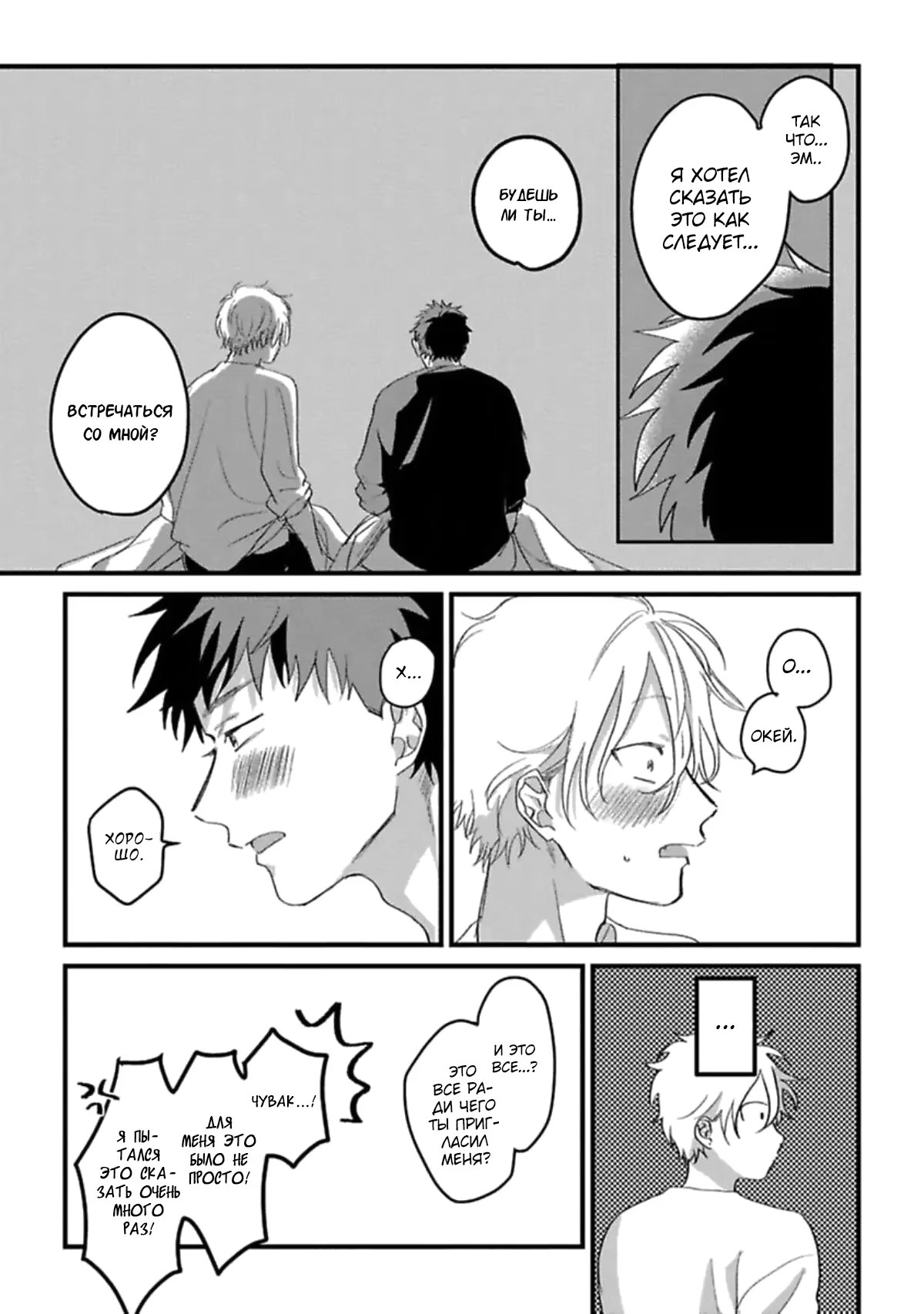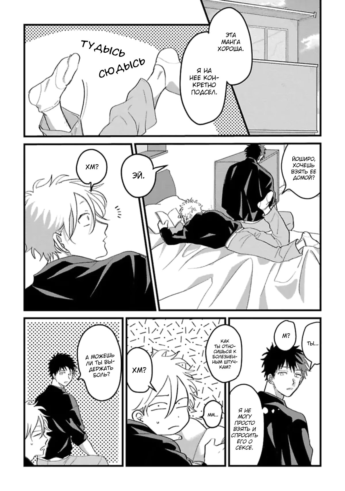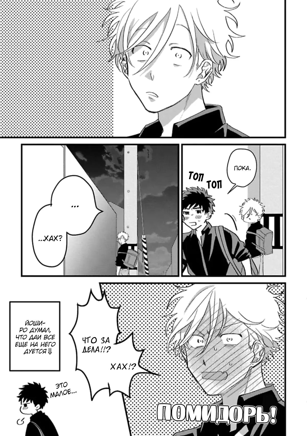 dangoЙоширо уже несколько лет испытывает скрытые безответные чувства к своему другу детства Даю. Он постоянно отказывает милым девушкам, когда они приглашают его на свидание. Не обращая внимания на чувства Йоширо, Дай завидует популярности Йоширо среди девушек. Йоширо не собирается когда-либо говорить своему другу правду и смиряется с такой жизнью. Так было до тех пор, пока однажды их не пригласили на гокон, где Йоширо каким-то образом затащил Дая в мотель и попытался толкнуть его на кровать... Это дразнящая история любви о том, как неудачник с безответными чувствами и его легкомысленный друг детства становятся парой.