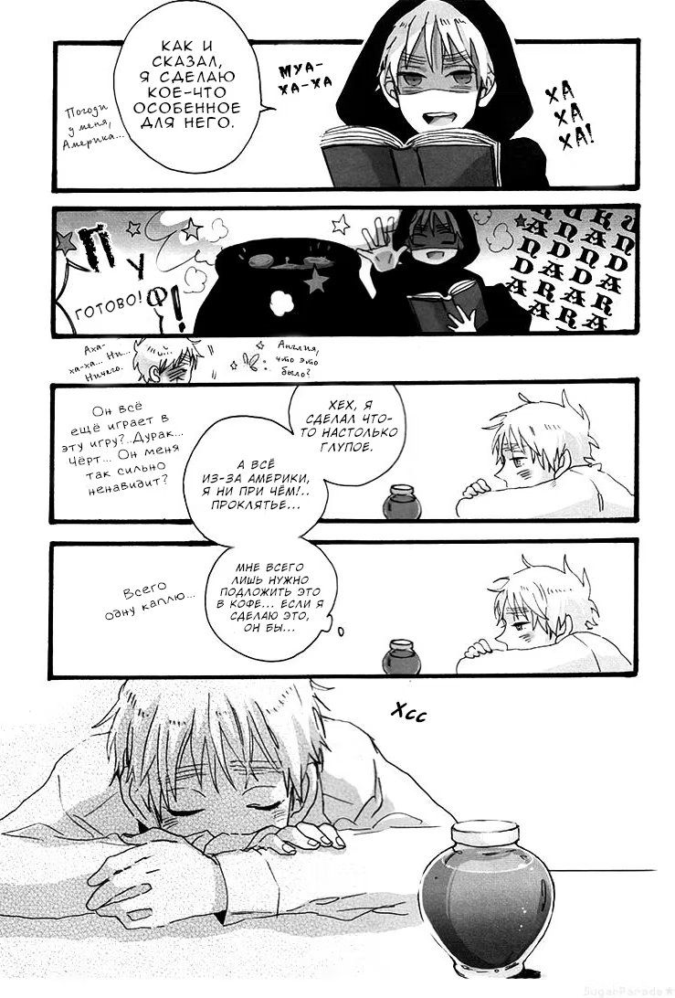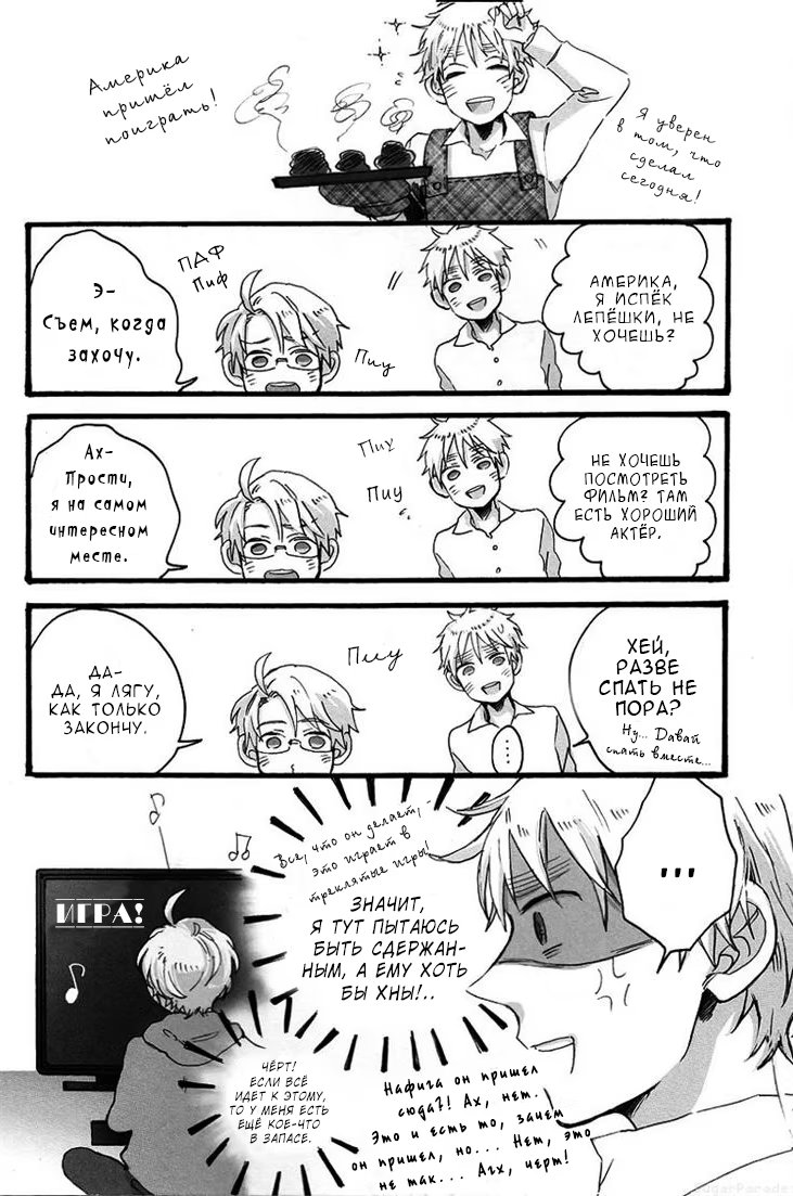 Америка так увлечен видеоиграми, что совсем не замечает Англию, а стоило бы, ведь его нельзя оставлять одного: того и глядишь, какое-нибудь зелье от обиды сварит да ещё и оставит на видном месте.