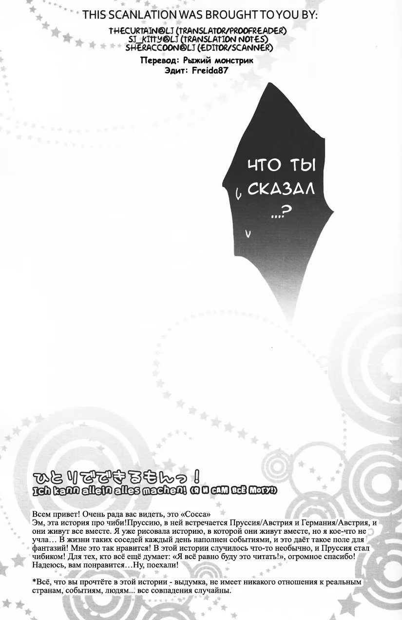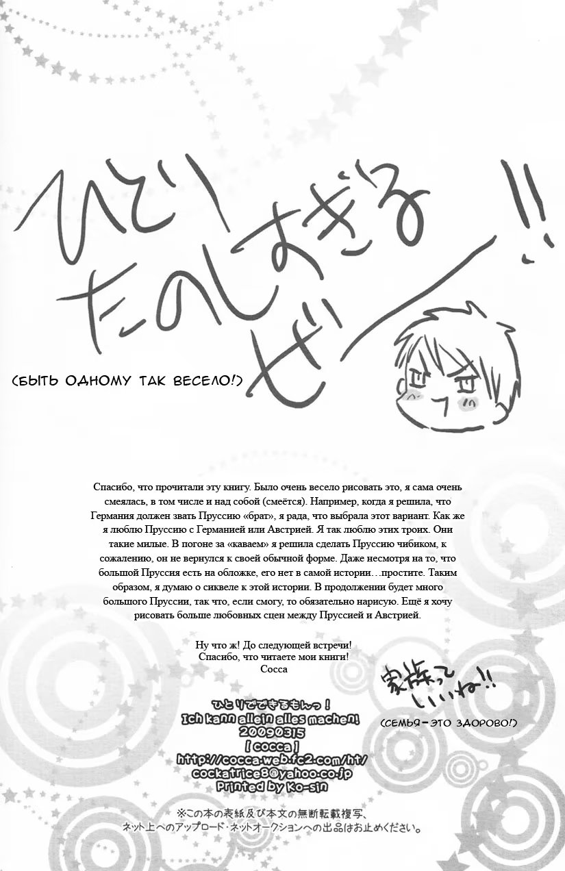 Hetalia dj - I can do it myself! (Я сам со всем справлюсь!) 1 Глава 1 2015-03-12 Показать все Читаем: Том: 1. Глава 1 ⬇ Пред глава ⬆ След глава Hetalia dj - I can do it myself! (Я сам со всем справлюсь!) 23 0 12 Мар 2015 в 0:00 00 0 Поделиться Переводчики: рыжий монстрик norakura Категории: сёнэн айкомедиядодзинси Теги: манга Персонажи: Австрия, Германия и Пруссия.Часть серии: 1) Вальс2) Теплый взгляд3) Я и сам все смогу! Комментарии 0 Добавить Отправить Комментариев еще нет. Вы можете стать первым Похожее Yokujou (Влечение) 6 лет назад 00 0 6 Xenoblade Chronicles 2 dj (Memento-RE_X-) 5 лет назад 00 0 1 Xenoblade Chronicles 2 dj - Jikureko Onsen Tour Series 1 (Похождения по горячим источникам 1) 6 лет назад 00 1 1 Xenoblade Chronicles 2 dj - Kizuna Power❤∞ (Бесконечная связь.❤) 5 лет назад 00 0 1 Xenoblade Chronicles 2 dj - Nyanko Rex-kun to Nyannyan Shiyo! (Кошачьи шалости с Рексом!) 5 лет назад 00 0 1 Xenoblade Chronicles 2 dj - Suki tte Omottara, Ippai Heart ga Dechau (Любовь и указывающие на неё сердечки.) 5 лет назад 00 0 1 Xenoblade Chronicles 2 dj - Zeke to Rex ga Ichaicha Shiteitara, Rex ga Kitanode Matomete Ichaicha Shita. (Зик с Рексом занимались любовью, а потом появился другой Рекс, и они стали заниматься любовью все вместе.) 5 лет назад 00 0 1 Vanity (Тщетно) 14 лет назад 00 0 1 Unmei ni Kiss (Поцелованный судьбой) 9 лет назад 00 0 6 Tadaima, Okaeri (Я дома, Добро пожаловать) 8 лет назад 00 0 8 Rules (Правила) 14 лет назад 00 0 19 Rules dj - Double Trouble (Двойная проблема) 14 лет назад 00 0 1 Rules dj - Hello Again (И снова здравствуй) 12 лет назад 00 0 1 Rules dj - Song Birds (Певчие птицы) 14 лет назад 00 0 1 Rules doujinshi: If Winter comes, can Spring be far behind? 14 лет назад 00 0 1 Rules/Hydra (Правила/Гидра (короткие истории)) 14 лет назад 00 0 7 Please (Пожалуйста) 14 лет назад 00 0 6 Naruto dj - Kyusaisochi dattebayo (Критические меры по оказанию первой помощи, даттебайо) 7 лет назад 00 0 1 Naruto dj - Ikusen no sorabi teri hoshi no afureru yoru no aoshahin (Мириадами звёздных огней освещённая ночь) 5 лет назад 00 0 11 Naruto dj - Fudan no kizuna joshou (Постоянная связь. Пролог) 6 лет назад 00 0 1 Lovers and Souls (Любовники и души) 14 лет назад 00 0 7 Kuroko no Basket dj - Sayonara kompasu (Прощай, компас) 9 лет назад 00 0 1 Kuroko no Basket dj - Mata kite chikaku (Подойди поближе) 9 лет назад 00 0 1 Kuroko no Basket dj - Gokigen gokaku de mata ashita (Завтра мы встретимся на равных) 9 лет назад 00 0 1 I'm Home, Welcome Back 3 (Я дома. Добро пожаловать 3) 5 лет назад 00 0 10 I'm Home, Welcome Back 4 (Я дома. Добро пожаловать 4) 3 года назад 00 0 8 I'm Home, Welcome Back 5 (Я дома. Добро пожаловать 5) 5 месяцев назад 00 0 9 I'm Home, Welcome Back 2 (Я дома. Добро пожаловать 2) 6 лет назад 00 0 10 I want to express my condolences to the remaining man 2 (Хочу выразить соболезнования оставшемуся мужчине 2) 4 года назад 00 0 1 I want to express my condolences to the remaining man 3 (Хочу выразить соболезнования оставшемуся мужчине 3) 4 года назад 00 0 1 I want to express my condolences to the remaining man 4 (Хочу выразить соболезнования оставшемуся мужчине 4) 4 года назад 00 0 1 I want to express my condolences to the remaining man 5 (Хочу выразить соболезнования оставшемуся мужчине 5) 4 года назад 00 0 1 I want to express my condolences to the remaining man (Хочу выразить соболезнования оставшемуся мужчине) 4 года назад 00 0 1 I can lie well if I put on my uniform (В форме легче лгать) 7 лет назад 00 0 7 Hydra (Гидра) 13 лет назад 00 0 16 Hydra dj - Blue Film First 13 лет назад 00 0 1 Hydra dj - Sono Mae no Hibi 12 лет назад 00 0 1 Hetalia dj – The Dog’s Mood (Hetalia dj – Собачьи прихоти) 9 лет назад 00 0 1 Hetalia dj - Your Laws (Hetalia dj - Твои правила) 8 лет назад 00 0 1 Hetalia dj - Yuminabe (Вкуснейшее набэ) 9 лет назад 00 0 1 Hetalia dj – 1950 9 лет назад 00 0 1 Hetalia dj – Aru Ai no Shi to Fumetsu no Koi ni Yosete (Hetalia dj – Смерть любви и бессмертный возлюбленный) 9 лет назад 00 0 1 Hetalia dj – Natsu no Mamono (Летнее видение) 9 лет назад 00 0 1 Hetalia dj - Valentin! 10 лет назад 00 0 1 Hetalia dj - Walzer (Вальс) 10 лет назад 00 0 1 Hetalia dj - Wan Li Tiao Yi 10 лет назад 00 0 1 Hetalia dj - We will meet again (Мы встретимся снова) 10 лет назад 00 0 1 Hetalia dj - Yami to Yoake no Aida (Между светом и тьмой) 9 лет н