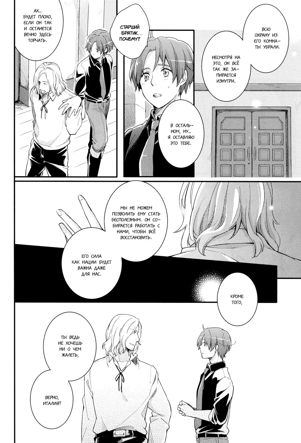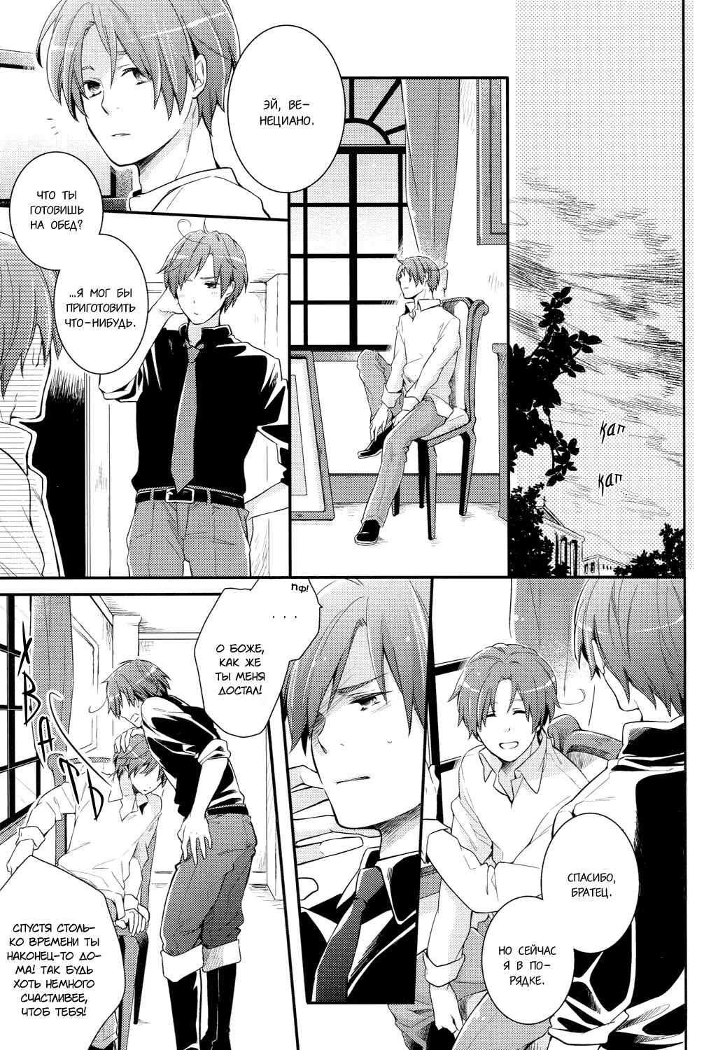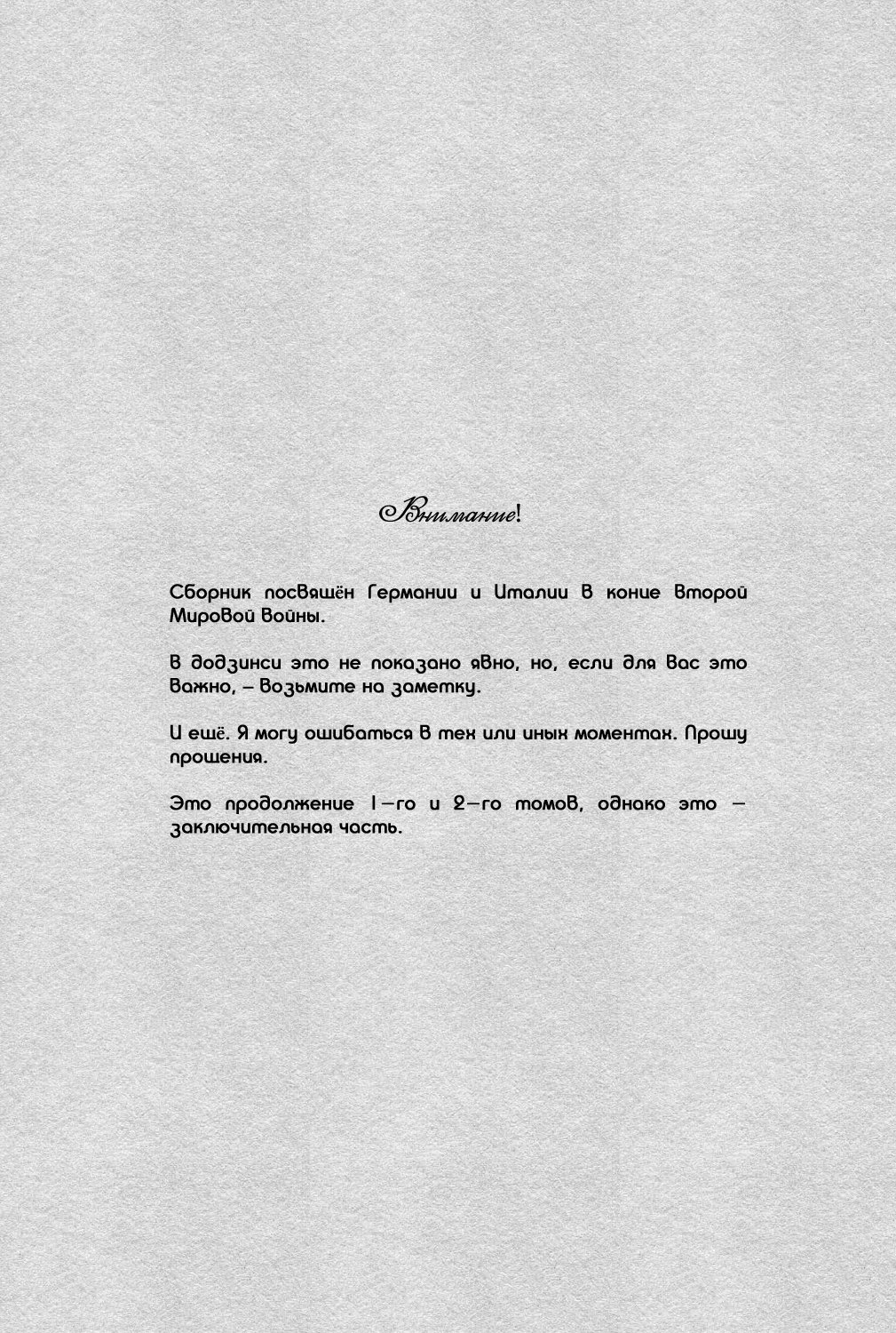 Hetalia dj - Futari Gokko (Наша война) 3 Глава 0 2016-02-12 2 Глава 0 2016-01-16 1 Глава 0 2015-12-21 Показать все Читаем: Том: 3. Глава 0 ⬇ Пред глава ⬆ След глава Hetalia dj - Futari Gokko (Наша война) 59 0 12 Фев 2016 в 0:00 00 0 Поделиться Переводчики: швеция одобряет Категории: романтикаяойдрамадодзинси Теги: манга Пейринг: Германия/Северная Италия Комментарии 0 Добавить Отправить Комментариев еще нет. Вы можете стать первым Похожее Эль Блейз и Кинг (EL BLAZE & THE KING) 7 месяцев назад 00 0 6 Shingeki no Kyojin dj - Ookina Futari to Chiisana Futari (Большие и маленькие) 4 года назад 00 0 1 Hetalia dj – The Dog’s Mood (Hetalia dj – Собачьи прихоти) 9 лет назад 00 0 1 Hetalia dj - Yotogibanashi 11 лет назад 00 0 1 Hetalia dj – Natsu no Mamono (Летнее видение) 9 лет назад 00 0 1 Hetalia dj - Walzer (Вальс) 10 лет назад 00 0 1 Hetalia dj - Sposa di Adria (Невеста Адриатики) 8 лет назад 00 0 1 Hetalia dj - Stamp 1 10 лет назад 00 0 1 Hetalia dj - Stamp 4 10 лет назад 00 0 1 Hetalia dj - Su-Jiku Gate (Врата Оси) 7 лет назад 00 0 1 Hetalia dj - Sweet Home (Милый дом) 10 лет назад 00 0 1 Hetalia dj - Secret Garden 10 лет назад 00 0 1 Hetalia dj - Passato ed Ora 12 лет назад 00 0 1 Hetalia dj - Promised Land 10 лет назад 00 0 1 Hetalia dj - Natsu no Mamono (Призрачное лето) 7 лет назад 00 0 1 Hetalia dj - Okubyoumono no Koufuku (Счастье труса) 9 лет назад 00 0 1 Hetalia dj - Love Slave 10 лет назад 00 0 1 Hetalia dj - Love Therapy (Любовная терапия) 10 лет назад 00 0 1 Hetalia dj - Mawata no Koi (Любовь, охватившая моё сердце шёлковой нитью) 10 лет назад 00 0 1 Hetalia dj - Messenger of Happiness (Посланник счастья) 10 лет назад 00 0 1 Hetalia dj - Kyouren 10 лет назад 00 0 1 Hetalia dj - Inori no Niwa (Сад молящихся) 9 лет назад 00 0 1 Hetalia dj - Kami-sama to Sono Hoka no Henshu (Бог и его проявления) 6 лет назад 00 0 1 Hetalia dj - I can do it myself! (Я сам со всем справлюсь!) 10 лет назад 00 0 1 Hetalia dj - Il Cielo Sulla Terra! 10 лет назад 00 0 1 Hetalia dj - Gattino Nante Iwasenai (Не смей звать меня котёнком) 10 лет назад 00 0 1 Hetalia dj - Happy Days (Счастливые Дни) 10 лет назад 00 0 1 Hetalia dj - Heated Gaze (Хеталия и страны Оси dj - Теплый взгляд) 14 лет назад 00 0 1 Hetalia dj - e.m 9 лет назад 00 0 1 Hetalia dj - Eternita (Вечность) 11 лет назад 00 0 1 Hetalia dj - Demigod (Revised Edition) (Полубог) 9 лет назад 00 0 1 Hetalia dj - Der erste Stern (Первая звезда) 10 лет назад 00 0 4 Hetalia dj - Diamante! (Алмаз!) 11 лет назад 00 0 1 Hetalia dj - Disce Gaudere (Научиться наслаждаться) 8 лет назад 00 0 1 Hetalia dj - Dolfin 13 лет назад 00 0 4 Hetalia dj - Dreams Draws a Dreams (Мечты рисуют сны) 9 лет назад 00 0 1 Hetalia dj - Aitei kanzenchoukyou (Дрессировка любимого братца) 8 лет назад 00 0 1 Hetalia dj - Aru Otoko no Haiboku (Мое поражение) 12 лет назад 00 0 2 Hetalia dj - 365 (Хеталия и страны Оси dj - 365) 5 лет назад 00 0 1 Hetalia dj - A Day on the Planet (Один день на планете) 8 лет назад 00 0 2 DRAMAtical Murder dj - Futari no Mondai (Наша проблема) 11 лет назад 00 0 1