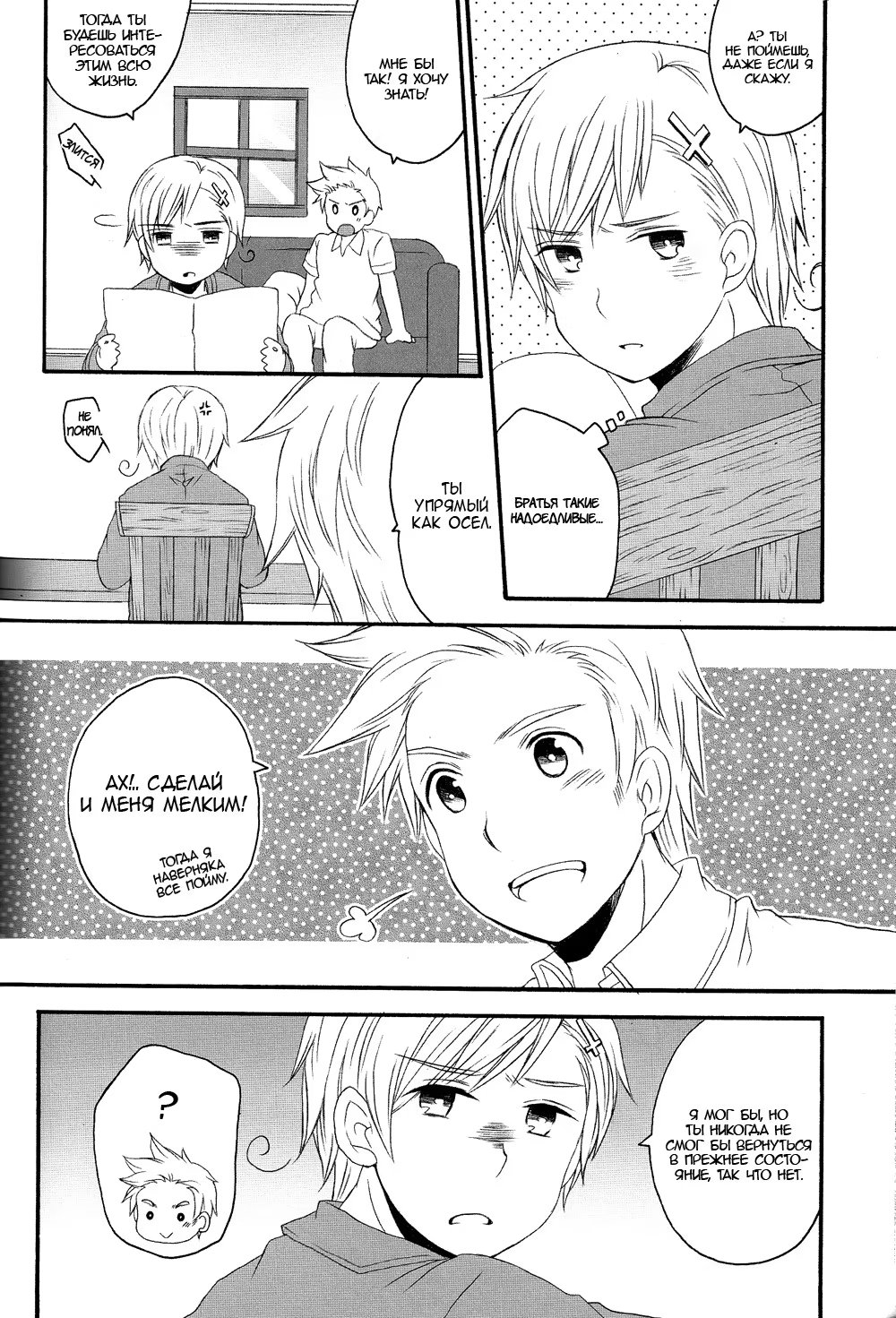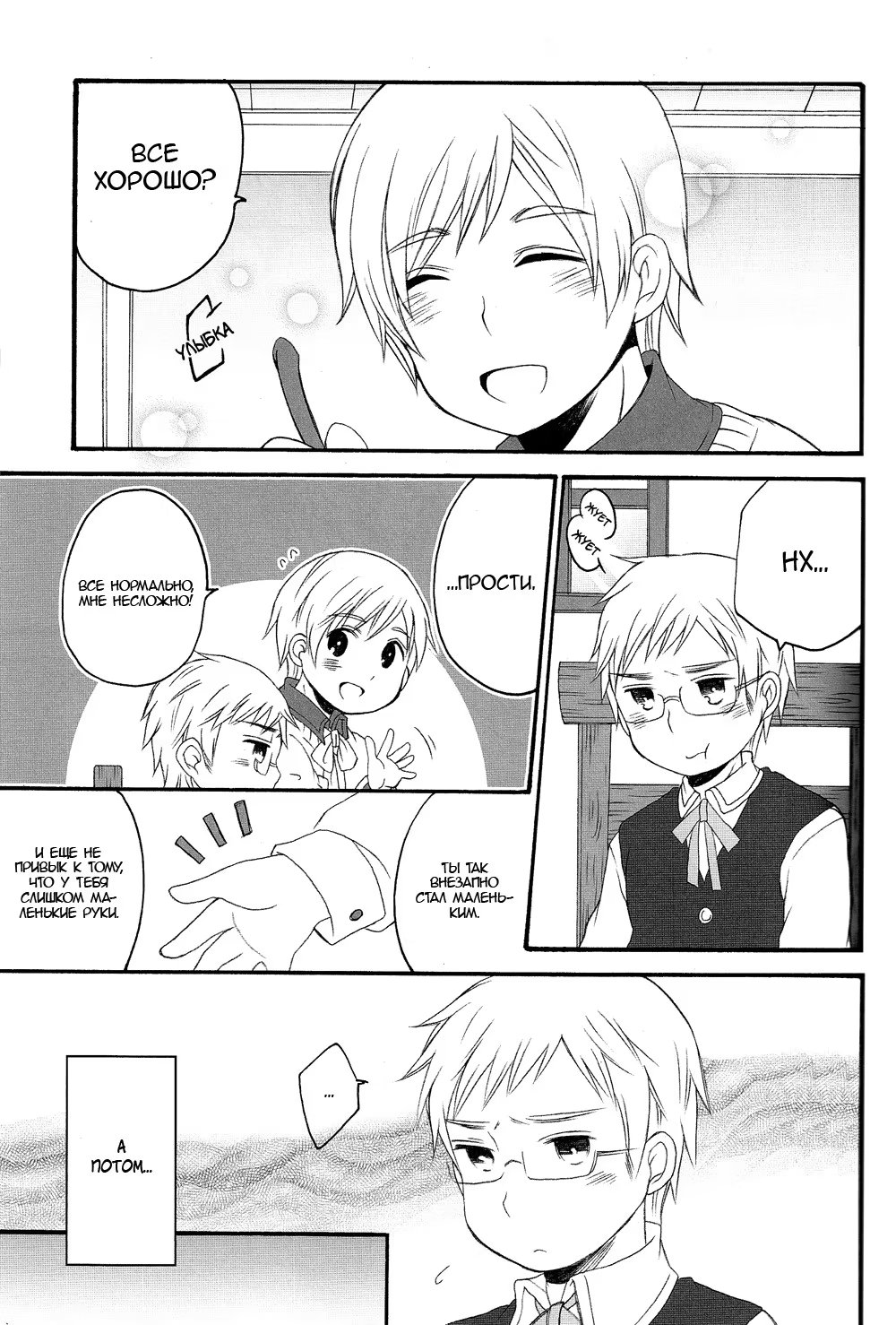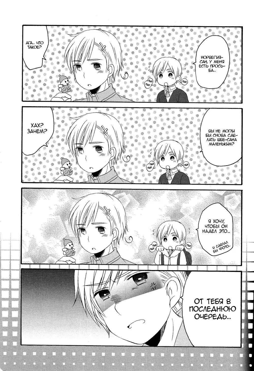 Hetalia dj - Fairy Mischief (Hetalia dj - Злая фея) 1 Глава 1 2015-08-19 Показать все Читаем: Том: 1. Глава 1 ⬇ Пред глава ⬆ След глава Hetalia dj - Fairy Mischief (Hetalia dj - Злая фея) 40 0 19 Авг 2015 в 0:00 00 0 Поделиться Переводчики: швеция одобряет Категории: сёнэн айдодзинси Теги: манга Пэйринг: Швеция/Финляндия (Малыш!Швеция/Финляндия). Комментарии 0 Добавить Отправить Комментариев еще нет. Вы можете стать первым Похожее Zamius Black Monkey Pro Patreon 2015 December Fairy Tail フェアリーテイル Bickslow ビックスロー x Freed Justine フリード・ジャスティーン x Laxus Dreyar ラクサス・ドレアー 03 3 года назад 00 0 1 Yuri!!! on Ice dj - Rinya's Summer Vacation (Летние каникулы Рини) 7 лет назад 00 0 1 Yuri!!! on Ice dj - Smile (Улыбочку!) 7 лет назад 00 0 1 Yuri!!! on Ice dj - Love x Ree x Baby (Юри!!! на льду - Любовь × Ри × Малыш) 7 лет назад 00 0 1 Yuri!!! on Ice dj - I'm home! (Я дома!) 7 лет назад 00 0 1 Yuri!!! on Ice dj - Hasetsu Picture Diary (Юри!!! На льду dj - Дневник с иллюстрациями Хасецу) 8 лет назад 00 0 1 Yuri!!! on Ice dj - Heat (Жар) 6 лет назад 00 0 1 Yuri!!! on Ice dj - A precious ordinary day (Драгоценный обычный день) 7 лет назад 00 0 1 Yuri!!! on Ice dj - Bedtime stories (Сказки на ночь) 7 лет назад 00 0 1 Yuki no Yousei (Снежная фея) 3 года назад 00 0 2 Yaoi Fairy Tales (Яойные сказки) 10 лет назад 00 0 7 Wildfire (Пожар) 8 лет назад 00 0 1 What Should I Do if the School Bully is Interested in Me (Что делать, если школьный хулиган интересуется мной?) 2 года назад 00 0 127 Tokyo ghoul dj - Tokyo fairy tale (Токийские сказки) 6 лет назад 00 0 3 This is my baby (Это мой малыш) 6 лет назад 00 0 1 Taoist marry fox (Лис и Священник) 6 лет назад 00 0 30 Tasogare Out Focus (Скрытое за кадром) 5 лет назад 00 0 10 Spring has come (Весна пришла) 5 лет назад 00 0 6 Sparkling Baby (Искромётный малыш) 5 месяцев назад 00 0 27 Signal Red Baby (Красный свет, малыш) 13 лет назад 00 0 8 Shingeki no Kyojin dj – giant BABY (Гигантский малыш) 9 лет назад 00 0 1 Shingeki no Kyojin dj - Little Little (Shingeki no Kyojin dj - Милый малыш) 10 лет назад 00 0 1 Sexy (my neighbor is a hell of a fairy!) (Сексуален (Мой сосед - адский Фей!)) 6 лет назад 00 0 9 Playing blind (Игра вслепую) 13 лет назад 00 0 1 ossaghan beibi (Жуткий малыш) 29 дней назад 00 0 37 On the Quiet (В тишине) 13 лет назад 00 0 6 Oikko-kun datte Musubaretai (Малыш-кун хочет быть наказанным) 1 год назад 00 0 1 Oh! My Sweet Baby!!! (Ох! Мой сладкий малыш!!!) 14 лет назад 00 0 1 Not That Cat (Кот, да не тот) 1 год назад 00 0 8 My Personal Angel (Мой Ангел) 9 лет назад 00 0 5 My Little Vampire (Мой маленький вампир) 7 лет назад 00 0 5 My Little Vampire (Мой маленький вампир) 4 года назад 00 0 6 My Little Vampire: Little Joel (Мой маленький вампир: Малыш Джоэл) 5 лет назад 00 0 1 Lover Boy (Любовник) 5 лет назад 00 0 90 Lost Boys (Потерявшиеся мальчишки) 14 лет назад 00 0 7 Kuroko no Basuke dj - Theyre Cute But Theyre Complete Idiots (Два дебила - это мило!) 11 лет назад 00 0 1 Kuroko no Basuke dj - Give me love baby!! (Подари мне любовь, малыш!!) 10 лет назад 00 0 1 Kick me boy (Ударь меня, малыш!) 8 лет назад 00 0 1 Kang Gun loves Soo Oh! (Кан Гон любит Су О!) 1 год назад 00 0 50 Kaizoku Game (Пиратская Игра) 10 лет назад 00 0 4 JoJo’s Bizarre Adventure dj - It’s time for your punishment, baby (Время для наказания, малыш) 5 лет назад 00 0 1 Itoshi no Momonga Kareshi (Мой возлюбленный – белка-летяга?!) 2 года назад 00 0 7 I love BOY (Я люблю Боя) 8 лет назад 00 0 1 Home Tutor Hitman Reborn! dj - Chimachimatto Kyouya-tan (Репетитор Риборн! dj -Малыш Кёя) 14 лет назад 00 0 1 Hetalia dj – Sennen oukoku (Тысячелетнее Королевство) 9 лет назад 00 0 3 Hetalia dj – The Dog’s Mood (Hetalia dj – Собачьи прихоти) 9 лет назад 00 0 1 Hetalia dj - Walzer (Вальс) 10 лет назад 00 0 1 Hetalia dj - Winter Night (Hetalia dj - Зимняя ночь) 9 лет назад 00 0 1 Hetalia dj - This Fire (Hetalia dj - Огонь) 8 лет назад 00 0 1 Hetalia dj - Sweet Sweets (Hetalia dj - Сладкие конфеты) 10 лет назад 00 0 1