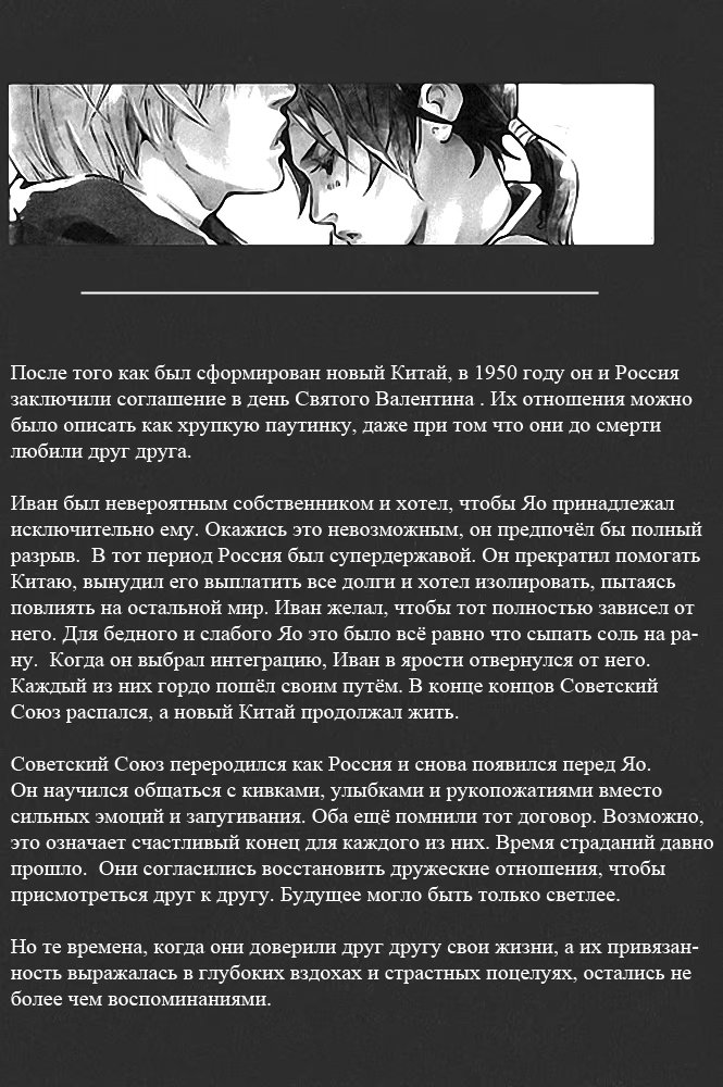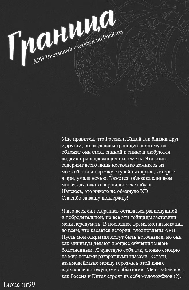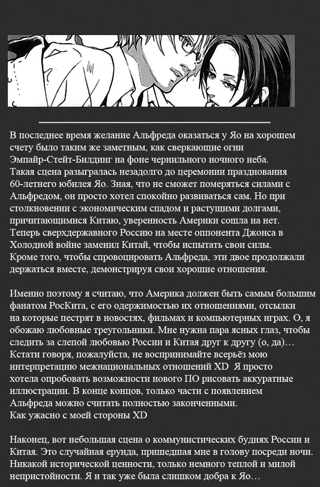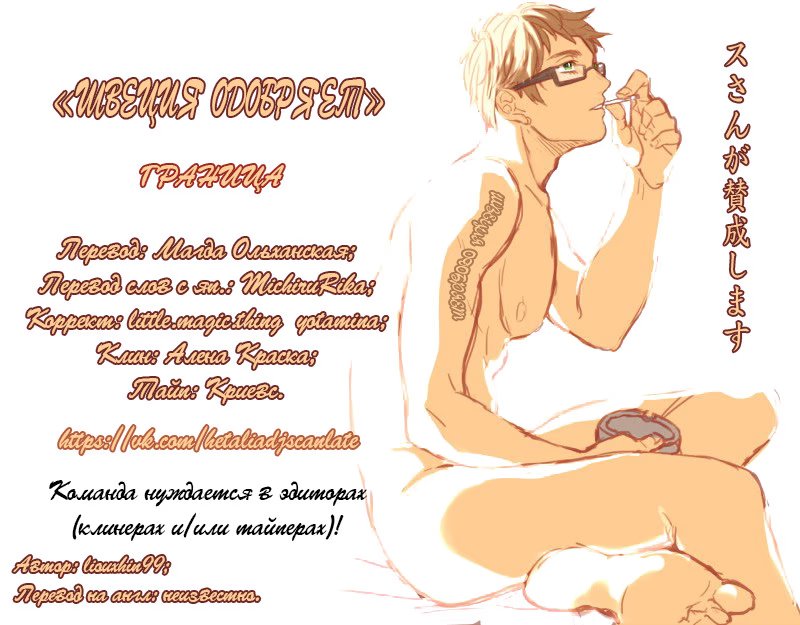 Hetalia dj - Border (Граница) 1 Глава 1 2016-08-31 Показать все Читаем: Том: 1. Глава 1 ⬇ Пред глава ⬆ След глава Hetalia dj - Border (Граница) 31 0 31 Авг 2016 в 0:00 00 0 Поделиться Переводчики: швеция одобряет Категории: яойдрамакомедиядодзинси Теги: манга Пэйринг: Россия/Китай, немного Америка/Китай. Комментарии 0 Добавить Отправить Комментариев еще нет. Вы можете стать первым Похожее The Time Between Dog and Wolf. (Время между собакой и волком) 2 года назад 00 0 79 The Border of Delusion (Граница Заблуждения) 3 месяца назад 00 0 30 Snow Line (Снеговая граница) 14 лет назад 00 0 4 Shisen no Toriko (В плену взглядов) 2 года назад 00 0 8 Naruto dj - Undercoat (Подтекст) 1 год назад 00 0 1 Mihog-ui gyeong-gye (Граница заблуждения) 22 дня назад 00 0 30 Koi ga Bokura wo Yurusu Hani (Границы нашей любви) 13 лет назад 00 0 16 Kanraku arufa eniguma: Dai 4 no bāsu (Альфа во власти похоти: пленённый Энигмой) 4 года назад 00 0 10 Hetalia dj – Somewhere on earth (Где-то на белом свете) 8 лет назад 00 0 1 Hetalia dj – The Dog’s Mood (Hetalia dj – Собачьи прихоти) 9 лет назад 00 0 1 Hetalia dj – The Silent Spring (Молчаливая весна) 10 лет назад 00 0 1 Hetalia dj - Your Love Is Hard to Understand! (Сложная любовь) 12 лет назад 00 0 1 Hetalia dj - Yuminabe (Вкуснейшее набэ) 9 лет назад 00 0 1 Hetalia dj - [USxUK] Fuck That! 10 лет назад 00 0 3 Hetalia dj -The Snake (Змея) 12 лет назад 00 0 5 Hetalia dj – 1950 9 лет назад 00 0 1 Hetalia dj – After Honey Talk 10 лет назад 00 0 1 Hetalia dj – Don't you want me? (Разве ты меня не хочешь?) 8 лет назад 00 0 1 Hetalia dj – Good Morning, My Strawberry 10 лет назад 00 0 1 Hetalia dj – Koi no Value Set (Разные значения любви) 9 лет назад 00 0 1 Hetalia dj - Usarisuto! (Зайка-побегайка) 10 лет назад 00 0 1 Hetalia dj - Velvet Goldmine (Бархатная золотая жила) 9 лет назад 00 0 2 Hetalia dj - Walzer (Вальс) 10 лет назад 00 0 1 Hetalia dj - Wan Li Tiao Yi 10 лет назад 00 0 1 Hetalia dj - Want me baby. (Желай меня, детка.) 10 лет назад 00 0 1 Hetalia dj - Welcoming Morning 10 лет назад 00 0 4 Hetalia dj - When I see your tears (Когда я увижу твои слезы) 10 лет назад 00 0 1 Hetalia dj - Winter Night (Hetalia dj - Зимняя ночь) 9 лет назад 00 0 1 Hetalia dj - World's fair 10 лет назад 00 0 1 Hetalia dj - The Maple is in Love 10 лет назад 00 0 1 Hetalia dj - The Most Painful Thing (Самое болезненное) 10 лет назад 00 0 1 Hetalia dj - The Sun Rises in the White Night (Солнце восходит в белой ночи.) 11 лет назад 00 0 1 Hetalia dj - There Will Be Love There 10 лет назад 00 0 1 Hetalia dj - This Fire (Hetalia dj - Огонь) 8 лет назад 00 0 1 Hetalia dj - Toaru Nichijyou Kazoku (Самая обычная семья) 10 лет назад 00 0 1 Hetalia dj - Trigger Happy End-All 10 лет назад 00 0 1 Hetalia dj - Triple P (Тройной игрок) 9 лет назад 00 0 1 Hetalia dj - U Make Me Wanna (Ты заставляешь меня желать) 12 лет назад 00 0 1 Hetalia dj - Sweet Sweets (Hetalia dj - Сладкие конфеты) 10 лет назад 00 0 1 Hetalia dj - That's it for Today 10 лет назад 00 0 1 Hetalia dj - Requiem (Реквием) 10 лет назад 00 0 2 Hetalia dj - Russia and Lithuania Book 10 лет назад 00 0 1 Hetalia dj - Shahrazad (Шахерезада) 11 лет назад 00 0 1 Hetalia dj - Similar, Dissimilar (Сходства и отличия) 12 лет назад 00 0 1 Hetalia dj - Slow waltz (Hetalia dj - Медленный вальс) 10 лет назад 00 0 1 Hetalia dj - So Long, My Dear Angel (Так долго, Дрогой Мой Ангел) 9 лет назад 00 0 3 Hetalia dj - Sol y Sombra (Солнце и тень) 9 лет назад 00 0 1 Hetalia dj - Paradise Lost 10 лет назад 00 0 1 Hetalia dj - Parallel Mix (Hetalia dj - Две параллели) 7 лет назад 00 0 1 Hetalia dj - Persona non grata (Персона нон грата) 13 лет назад 00 0 1