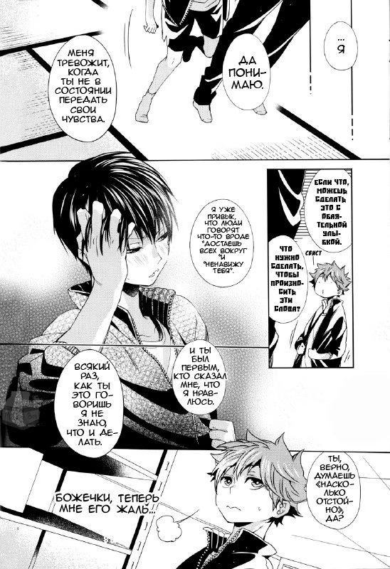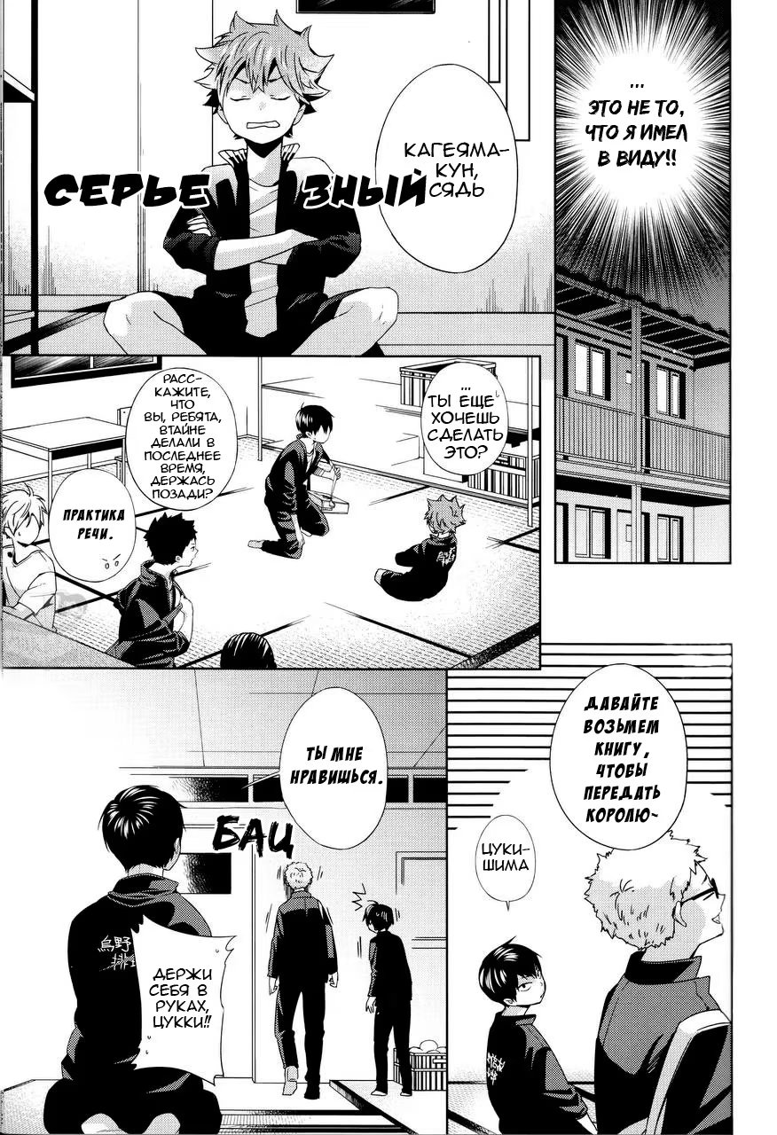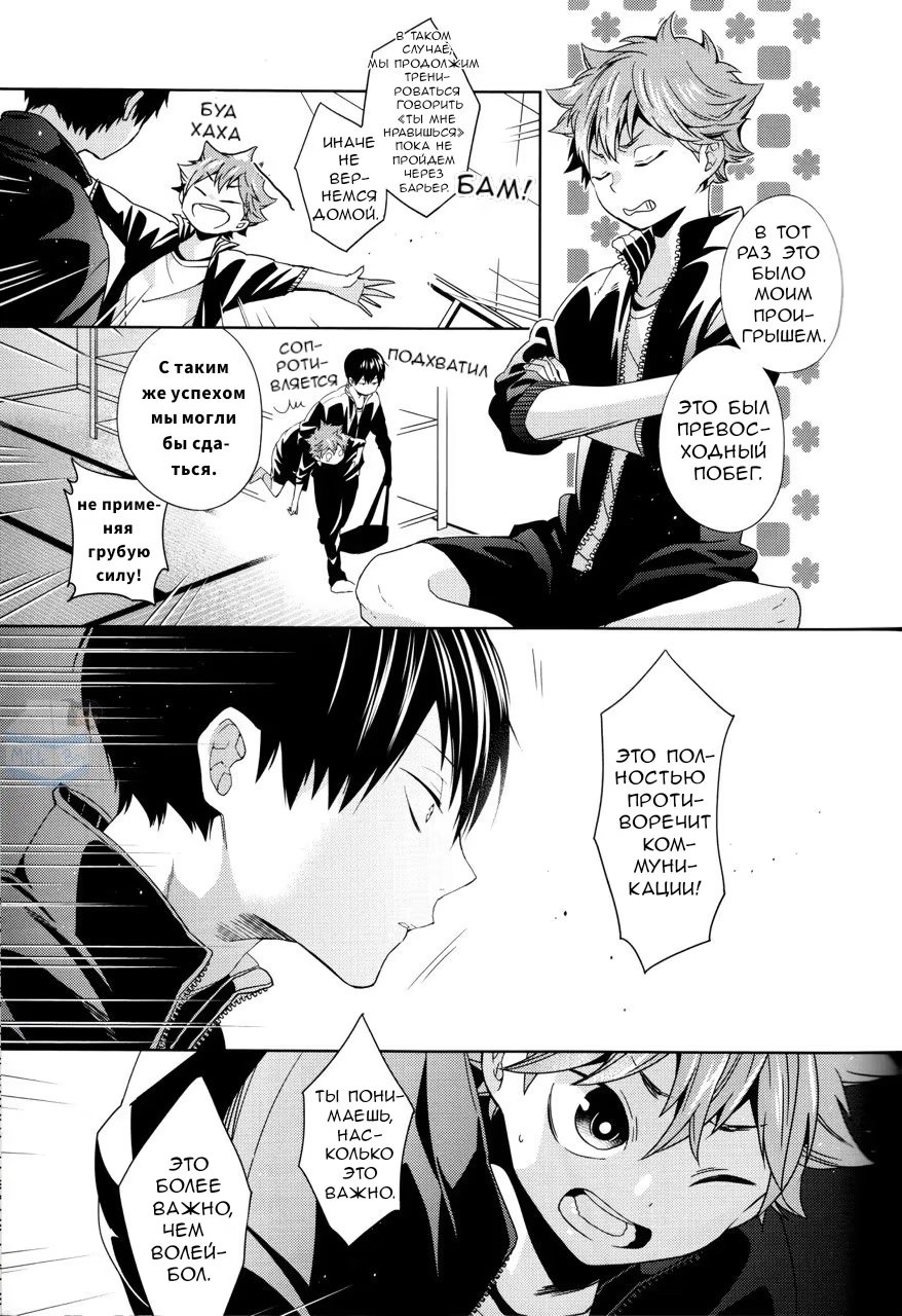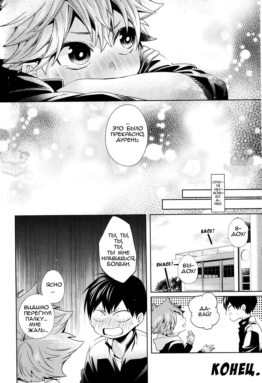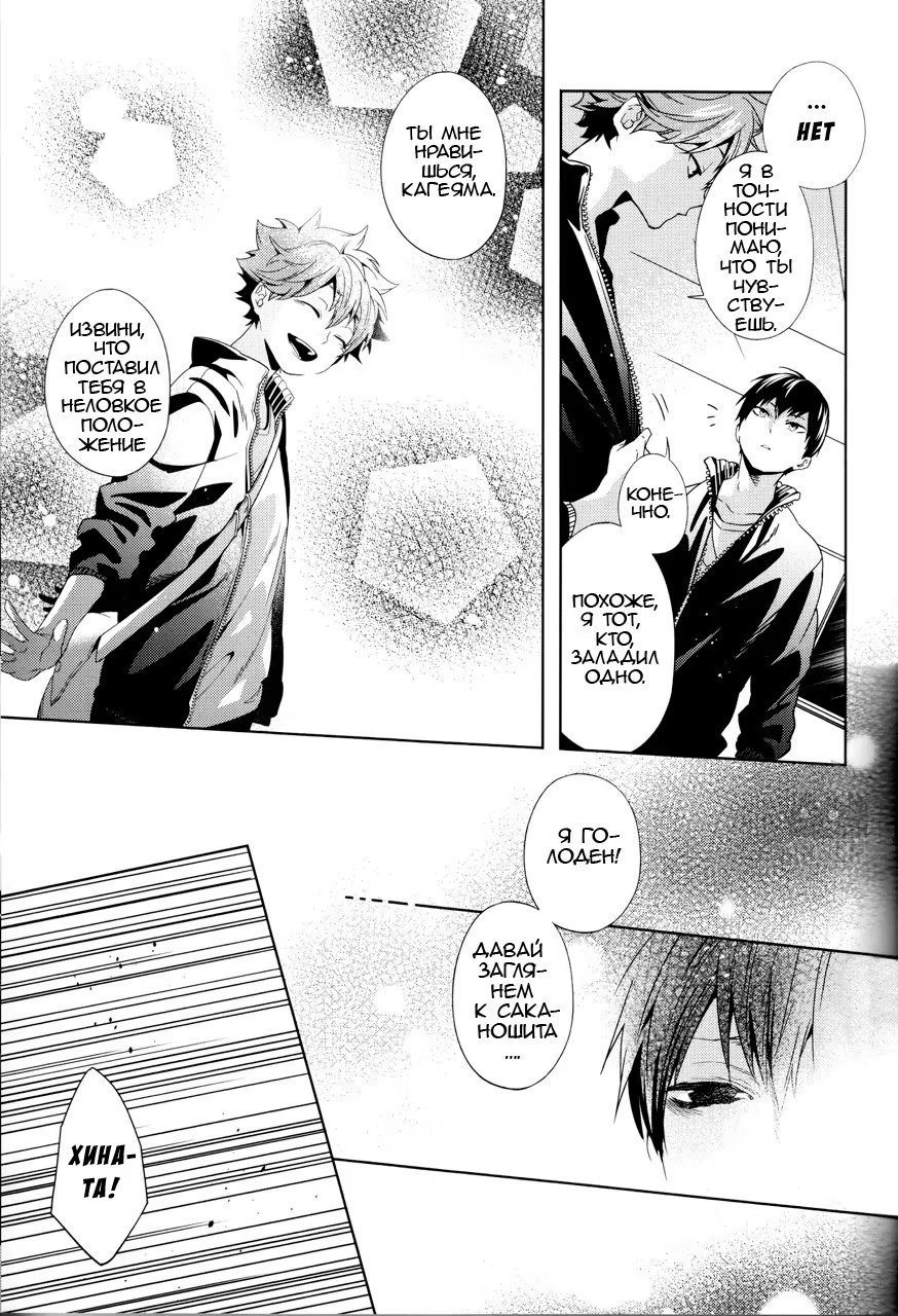 Хината понимает, что он никогда не слышал, чтобы Кагеяма говорил, что он ему нравится, хотя они уже начали встречаться! Какие дурацкие шаги он предпримет, чтобы исправить эту оплошность?