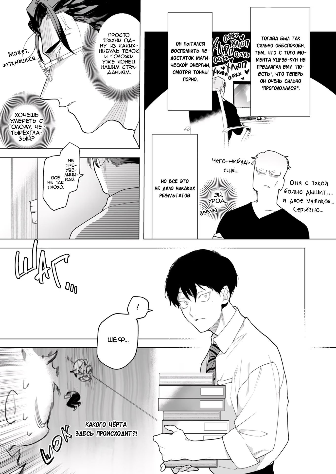 otaku worldУцузе-кун талантливый сотрудник крупной строительной компании. Он безумно восхищается своим, еще более талантливым, начальником Тогавой, который не склонен нахваливать по пустякам своих подчиненных. Но после успешных переговоров, он обратил внимание на Уцузе-куна, как на достойного сотрудника, и даже вышел с ним вместе прогуляться. В этот момент в Тогаву вселяется инкуб и жаждет зарядиться энергией, но не простой, а особенной... Что же предпримут главные герои и как сложатся их отношения теперь?