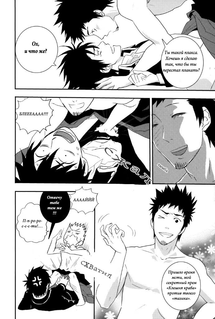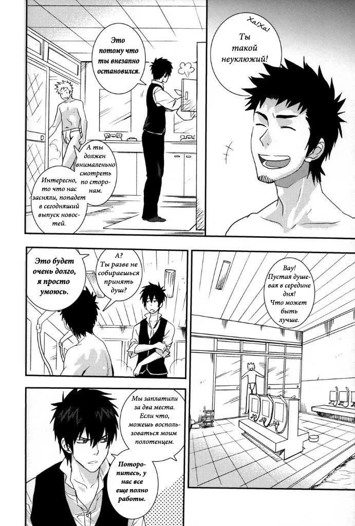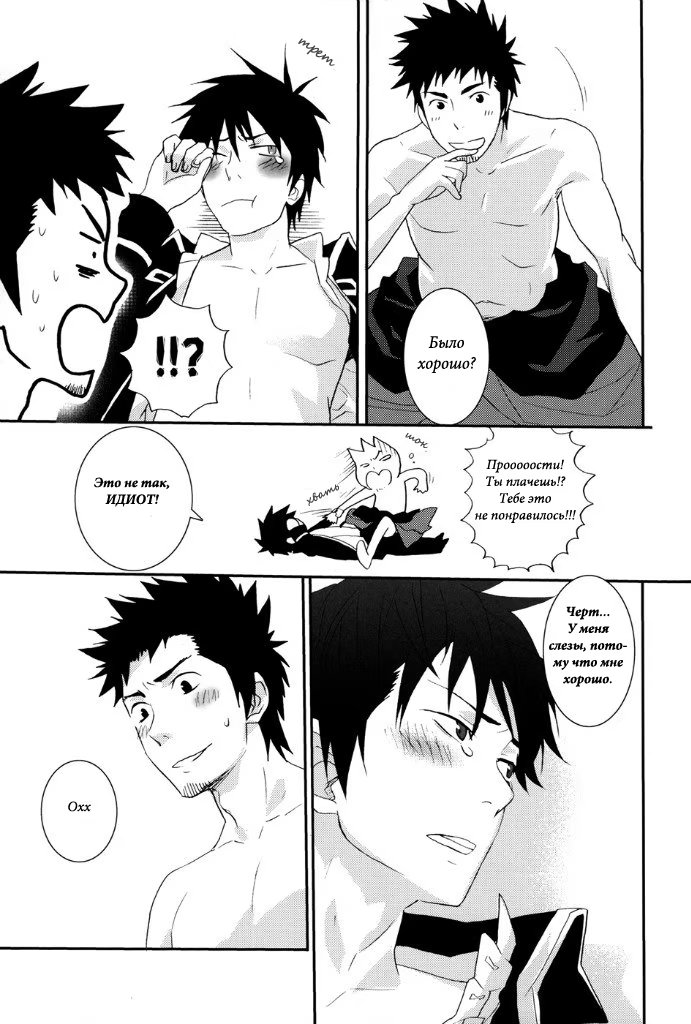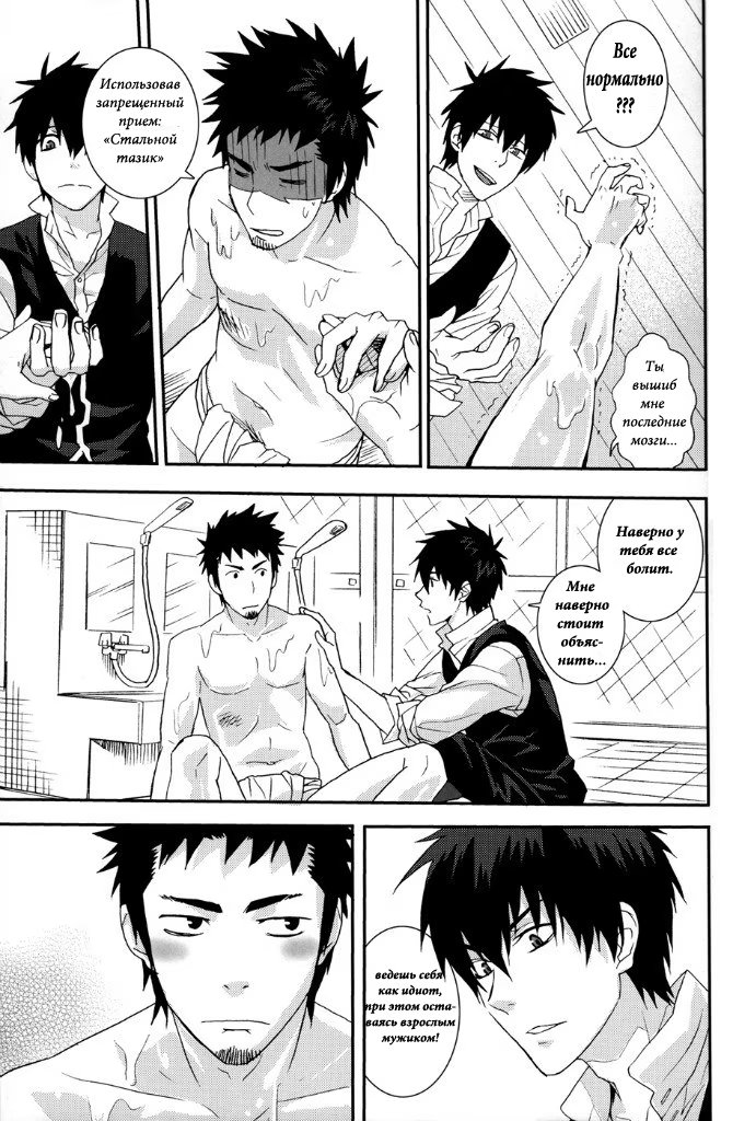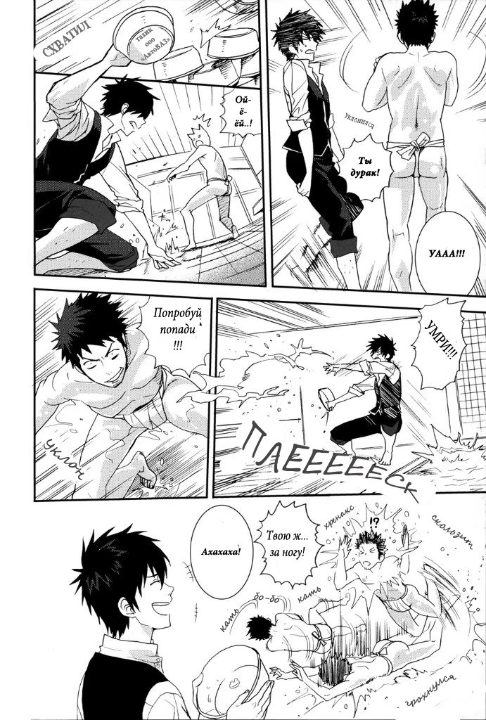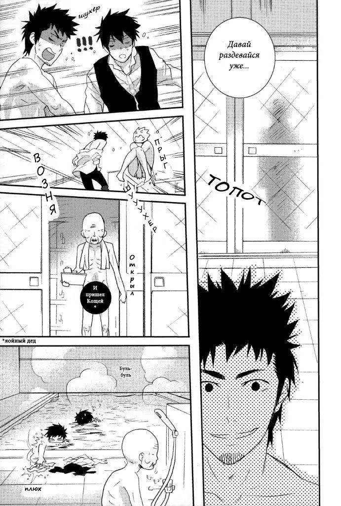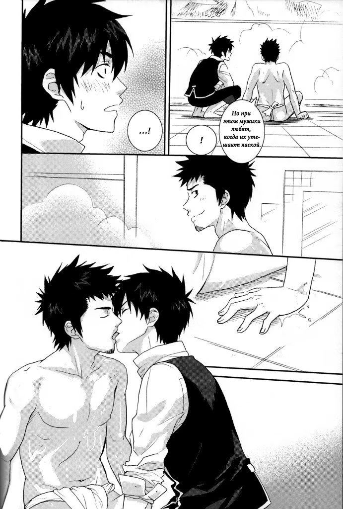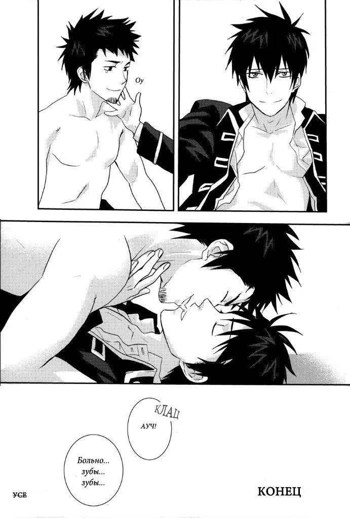 mozgovnetСёгун купился на то, что его любимец Руримару вследствии неких обстоятельств превратился в человека и отпустил "жука" с миром. После этого Хиджиката повёл Кондо-сана (а это, несомненно, был он XD) отмываться в баню, но по неосторожности сам испачкался в мёде. Ему тоже пришлось пойти мыться, но всё бы ничего, если бы Кондо вдруг не взбрело в голову окунуть замкома насильно))) :DDD