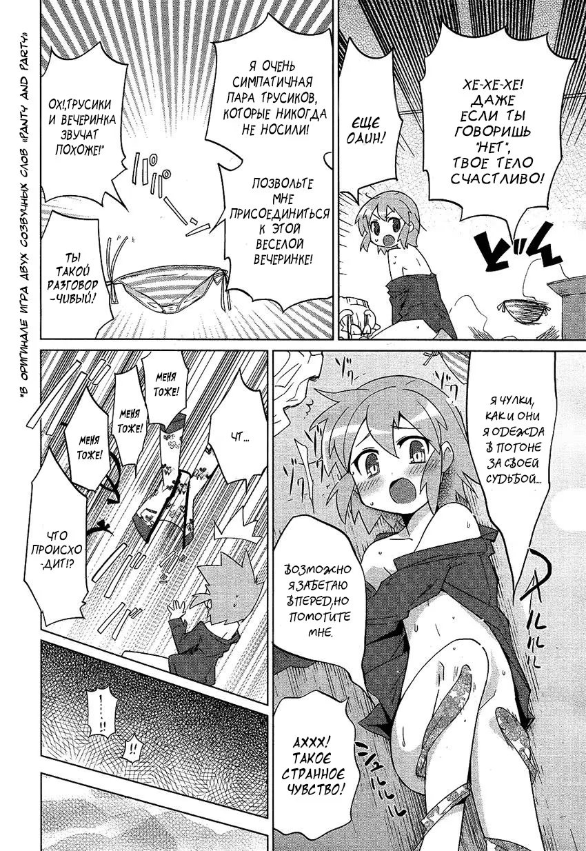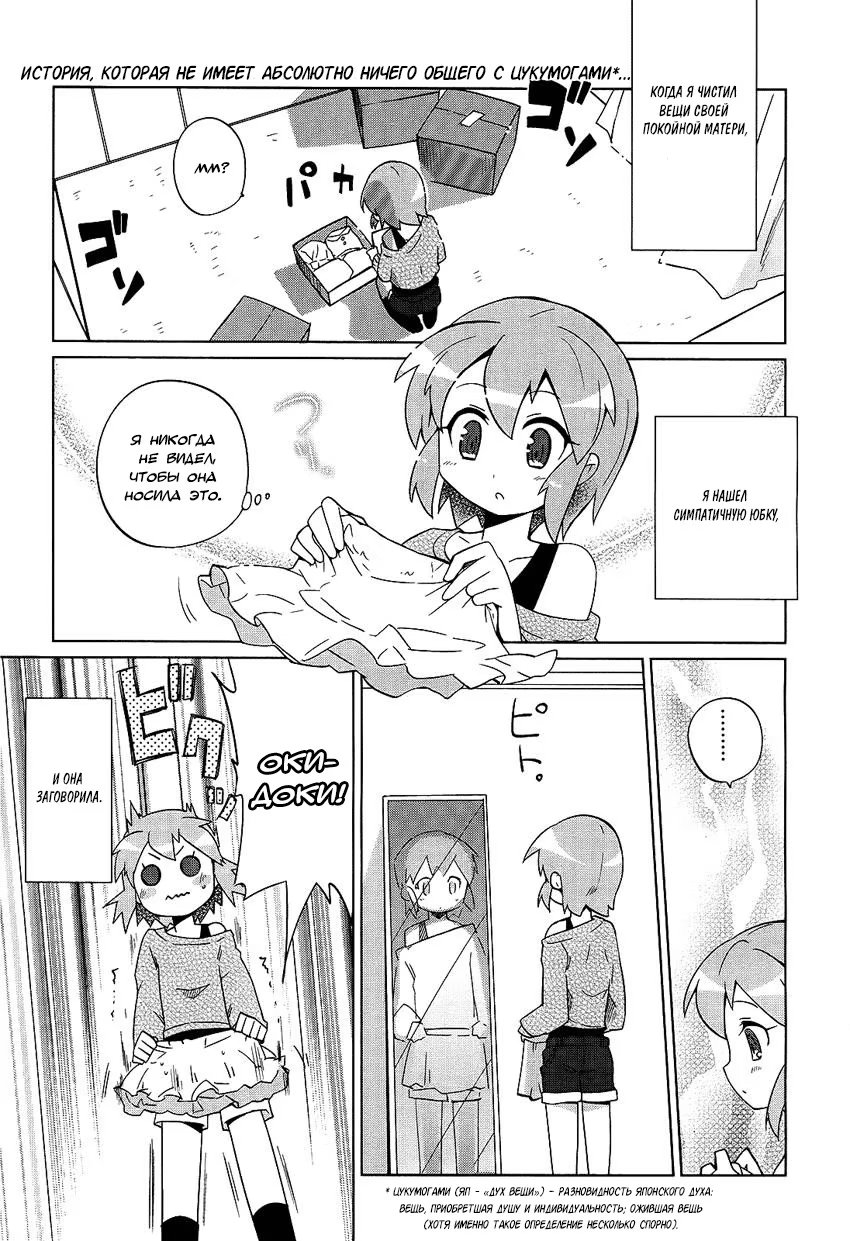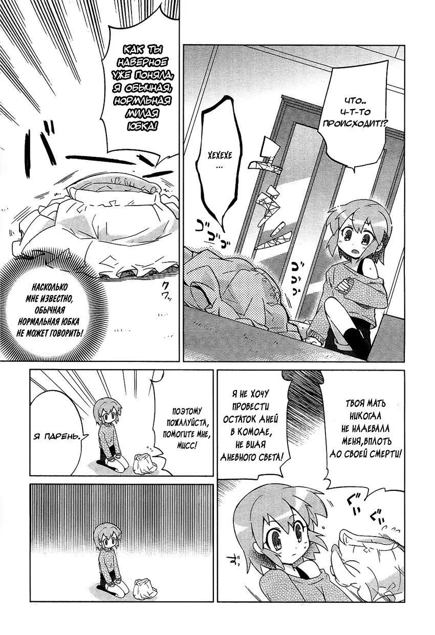 хару таканоКогда ученик начальных классов Ватанабе убирал вещи покойной матери,он находит юбку,которая странным образом оживает,говорит и даже движется сама по себе.Юбка,которую мать никогда не носила,хочет,чтобы он надел ее,за ней вскоре последовали другие предметы одежды,которые также могут говорить.