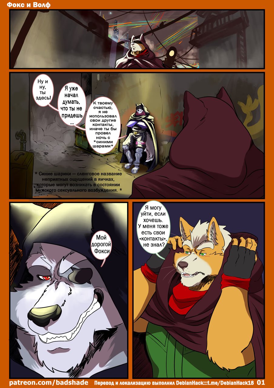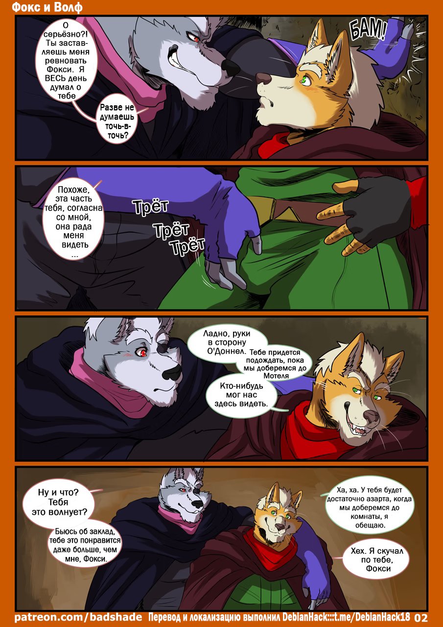 debianhackКомикс повествует о нас знакомых соперниках из франшизы Star Fox – Фоксе МакКлауде и Вольфе О’Доннеле. В основном про то, какие у них на самом деле отношения, когда они не бьют друг другу морды, хиххи)) Читаем))