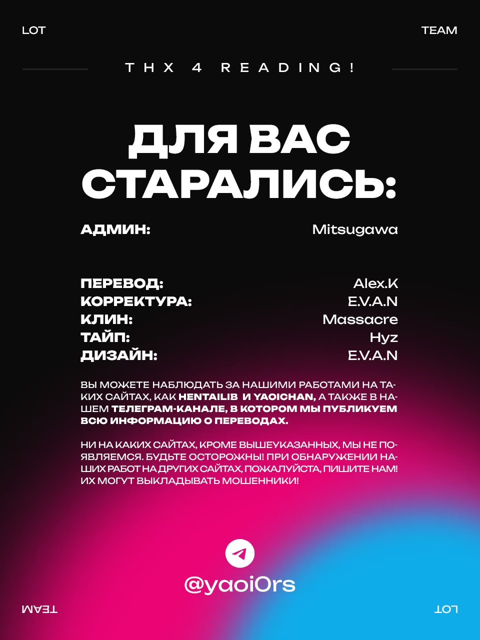 Dairy Farmers Wei And Tao (Молочные фермеры Вей и Тао) 1 Глава 1 2024-12-05 Показать все Читаем: Том: 1. Глава 1 ⬇ Пред глава ⬆ След глава Dairy Farmers Wei And Tao (Молочные фермеры Вей и Тао) 12 0 5 Дек 2024 в 0:00 00 0 Поделиться Переводчики: lui ou toi lot Категории: вцветеяой18плюсгрупповойсексзверолюди Теги: манга Альтернативный перевод: Dairy Farmers Wei And Tao (Молочные фермеры Вэй и Тао) Комментарии 0 Добавить Отправить Комментариев еще нет. Вы можете стать первым Похожее Yuri!!! on Ice dj – My Inexperienced Coach (Мой неопытный тренер) 8 лет назад 00 0 1 Yuri!!! on Ice dj - The Unknown Prince (Неизвестный принц) 8 лет назад 00 0 1 Yuri!!! on Ice dj - Tsumuji ni Matsuwaru, et cetera? (Как можно не касаться твоих волос?) 8 лет назад 00 0 1 Yuri!!! on Ice dj - Tsumuji ni Matsuwaru, Eto Se Tora? (Завитки волос и всякая всячина) 8 лет назад 00 0 1 Yuri!!! on Ice dj - How long are you gonna tease me (Сколько еще будешь меня дразнить?) 7 лет назад 00 0 1 Yuri!!! on Ice dj - Boku no Furachina Coach (Мой тренер - плохой мальчик) 7 лет назад 00 0 1 Yume Yume Shinjuu (Единственное пожелание на всю жизнь.) 9 лет назад 00 0 7 Your dream (Ты мне снишься) 2 года назад 00 0 4 You Are in the Blue Summer (В разгар лета) 6 лет назад 00 0 8 You Are in the Summer (Ты этим летом) 5 лет назад 00 0 16 Yajirushi (Стрелка) 6 лет назад 00 0 7 Will Die Tomorrow (А завтра мы умрём) 8 лет назад 00 0 8 Vampire and Hunter (Вампир и Охотник) 4 года назад 00 0 66 Vampire and Hunter (Вампир и Охотник) 7 лет назад 00 0 29 Unnoticed Love (Незамеченная любовь) 6 лет назад 00 0 8 Under the Greenlight : In Dreams (Под зелёным светом: во снах) 11 месяцев назад 00 0 42 Under The Sunlight With Bentou Boy (Под солнцем с Бенто-куном) 8 лет назад 00 0 2 Twisted triangle [18+] (Искаженный треугольник) 7 лет назад 00 0 8 Trip Lovers (Путешествие возлюбленных) 8 лет назад 00 0 1 Trip Lovers 6 лет назад 00 0 5 Triangle (Треугольник) 8 лет назад 00 0 1 TOARU OSU DANSHI - A CERTAIN MANLY GUY (Исключительно мускулинный.) 3 месяца назад 00 0 1 Thor dj - Thor's warprize (Трофей Тора) 6 лет назад 00 0 1 Therapy Game (Терапия) 5 лет назад 00 0 14 The Summer Won't Last (With Alts) (Лето не продлится долго (Доп)) 2 месяца назад 00 0 1 The Husky and His White Cat Shizun (Хаски и его Учитель Белый Кот) 3 месяца назад 00 0 73 The Grandmaster of Demonic Cultivation (Магистр дьявольского культа) 1 день назад 00 3 127 The God in the Field (Божество с полей) 8 лет назад 00 0 10 The Founder of Diabolism (Novel) (Магистр дьявольского культа (новелла)) 1 год назад 00 0 127 The Founder of Diabolism dj - Liao. Sao. Tao. Yao. Jiao. Ao. (Магистр дьявольского культа dj - Хвать. Толк. Ползь. Кусь. ААА! Ага.) 7 лет назад 00 0 1 The Founder of Diabolism dj - Xianglu (Магистр дьявольского культа dj - Курильница для благовоний) 7 лет назад 00 0 1 The Dictatorial Archangel (Деспотичный архангел) 13 лет назад 00 0 6 The Dictatorial Archangel doujinshi: Family Visit (Деспотичный архангел: Знакомство с родителями) 6 лет назад 00 0 1 The Dictatorial Archangel doujinshi: Harem Nights (Деспотичный архангел: Ночь в гареме) 6 лет назад 00 0 3 The Blue and White That Separate Us (Синие и белые цвета, что разделяют нас) 5 лет назад 00 0 6 The Blue and White That Separate Us (Синие и белые цвета, что разделяют нас) 7 лет назад 00 0 1 Temptation and Sentiment (Очаровательные чувства) 14 лет назад 00 0 10 Tao of My Soul (Дао моей души) 14 лет назад 00 0 1 Tao Yan Ni Xi Huan Ni (Люблю-ненавижу) 5 лет назад 00 0 81 Tails of Temptation (Хвосты искушения) 3 месяца назад 00 0 1 Symbiotic (Симбиот) 4 года назад 00 0 1 Sword and Mist (Меч и туман) 8 лет назад 00 0 13 Symbiotic (Симбиоз) 4 года назад 00 0 1 supyeong nagha (Сквозь горизонт) 2 года назад 00 0 25 Strelitzia (Стрелиция) 2 года назад 00 0 6 Stalker × Stalker (Сталкер × Сталкер) 17 дней назад 00 0 18 Soldier's Punishment (Наказание Солдата) 8 лет назад 00 0 4 Skinny Dip 8 лет назад 00 0 1 Skinny Dip 8 лет назад 00 0 1 Shisei Gokumon 8 лет назад 00 0 4