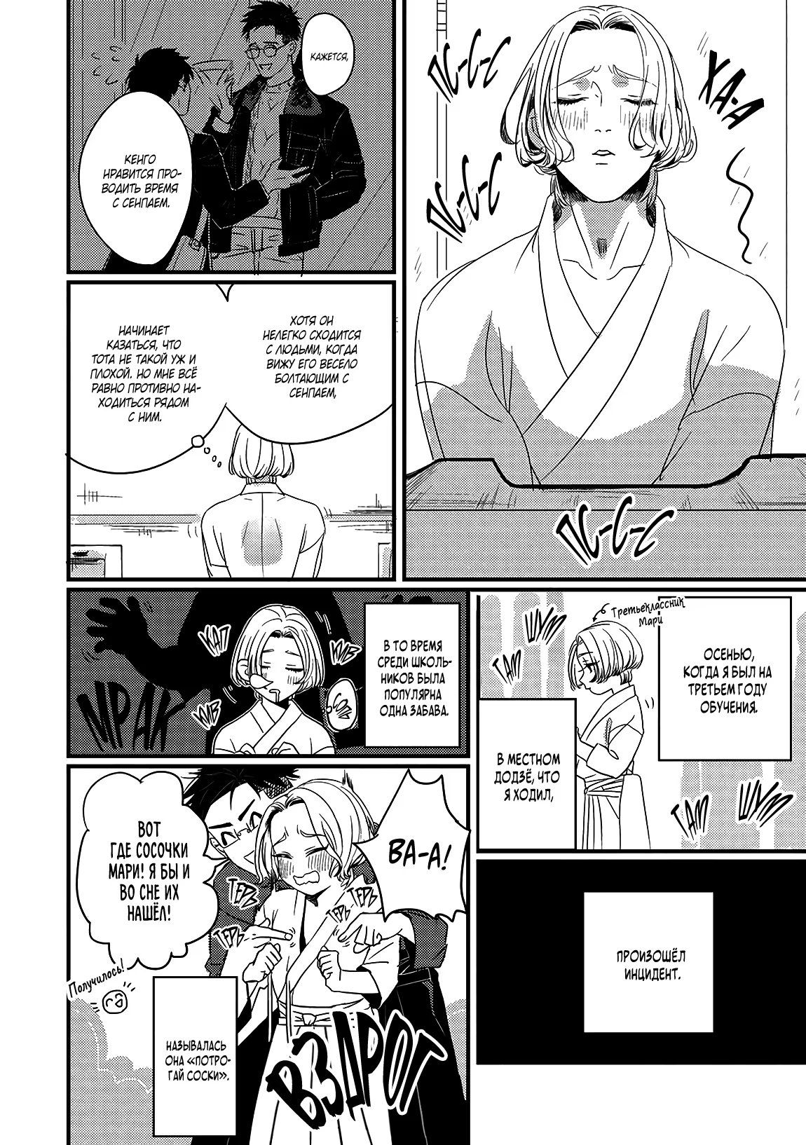 unholyУ его друга детства идеальный член. Будучи юношей с андрогенной внешностью, да еще и девчачьим именем, Мари развил в себе комплекс неполноценности и теперь одержим лицезрением венца мужской красоты: членами! Во время очередной ходки в поисках лучшего писюна он невзначай бросает взгляд в ванную комнату и обнаруживает, что его друг детства, Кенго, обладает прибором, достойного короля! Теперь у Мари одна единственная миссия: потрогать и попробовать на вкус!