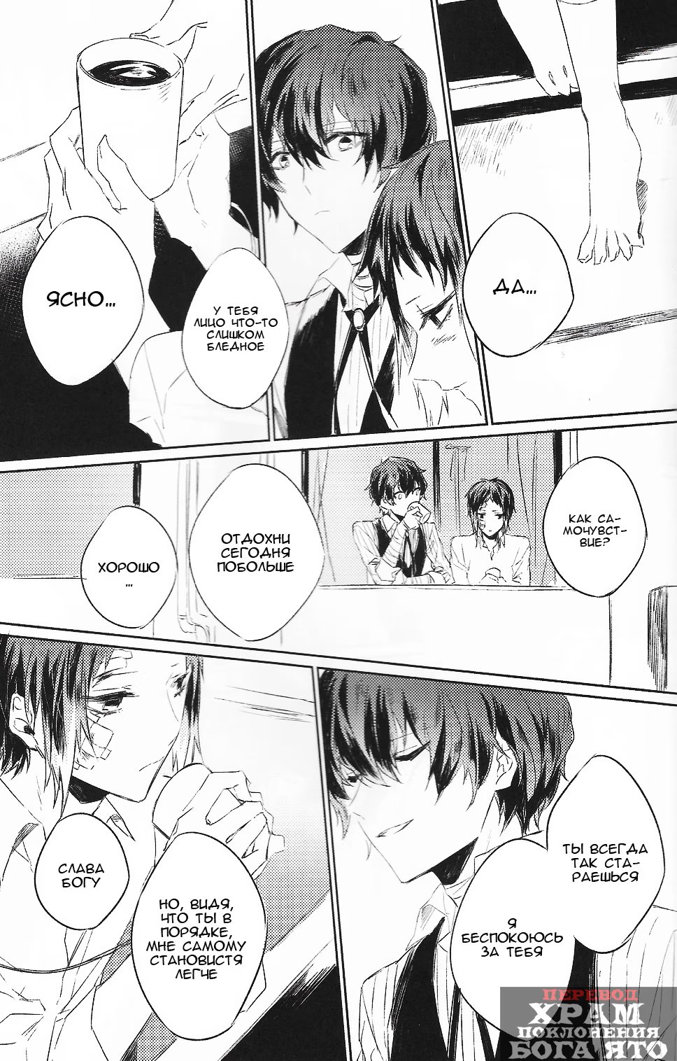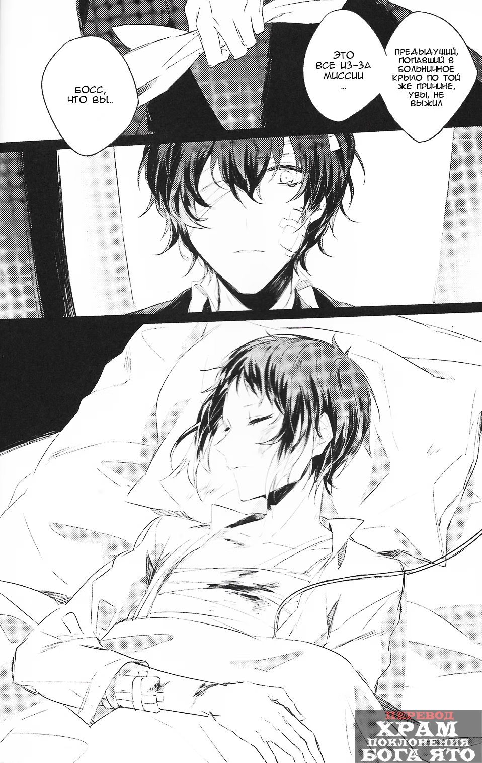 хрампоклонениябогаятоНайдя раненного Акутагаву, Дадзай тайно принес и оставил его в общежитии агентства. Как оказалось, мафиози совсем не против подобного со стороны бывшего учителя. Ведь он уже много лет скрывает одну тайну.