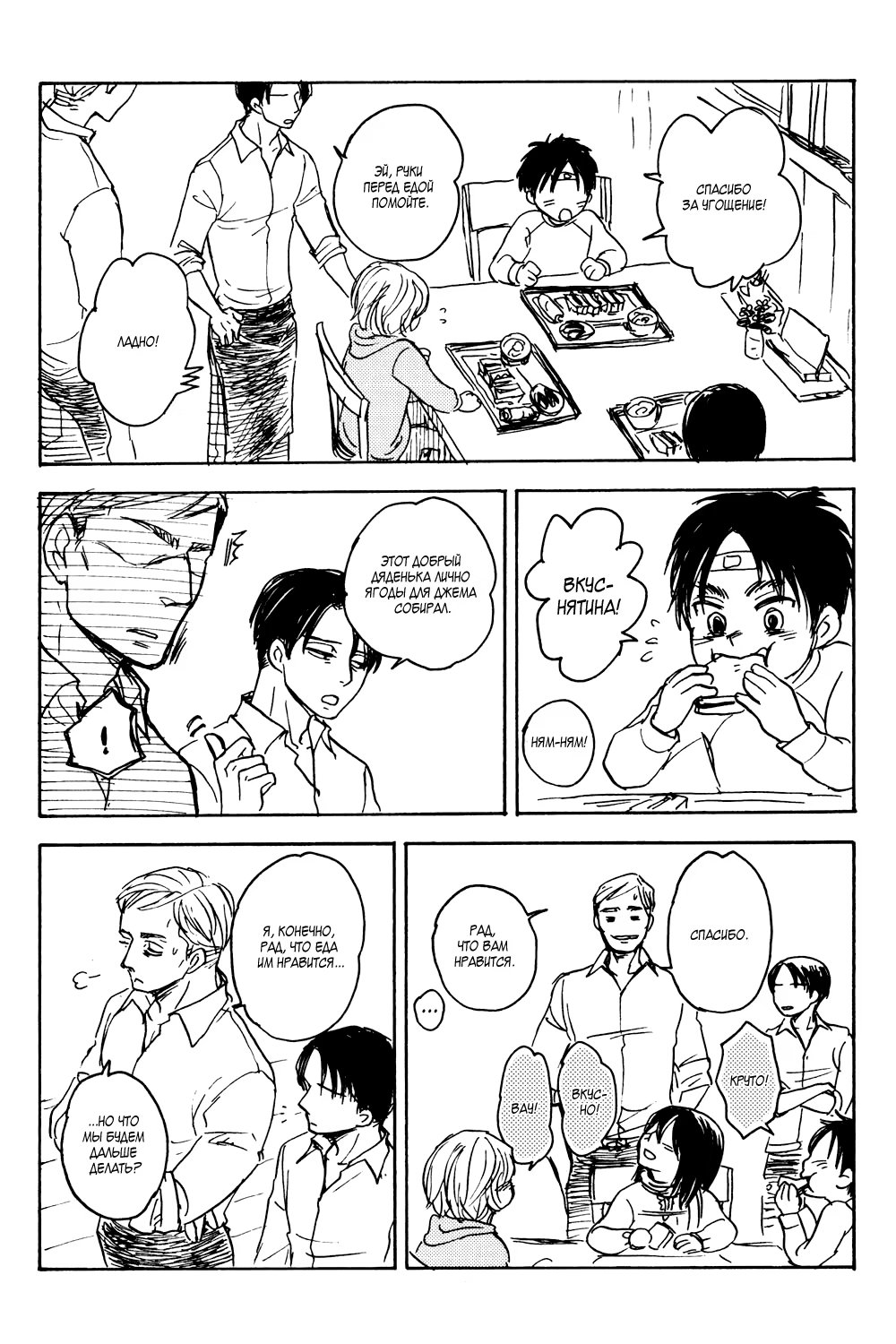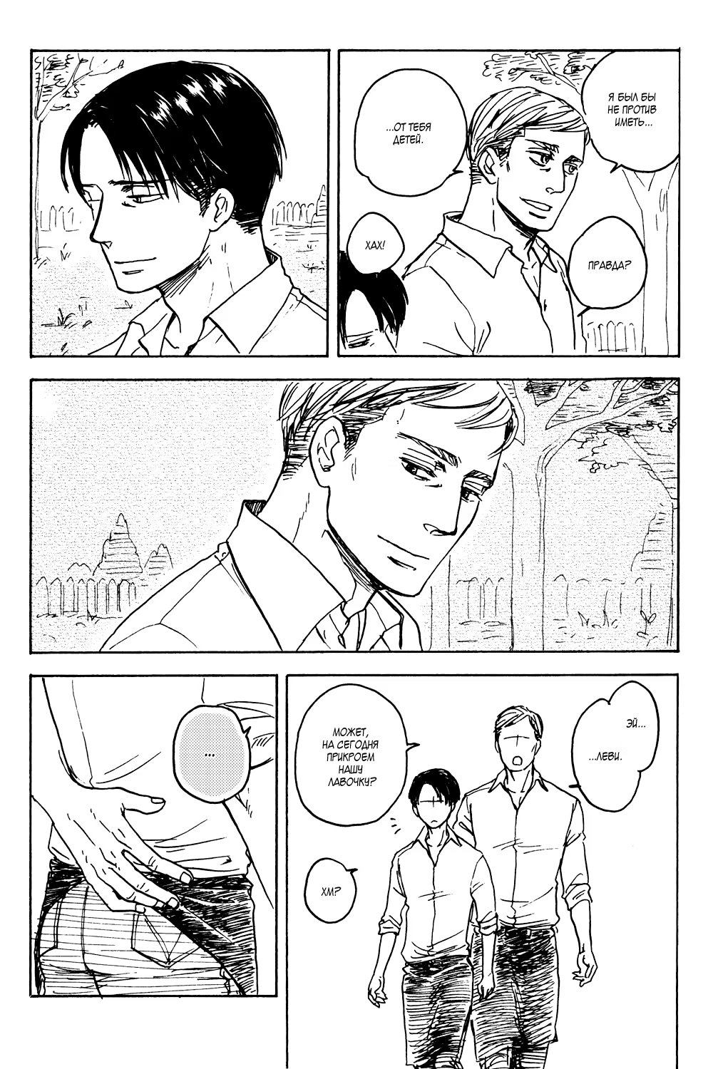 В этом мире нет Титанов. Здесь Эрвин и Леви живут тихой, мирной жизнью. Они вместе - что ещё для счастья нужно? Разве что открыть маленькое кафе, на радость друзьям и соседям.