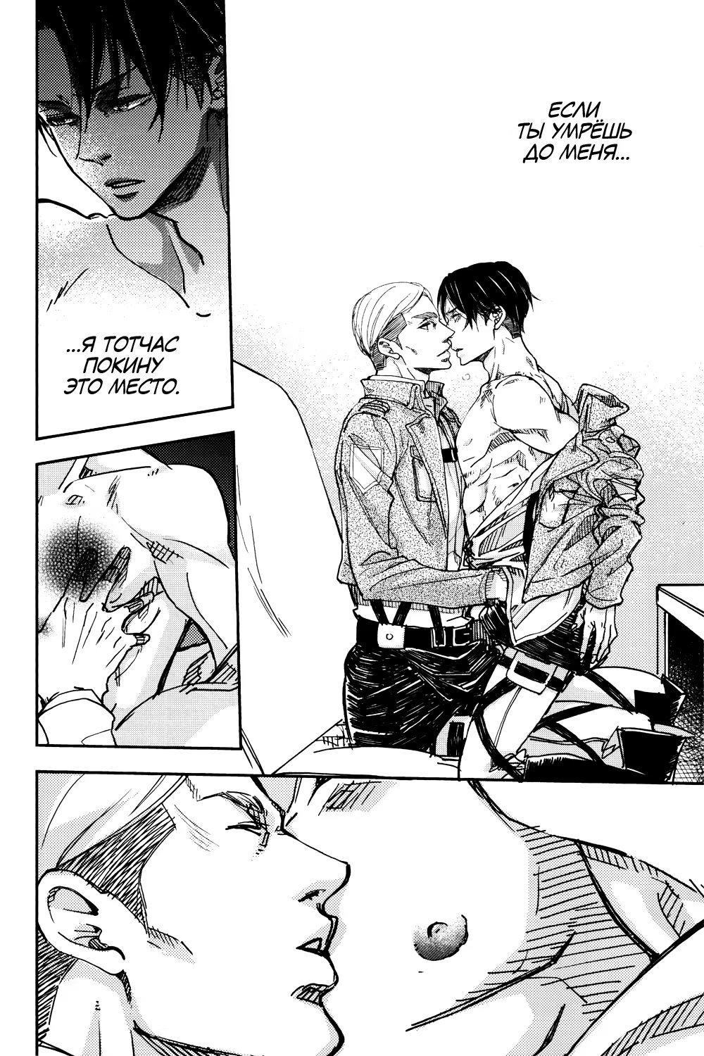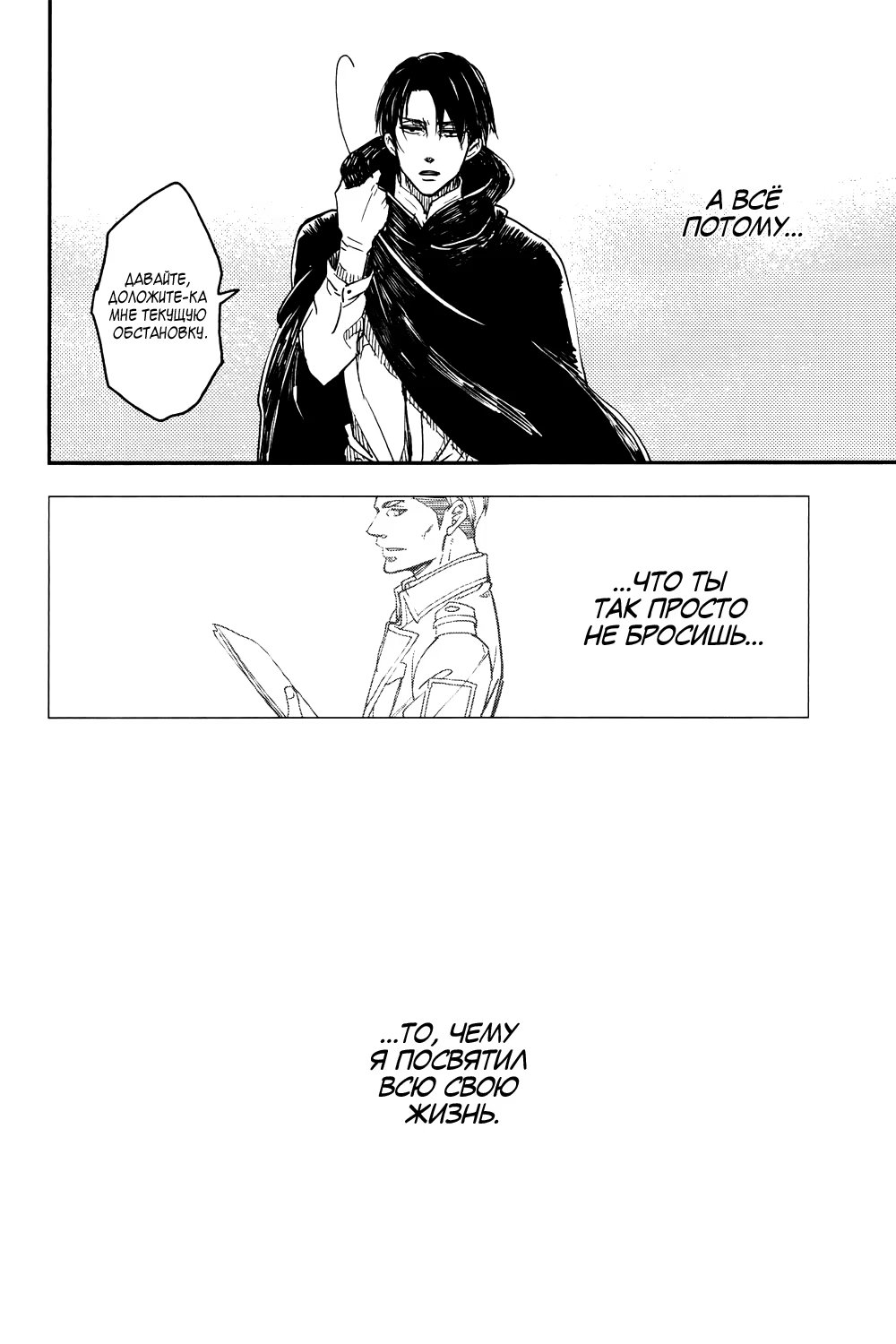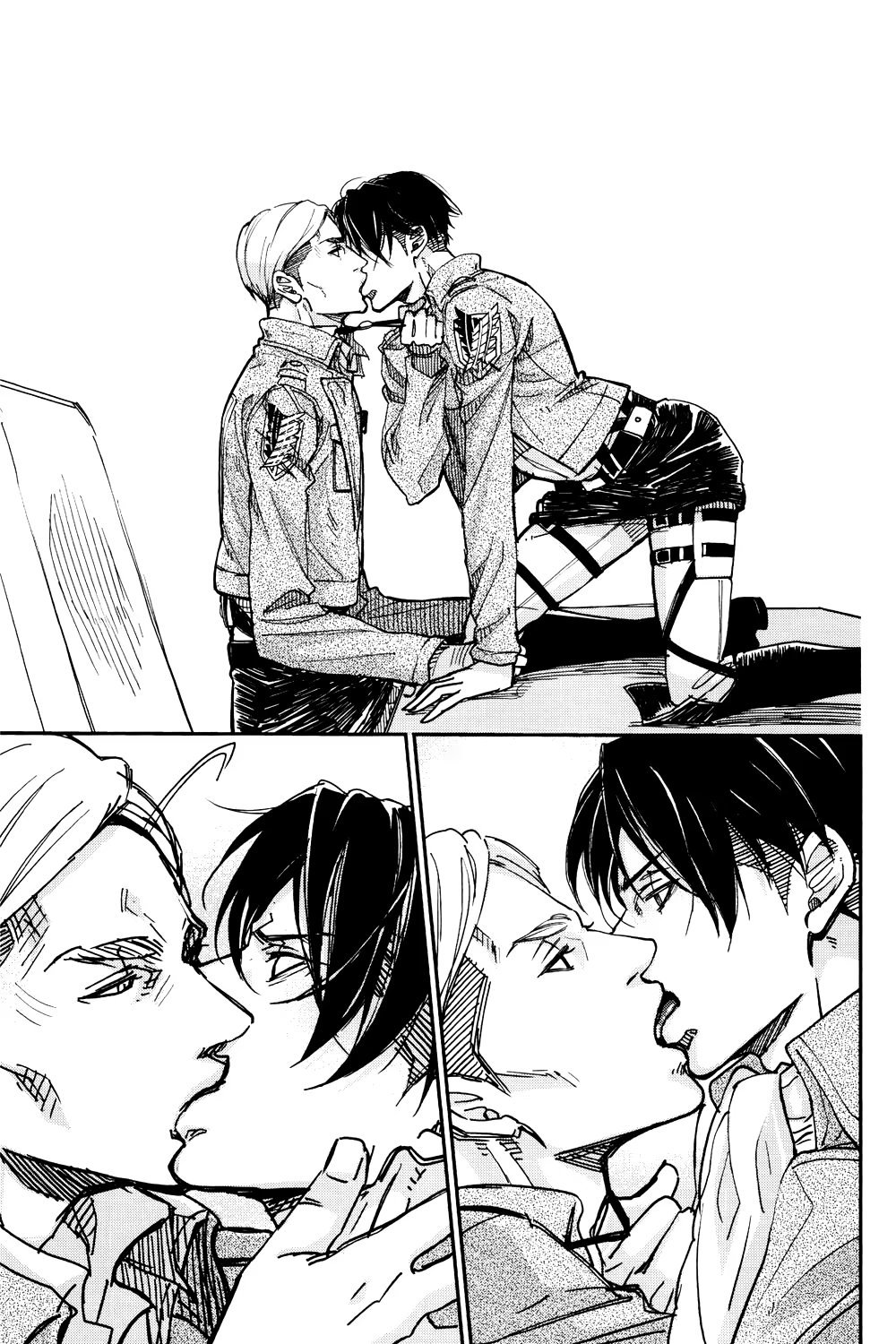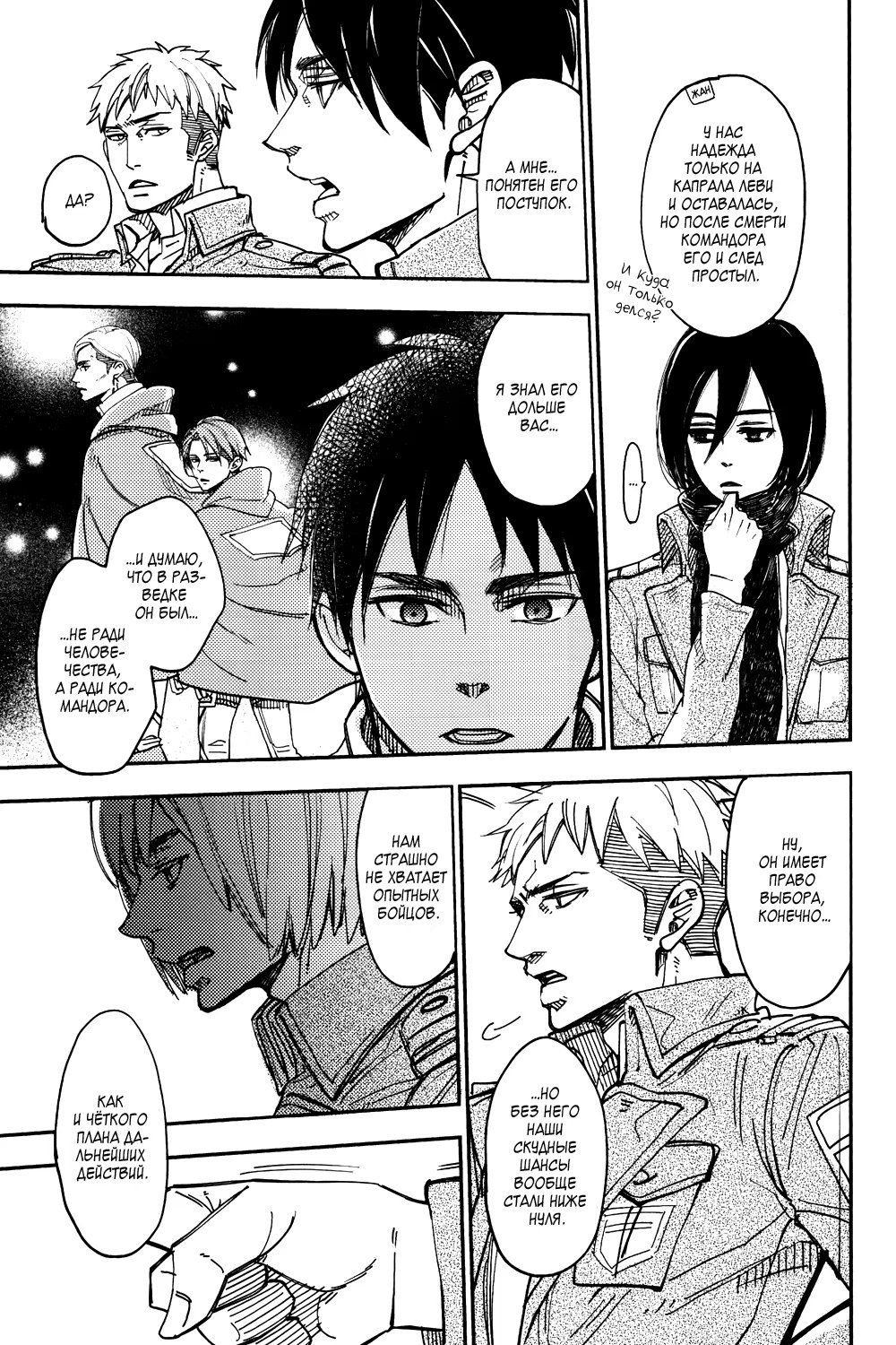 Альтернативное развитие событий: во время очередной миссии Эрвин погибает, и Леви тотчас уходит из Разведкорпуса в неизвестном направлении. Эрен, Микаса, Армин и Жан пытаются хоть как-то стабилизировать хаос, который за этим следует. Но, когда они уже совсем отчаиваются со всем справиться, им неожиданно наносят визит...