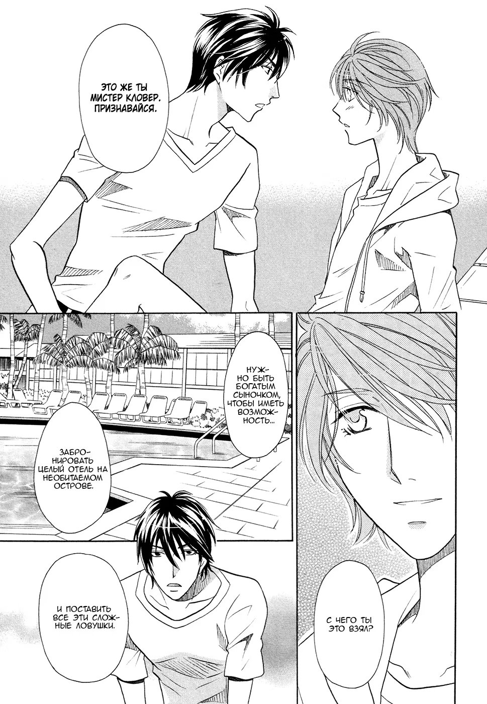 riddleОднажды Дайти получает сообщение от друга детства, с которым не виделся после поступления в университет. Тот предлагает отправиться в групповую поездку и провести несколько дней в роскошном отеле на необитаемом острове, причем совершенно бесплатно. Но неожиданно участники оказываются заперты на острове, полном ловушек некоего Мистера Кловера. Сумеют ли они спастись и разгадать истинное значение путешествия?