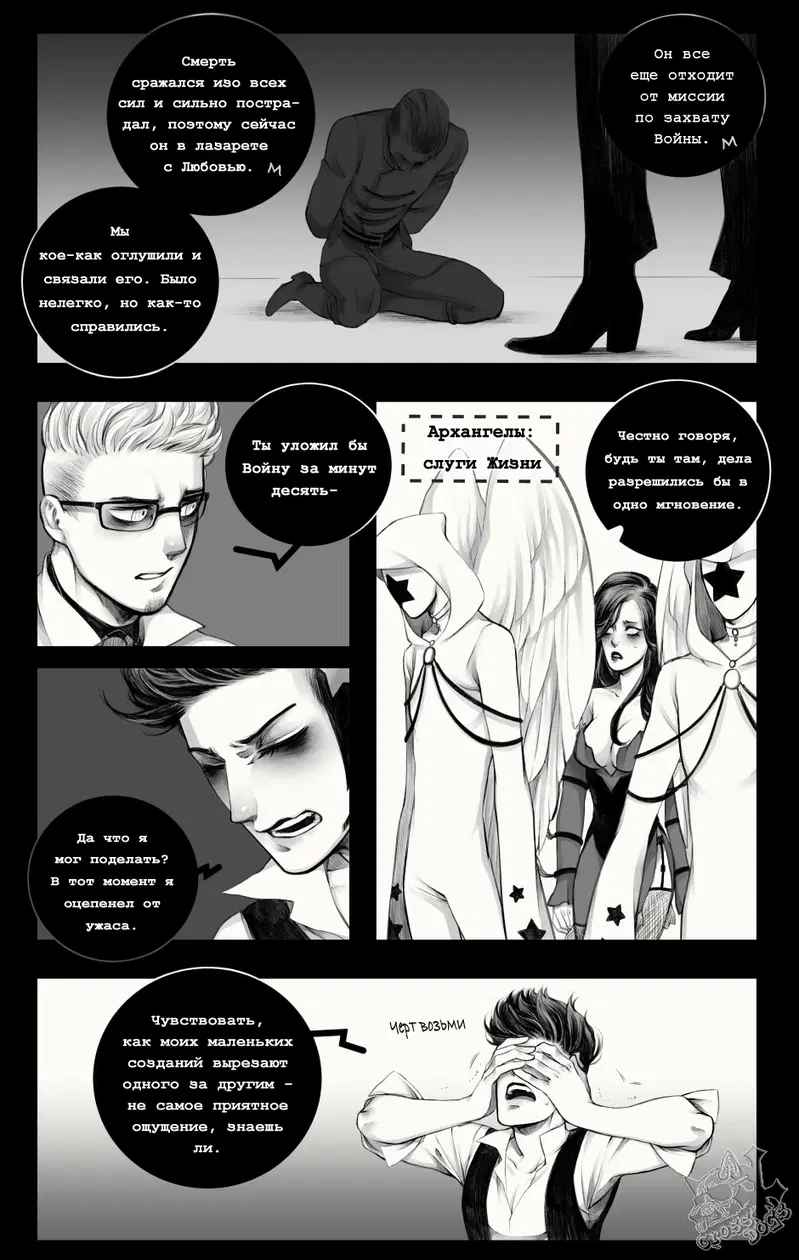 cross dogsСмерть не особо любит свою работу, но выбирать не приходится. Ему больше по душе его противоположность - Жизнь, который, кажется, ненавидит Смерть всем своим нутром. Эта история расскажет вам о том, как порой непросто Богу Жизни и Богу Смерти справляться со своими обязанностями.