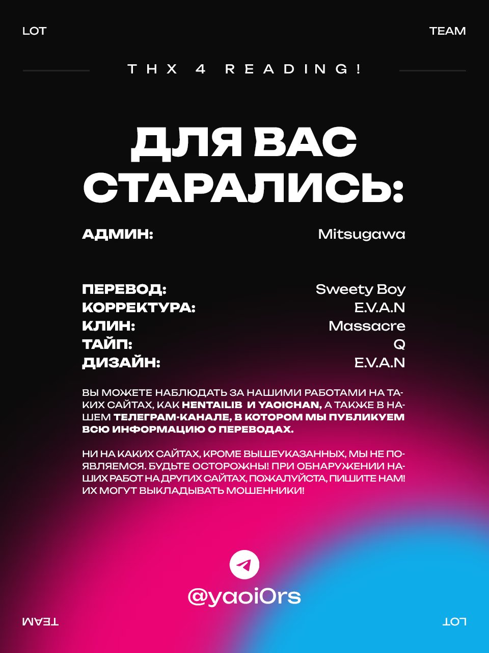 A Day with Officer Kyle (День с офицером Кайлом) 1 Глава 1 2024-10-18 Показать все Читаем: Том: 1. Глава 1 ⬇ Пред глава ⬆ След глава A Day with Officer Kyle (День с офицером Кайлом) 12 0 18 Окт 2024 в 0:00 00 0 Поделиться Переводчики: lui ou toi lot Категории: вцветеяой18плюсполиция Теги: манга Комментарии 0 Добавить Отправить Комментариев еще нет. Вы можете стать первым Похожее Yuri!!! on Ice dj - The spell of love (Любовное заклинание) 7 лет назад 00 0 1 Yuri!!! on Ice dj - Rinya's Summer Vacation (Летние каникулы Рини) 7 лет назад 00 0 1 Yuri!!! on Ice dj - Smile (Улыбочку!) 7 лет назад 00 0 1 Yuri!!! on Ice dj - I'm home! (Я дома!) 7 лет назад 00 0 1 Yuri!!! on Ice dj - Heat (Жар) 6 лет назад 00 0 1 Yuri!!! on Ice dj - A precious ordinary day (Драгоценный обычный день) 7 лет назад 00 0 1 Yuri!!! on Ice dj - Bedtime stories (Сказки на ночь) 7 лет назад 00 0 1 Your planets (Твои планеты) 14 лет назад 00 0 1 Wolves Pact – chapter 1 (Акт волков) 3 года назад 00 0 1 Vanity (Тщетно) 14 лет назад 00 0 1 Tokyo Alien Ulala (Токийский инопланетянин Урара) 14 лет назад 00 0 1 The Boy love comic artist buys a delivery host (Автор яойной манги покупает хоста с доставкой) 8 лет назад 00 0 6 Sins and Kisses (Грехи и поцелуи) 14 лет назад 00 0 7 Rules (Правила) 14 лет назад 00 0 19 Rules dj - Double Trouble (Двойная проблема) 14 лет назад 00 0 1 Rules dj - Hello Again (И снова здравствуй) 12 лет назад 00 0 1 Rules dj - Song Birds (Певчие птицы) 14 лет назад 00 0 1 Rules doujinshi: If Winter comes, can Spring be far behind? 14 лет назад 00 0 1 Rules/Hydra (Правила/Гидра (короткие истории)) 14 лет назад 00 0 7 Please (Пожалуйста) 14 лет назад 00 0 6 One Day (Однажды) 8 лет назад 00 0 1 One Day (Однажды) 1 день назад 00 0 127 My pretty policeman (Мой любимый полицейский) 3 года назад 00 0 18 Lovers and Souls (Любовники и души) 14 лет назад 00 0 7 Kyle The Fox 2 (Лисенок Кайл 2) 3 года назад 00 0 1 Katekyo Hitman Reborn! dj - Shoumonai White Day no Hon (Бесполезный Белый День) 13 лет назад 00 0 1 Katekyo Hitman Reborn dj - Doki Doki Valentine's Day (Doki Doki Valentine's Day) 14 лет назад 00 0 1 Kateikyoushi Hitman Reborn! dj - Special Day (Особенный день) 14 лет назад 00 0 1 Hydra (Гидра) 13 лет назад 00 0 16 Hydra dj - Blue Film First 13 лет назад 00 0 1 Hydra dj - Sono Mae no Hibi 12 лет назад 00 0 1 Hong-Kong Dragnet (Гонконгская мафия) 5 лет назад 00 0 13 Hinata Specials (Спецпредложение Хинаты) 6 лет назад 00 0 1 Hetalia dj - Day In, Day Out (Изо дня в день) 9 лет назад 00 0 1 From your side (С твоей стороны) 14 лет назад 00 0 1 Everyday Smile 14 лет назад 00 0 5 Dragon Quest XI-Rental Kamyu-kun 1 day (1 день проката Камуса-куна) 5 лет назад 00 0 1 Dragon Quest XI- Rental Kamyu-kun 2 day (2 день проката Камуса-куна) 5 лет назад 00 0 1 Dragon Quest XI- Rental Kamyu-kun 3 day (3 день проката Камуса-куна) 5 лет назад 00 0 1 Dragon Quest XI- Rental Kamyu-kun 4 day (4 день проката Камуса-куна) 5 лет назад 00 0 1 Dragon Quest XI- Rental Kamyu-kun 5 day (5 день проката Камуса-куна) 5 лет назад 00 0 1 Dragon Quest XI- Rental Kamyu-kun 6,7 day (6,7 день проката Камуса-куна) (6,7 день проката Камуса-куна) 5 лет назад 00 0 2 Day when become the butterfly (День, когда становятся бабочкой) 14 лет назад 00 0 1 Another Day on the Planet (Ещё один день) 12 лет назад 00 0 1 Another Rules Story (Правила: ещё одна история) 12 лет назад 00 0 1 ACTION! - Good Tonight - (Удачный вечер) 2 года назад 00 0 1