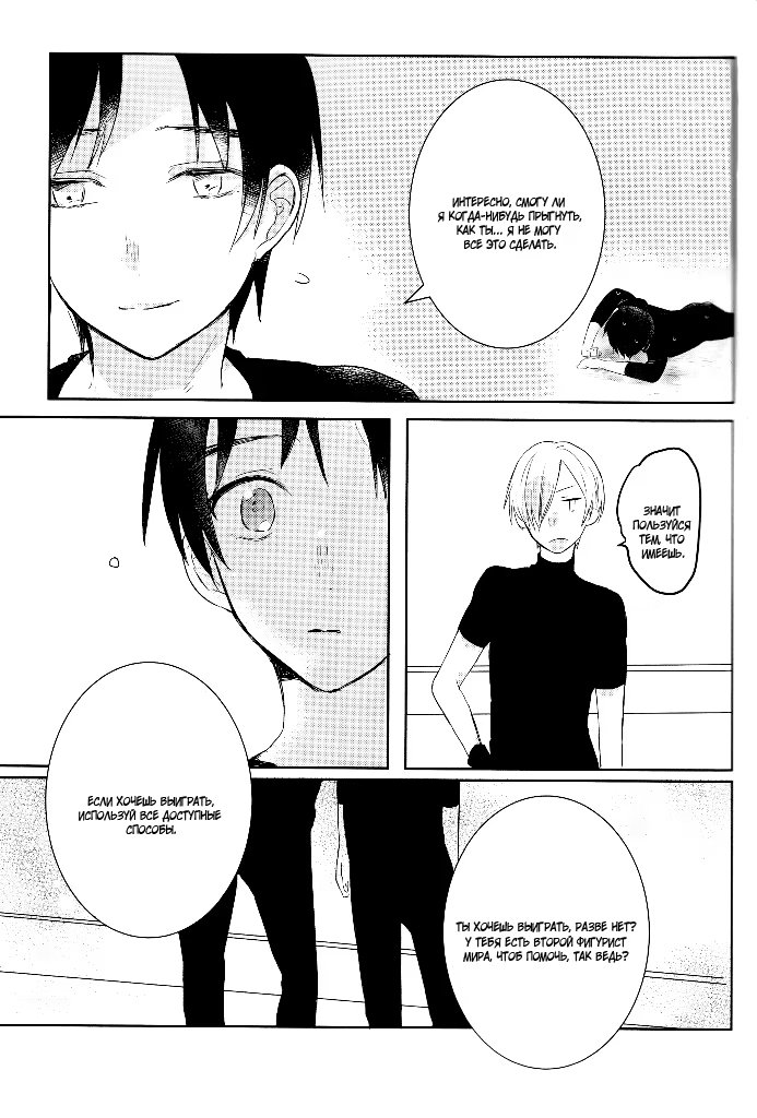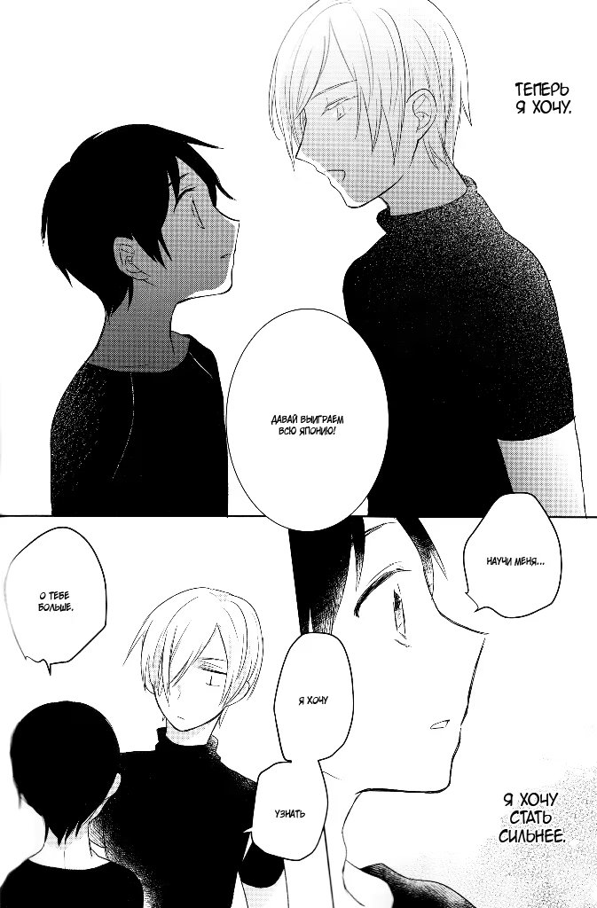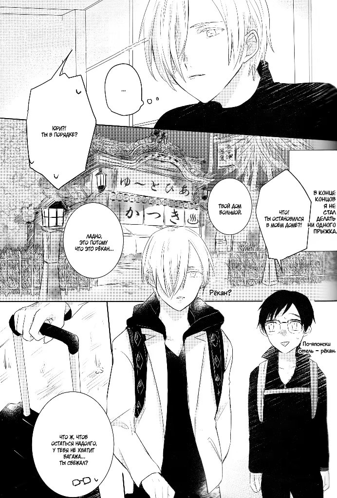 kakumeiАльтернативна версия развитий событий из аниме. Юрий, увидев поражение Юри в финале Гран-при, целует того в туалете, а спустя время приезжает на Кюсю, домой к парню. С этого момента Плисецкий начинает тренировать Юри и, чтобы выступление того прошло хорошо, ведь тема «Любовь», предлагает Кацуки «выступать, как влюблённые».