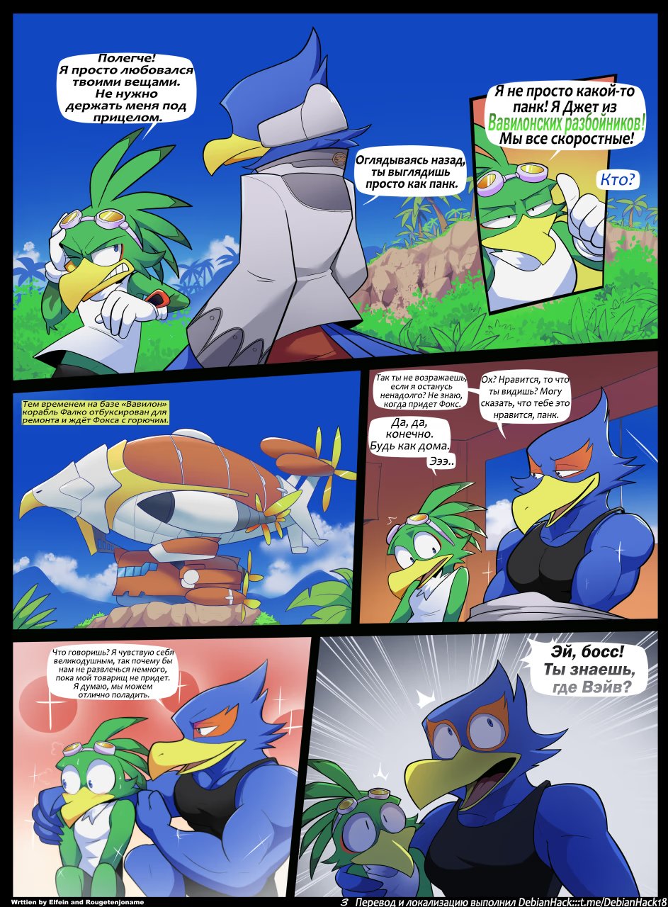 debianhackУ Фалко Ломбарди из команды Стар Фокс кончилось горючее на корабле и он вынужден высадиться на ближайшей планете. На ней он встречает членов банды Вавилонские разбойники из вселенной Соника. Как Фалко выберется из этой непростой ситуации? Читаем)