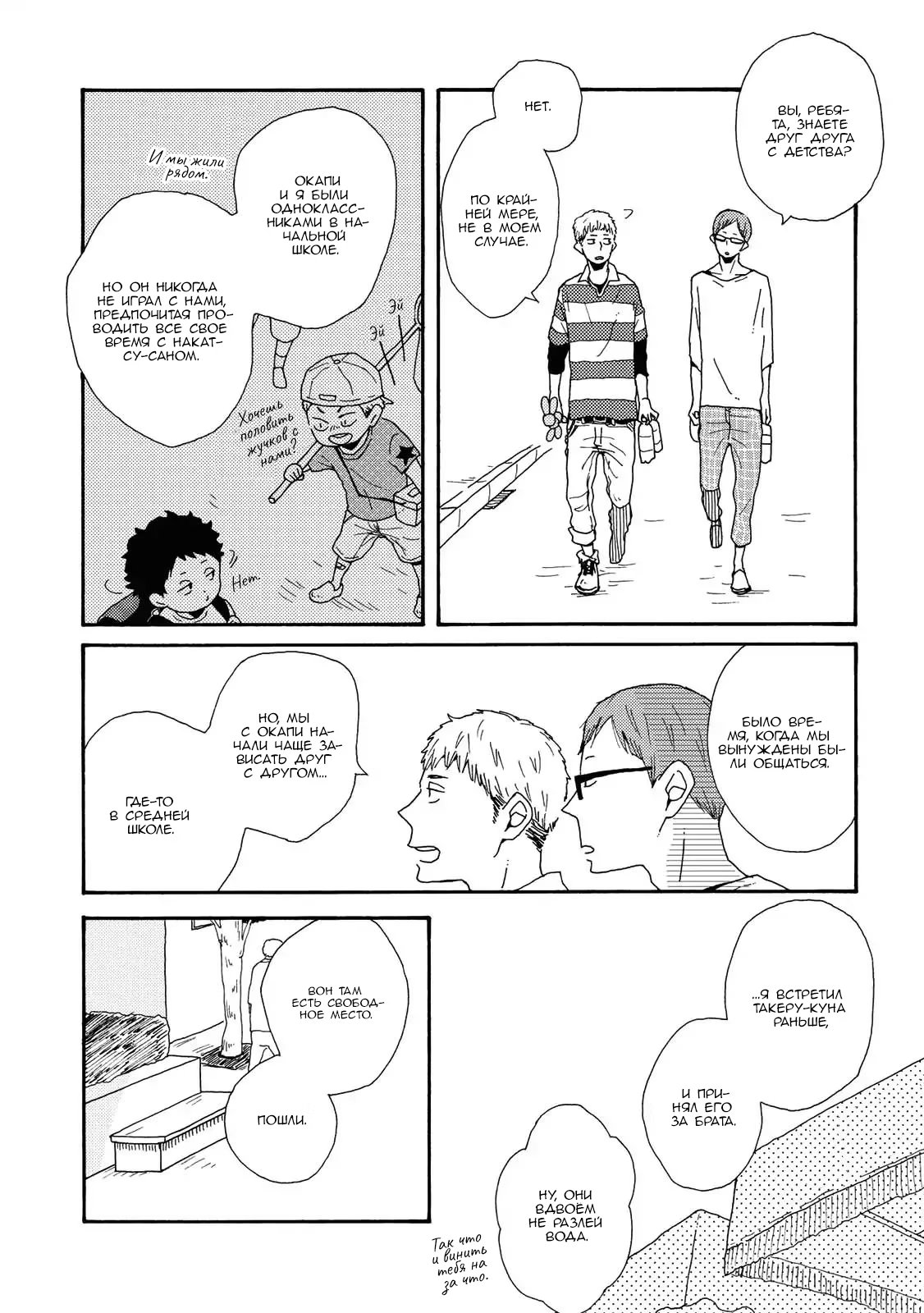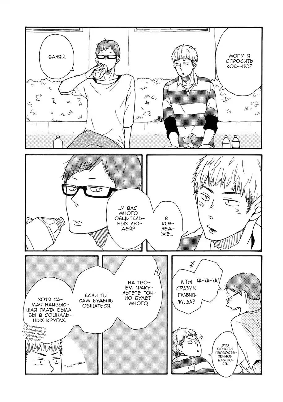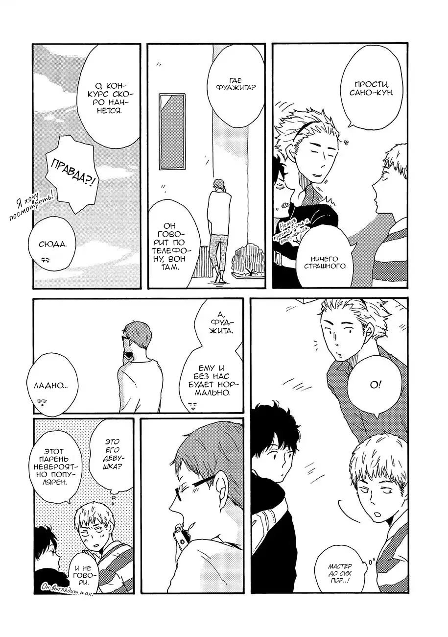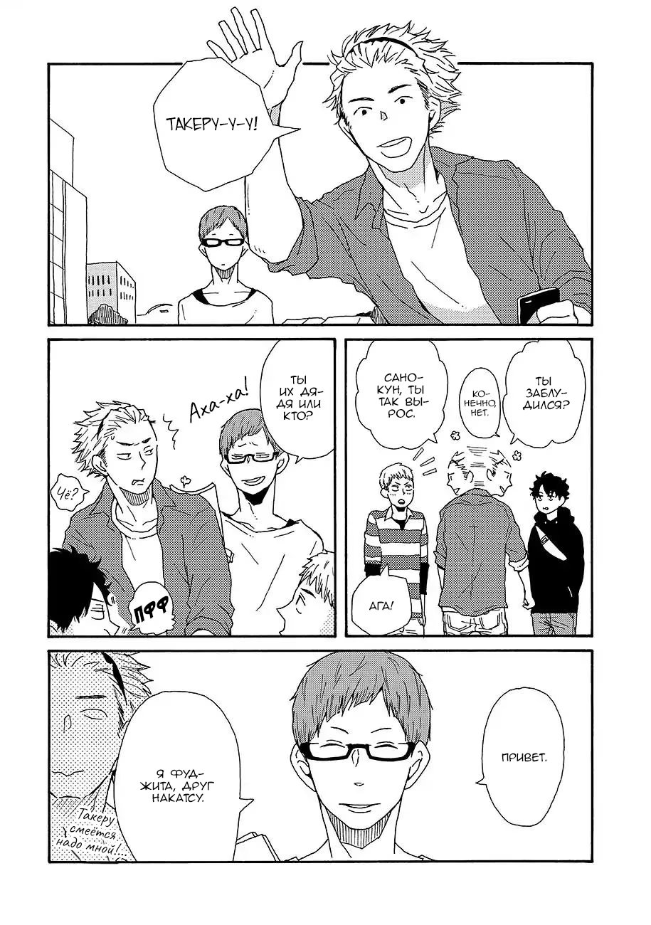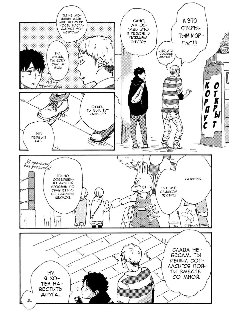 d o w n t o w nСано ученик старшей школы, девственник, который хочет пользоваться популярностью среди девушек. Неожиданно, он встречает молодого и красивого Фуджиту, студента университета, и считает его своим "мастером". Когда они снова встречаются в городе, глаза Фуджиты полны слёз из-за недавнего расставания. Выслушав его, Сано узнаёт, что тот гей, и более того - настоятельно рекомендует потерять девственность Сано с ним.