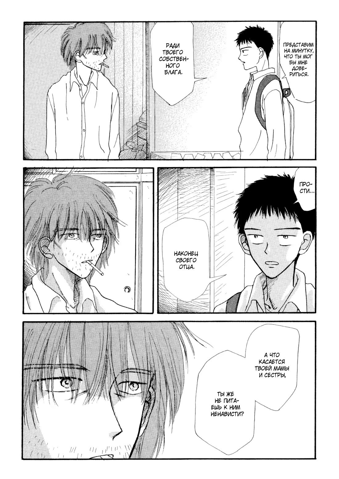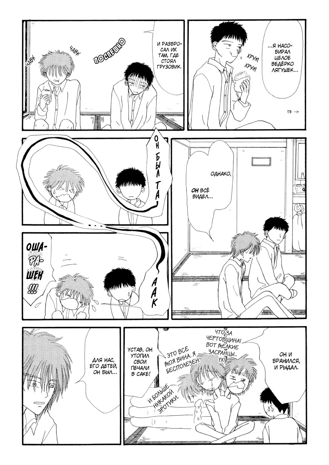 Первая опубликованная работа Хигучи Асы, автора манги «Замахнись сильнее»/«Ookiku Furikabutte». В 1998 году ван-шот победил в престижном конкурсе «Сики» сэйнэн-журнала Afternoon, где был отмечен за неповторимые взаимоотношения между персонажами, и стал дебютом Хигучи в качестве мангаки.