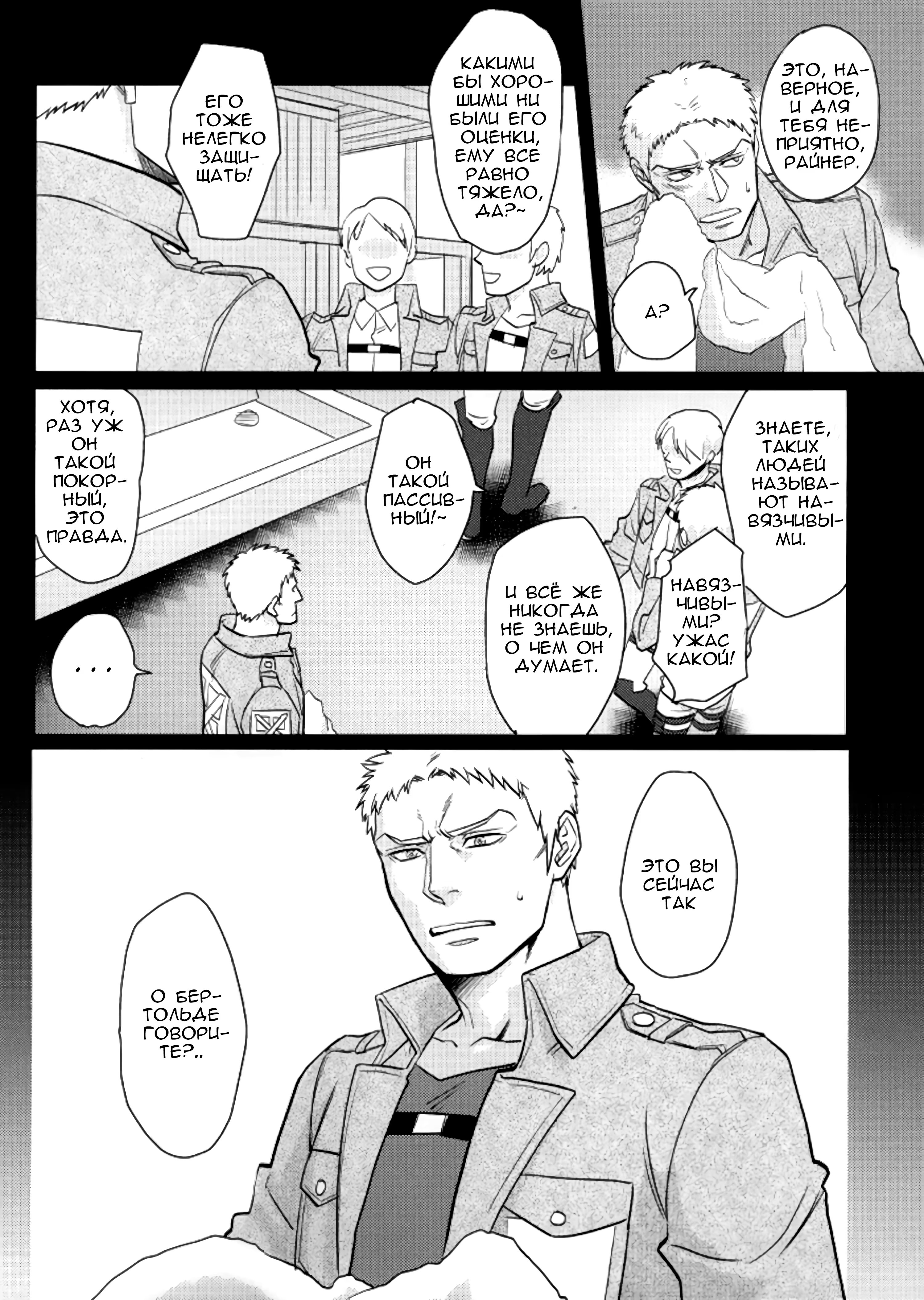 "Все думают, что Бертольд очень пассивный и покорный парень, но Райнер знает о нём правду"
