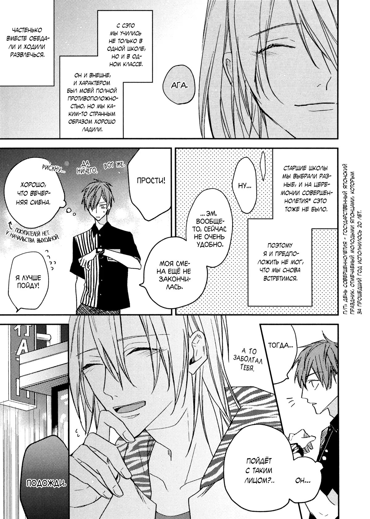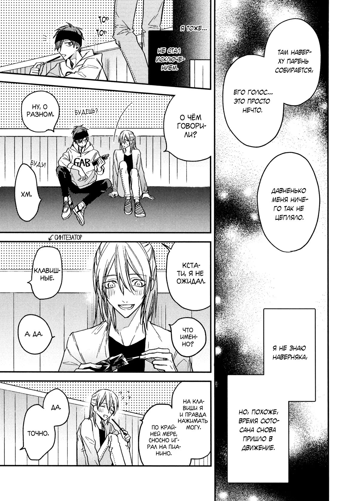 Saidai Onryou de dj - Yasashii hiro (Дружелюбный герой) 1 Глава 1 2021-03-26 Показать все Читаем: Том: 1. Глава 1 ⬇ Пред глава ⬆ След глава Saidai Onryou de dj - Yasashii hiro (Дружелюбный герой) 42 0 26 Мар 2021 в 0:00 00 0 Поделиться Переводчики: vesperum Категории: повседневностьромантикасёнэн айдодзинси Теги: манга Дополнительная история к манге "На максимальной громкости" про Дзина и Сето. Комментарии 0 Добавить Отправить Комментариев еще нет. Вы можете стать первым Похожее Yu-Gi-Oh! dj - Snow Drop (Подснежник) 7 лет назад 00 0 1 You Took Away My Everything (Ты отнял у меня всё) 12 лет назад 00 0 7 Yoru wo Nigeru (Скрываясь от темноты) 10 лет назад 00 0 1 Yongou x Keibi (Четвертая стража) 8 лет назад 00 0 24 Yasashii Epilogue (Жили они долго и счастливо) 5 лет назад 00 0 7 Yasashii Kankei (Нежная связь) 12 лет назад 00 0 15 Yasashii Koi ga Sodatsu Made (Пока не взрастим любовь) 7 лет назад 00 0 6 Yasashii Pants no Nugasekata (Как снять штаны) 5 лет назад 00 0 6 Yasashii Pantsu no Nugasekata. Shinro (Способ снять штаны нежно. Выбор жизненного пути) 4 года назад 00 0 1 Yandere Hitotsu Yane no Shita (С яндере под одной крышей) 1 год назад 00 0 6 Yarichin☆Bitch-bu (Клуб яричин) 1 год назад 00 0 34 Who's the Liar (Кто лжец) 14 лет назад 00 0 6 When camellia flowers fall (Когда опадают цветы камелии) 2 года назад 00 0 5 Weekend Citron (Цитрон выходного дня) 3 года назад 00 0 6 Trouble Double Face (Проблемы Раздвоения Личности) 12 лет назад 00 0 1 True Tenderness (Настоящая нежность) 14 лет назад 00 0 1 Tiger & Bunny dj - Amaku Yasashii Binetsu (Сладко-нежный Жар) 13 лет назад 00 0 1 The Sixth Sense (Шестое чувство) 6 лет назад 00 0 38 The Killing Method of a Kind Dragon (Смертельный прием доброго дракона) 6 лет назад 00 0 13 The Fuji (Фуджи) 1 год назад 00 0 1 The double life of a professor (Тайная жизнь профессора) 3 месяца назад 00 0 40 Tenguzin (Тэнгудзин) 14 лет назад 00 0 7 Sweet Meats (Лакомый кусочек) 14 лет назад 00 0 2 Suki Darake no Anta ga Warui (Ты делаешь это слишком легко) 3 года назад 00 0 5 Subarashii Kiseki ni Yasashii Kimi to (С тобой в это чудесное время года) 3 года назад 00 0 7 Steady Affection (Неизменно дружелюбный) 5 лет назад 00 0 17 Star na Koi (Любовь звезды) 10 лет назад 00 0 9 Sijag-eun Seutoking (Началось с того, что я следил за ним) 1 год назад 00 0 6 Shisen no Toriko (В плену взглядов) 2 года назад 00 0 8 Seto no Omise no Okyakusama (Клиенты Сето) 12 лет назад 00 0 1 Secret and Sun (Солнце и секрет) 10 лет назад 00 0 1 Saidai Onryou de dj - What does"MAGURO"mean? (Что значит "тунец"?) 4 года назад 00 0 1 Rose and Savage (Роза и жестокость) 13 лет назад 00 0 7 Prince's Miniature Garden (Окно в миниатюрный сад Принца) 12 лет назад 00 0 6 Prince of Tennis dj -Signal (Принц тенниса dj - Сигнал) 13 лет назад 00 0 1 Prince of Tennis dj - A Younger Boy (Принц тенниса dj - Молодой парень) 13 лет назад 00 0 1 Please turn around to me and smile (Взгляни на меня с улыбкой) 9 лет назад 00 0 6 Play Loud (На максимальной громкости) 5 лет назад 00 0 6 Perfect World (Идеальный мир) 7 лет назад 00 0 7 Our True Figure (Настоящие мы) 1 год назад 00 0 6 Oretachi wa Koibito ni Muitenai (Мы не подходим друг другу) 1 месяц назад 00 0 14 Ore no Ushiro ni Tatsu na!! (Сзади не подходить!) 9 лет назад 00 0 7 Ookami-Kun Wa Suki Ga Kakusenai (Волк не может скрывать свою привязанность) 8 месяцев назад 00 0 6 One night lesson (Ночной урок) 14 лет назад 00 0 4 Omowaseburi na Kimi no Tonari (Мой соблазнительный сосед) 8 лет назад 00 0 3 On the Palm of Your Hand (В твоих руках) 14 лет назад 00 0 1 Nise x Koi Boyfriend dj - Henshin Shichau (Перевоплощение!?) 9 лет назад 00 0 1 Nemuri Otoko to Koi Otoko (Спящий и любящий) 6 лет назад 00 0 3 My Friend is a Hero (Мой друг - герой) 2 года назад 00 0 9 Mix Mix Chocolate (Смешанный шоколад!) 13 лет назад 00 0 7