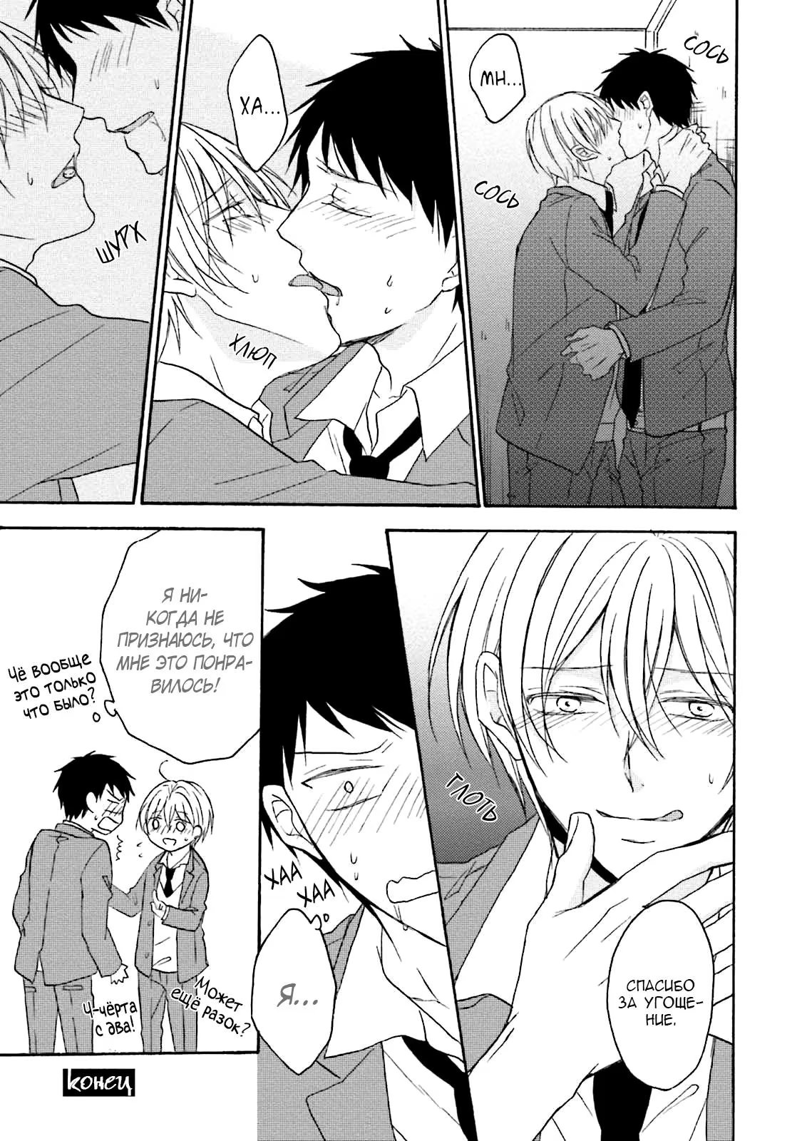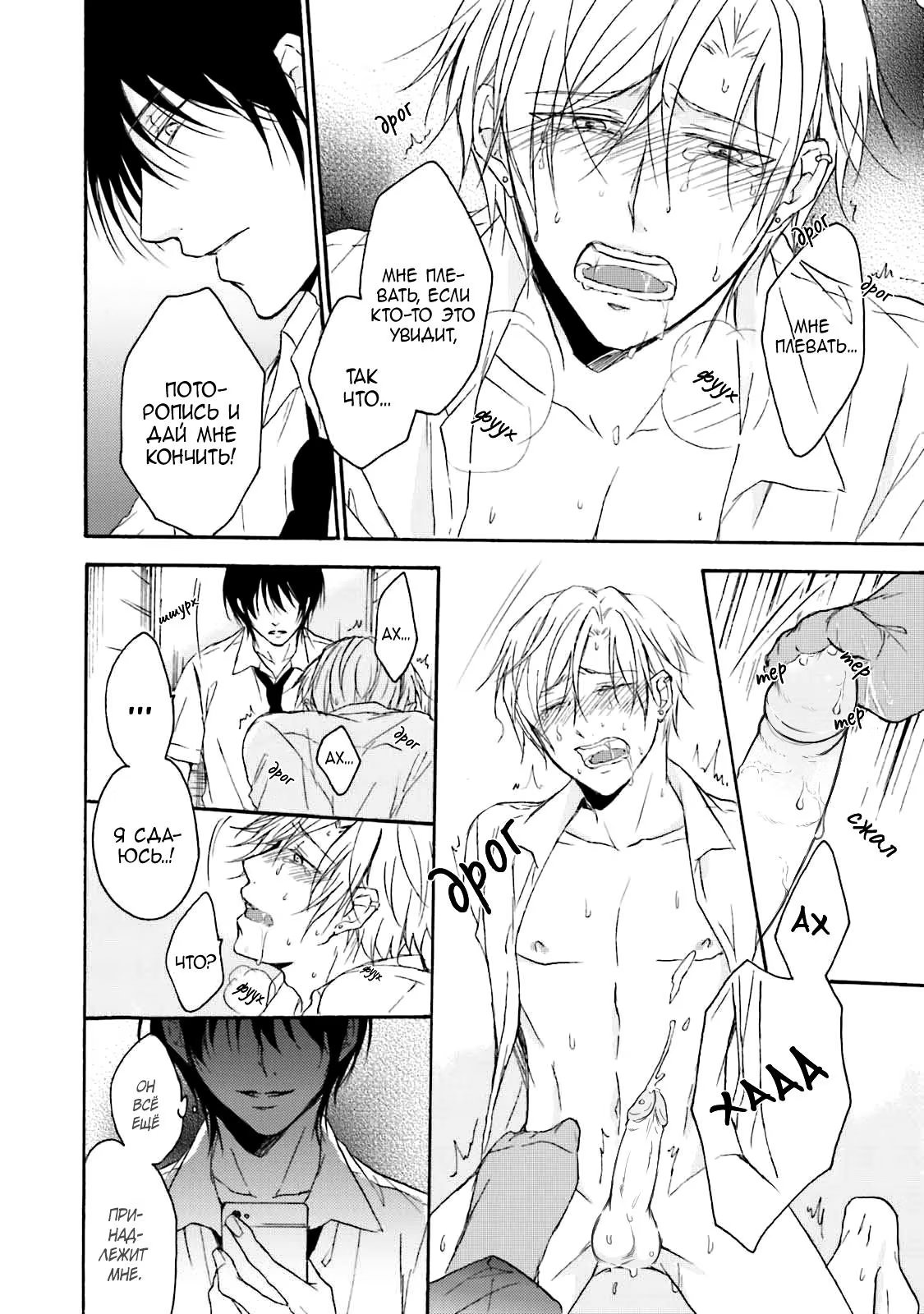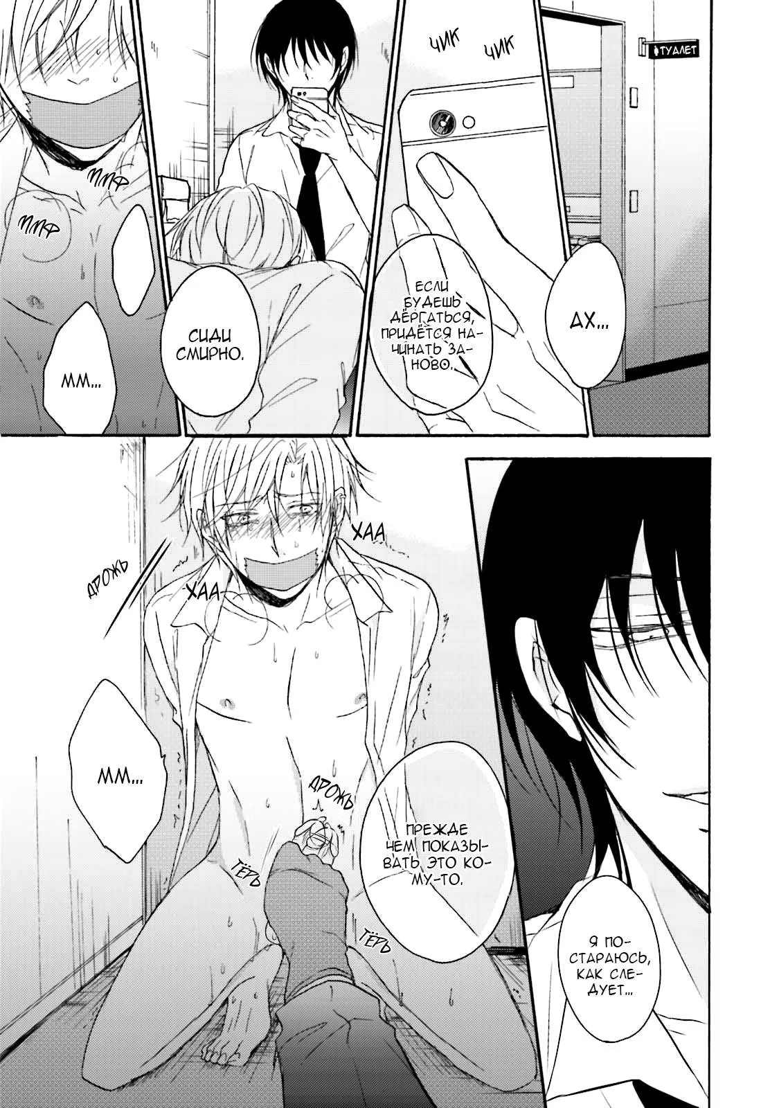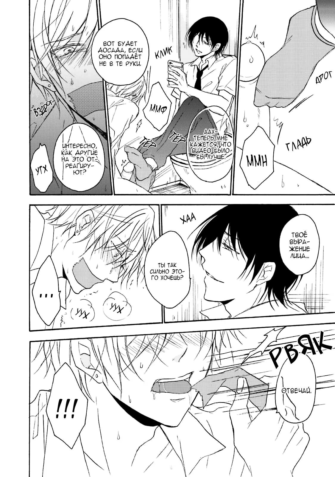 И однажды, прячась в уборной во время обеда, он случайно подслушивает своих одноклассников, которые занимаются сексом. Не имея ни малейшей возможности выбраться, Суеока вынужден молча терпеть это. Чем же все обернется для бедного паренька?