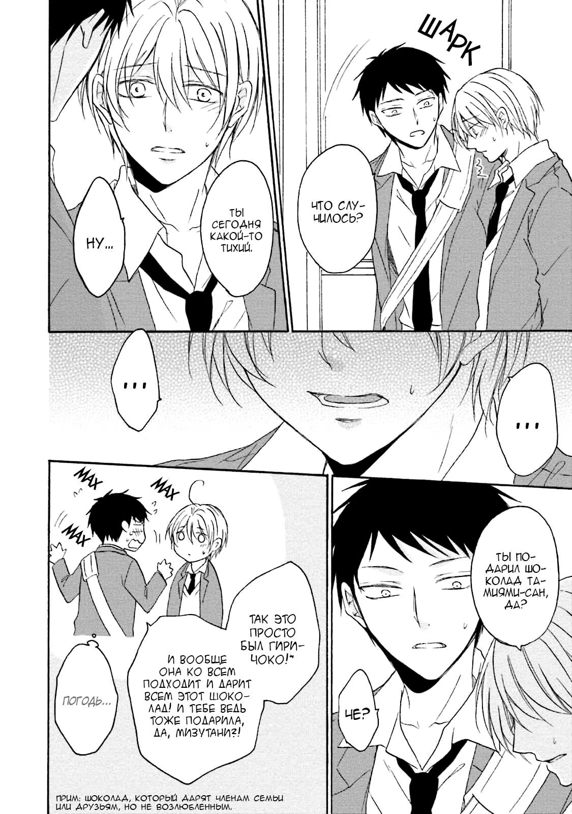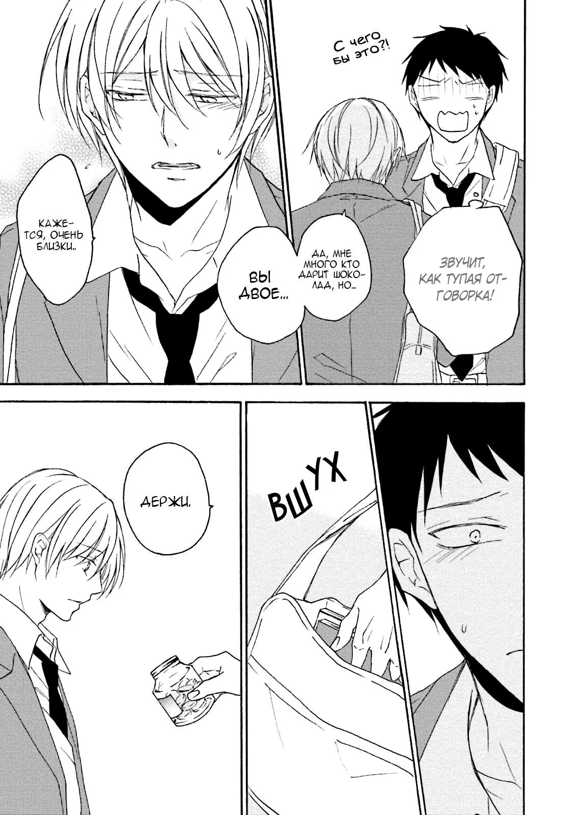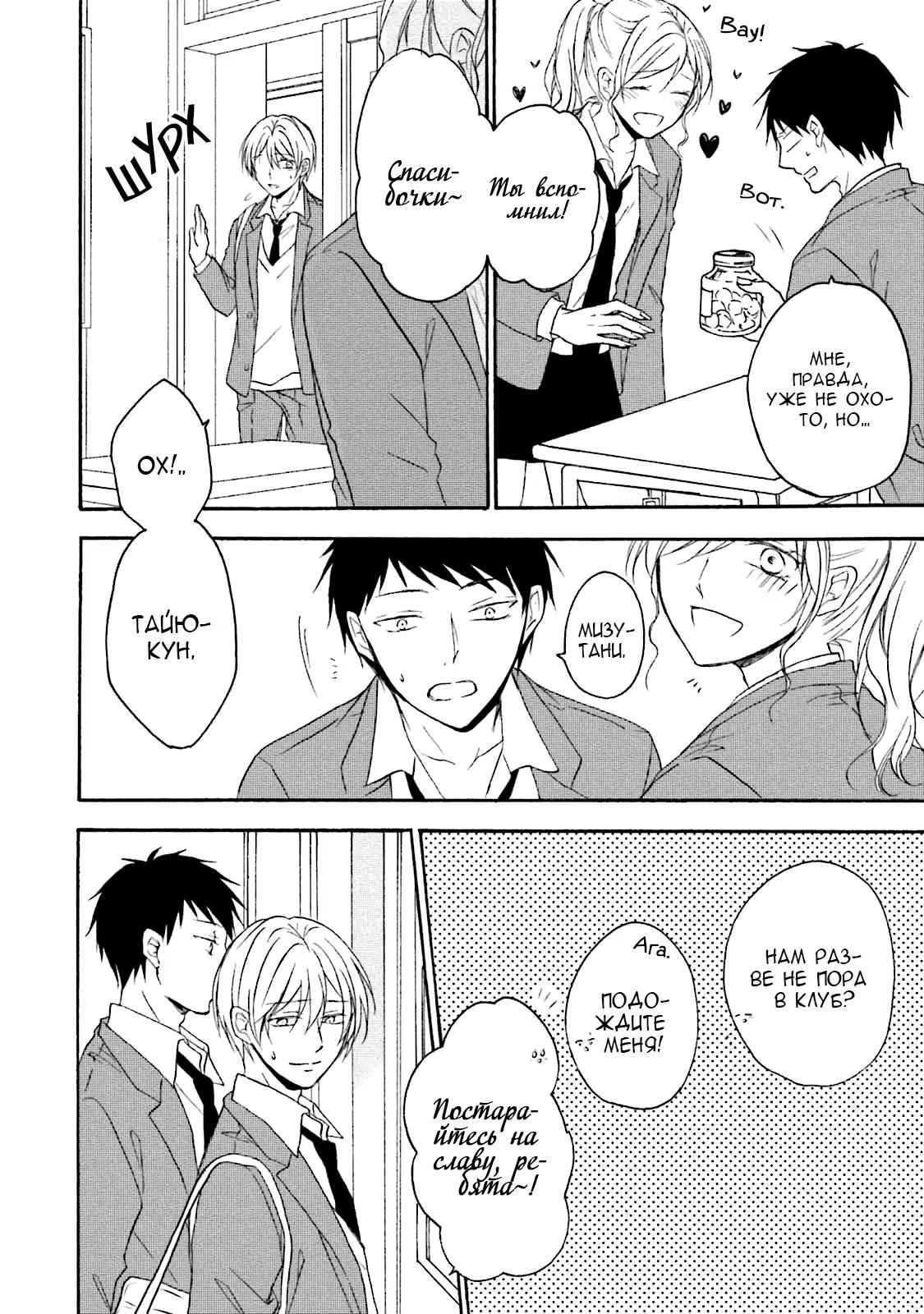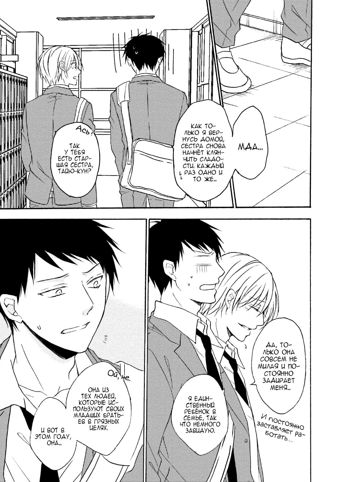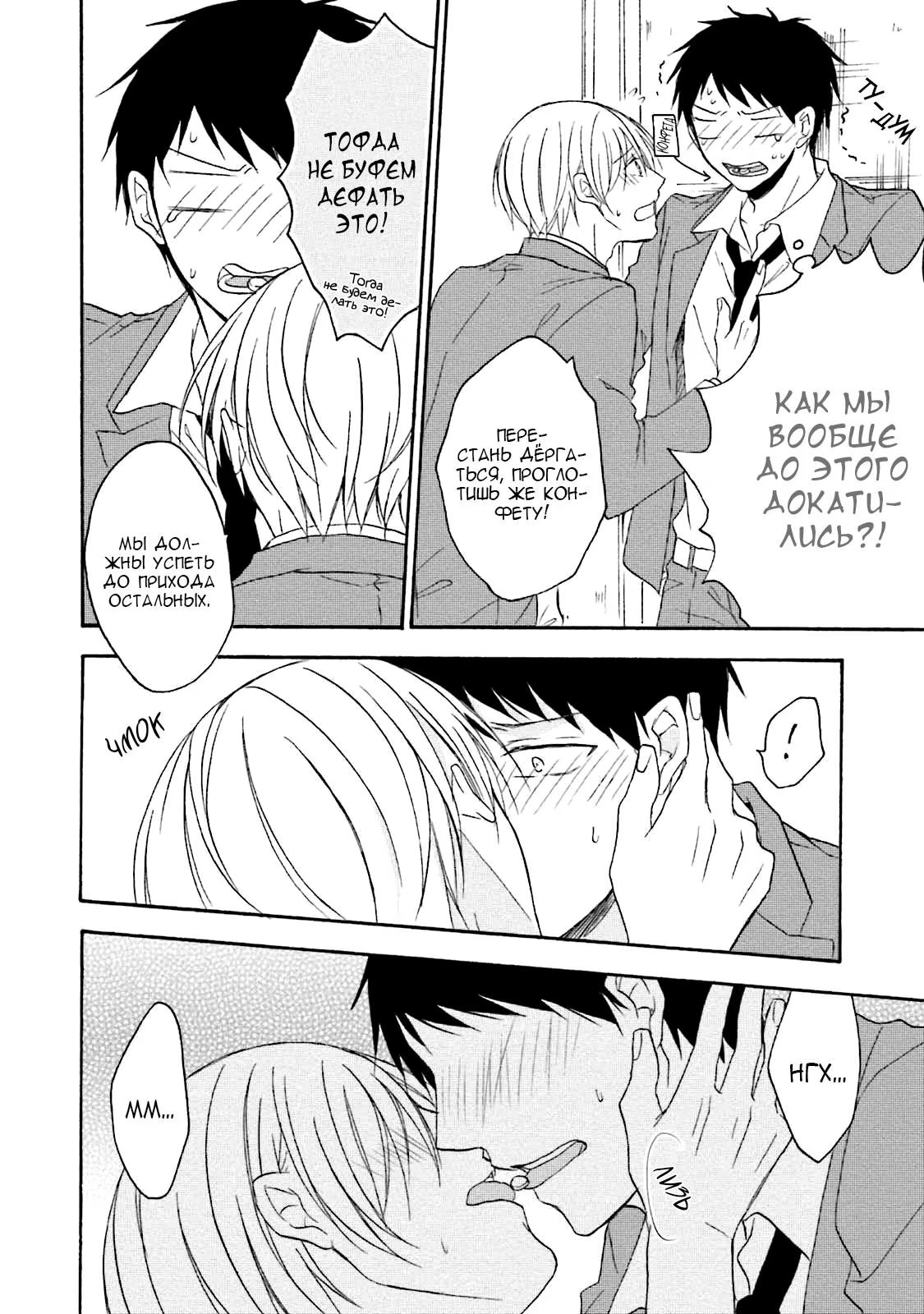 И однажды, прячась в уборной во время обеда, он случайно подслушивает своих одноклассников, которые занимаются сексом. Не имея ни малейшей возможности выбраться, Суеока вынужден молча терпеть это. Чем же все обернется для бедного паренька?