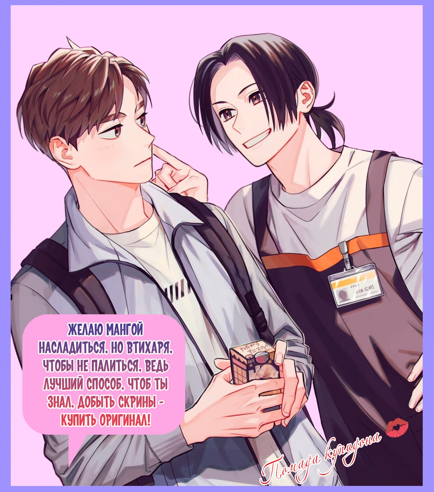 помада купидонаРаботающий в магазинчике-аптеке Оогами Хироки очень любит поболтать с постоянным молодым покупателем Такимото Шинтаро, который всегда приходит в одно и то же время прямо перед закрытием. По странному стечению обстоятельств, Шинтаро признаётся ему в симпатии, и так они решают попробовать отношения. Пока они ходят на свидания, Хироки узнаёт новые стороны Шинтаро, но...