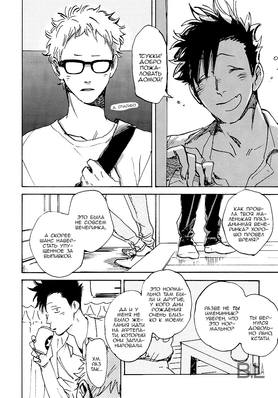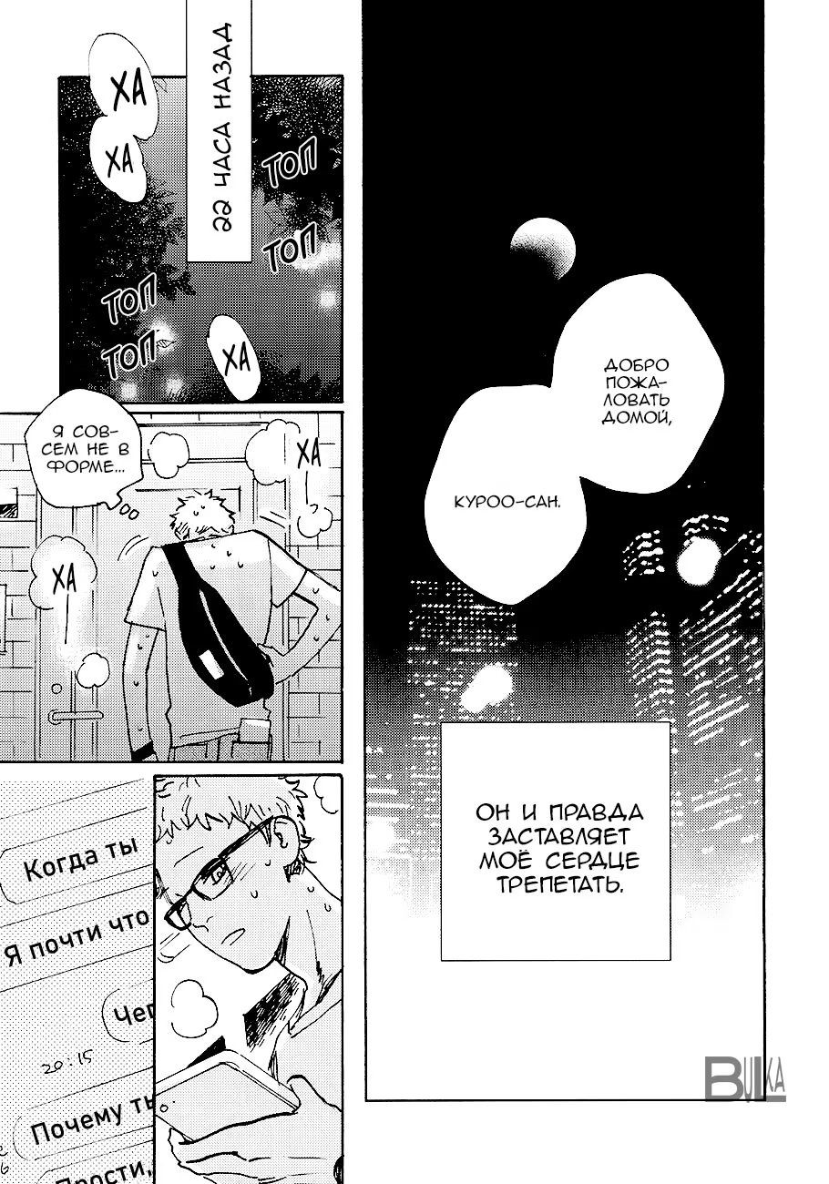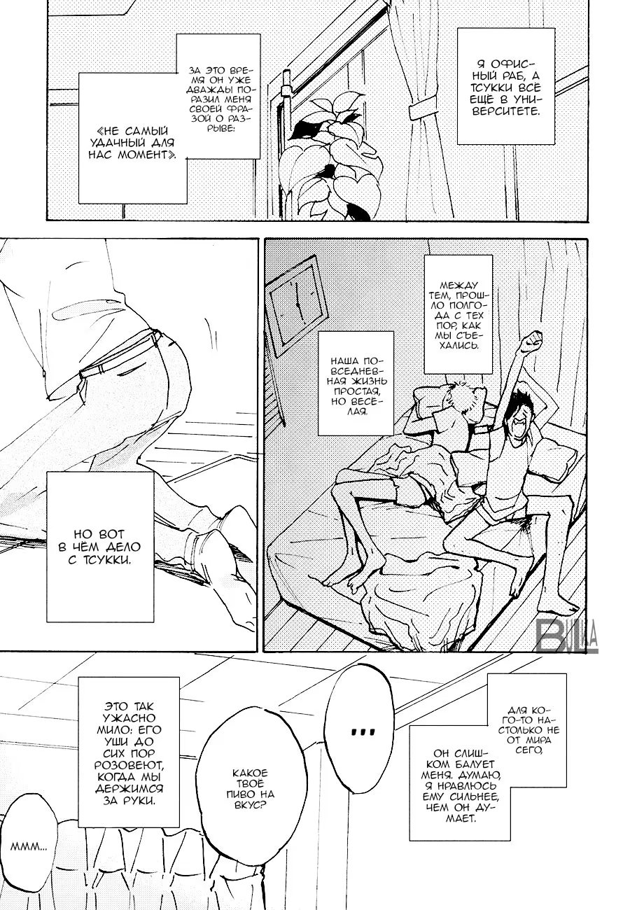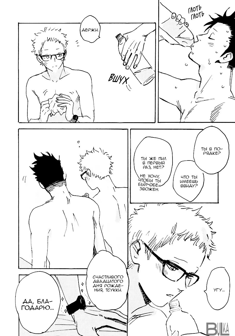 bulkasmyaskomУ Тсукишимы день рождения, но он вернулся с вечеринки очень рано, чем удивил Куроо. Но то, что мегане подготовил для черного кота на вечер заставляет сердце биться чаще. Немного повседневности от работающего в офисе Куроо-сана и студента Тсукишимы.