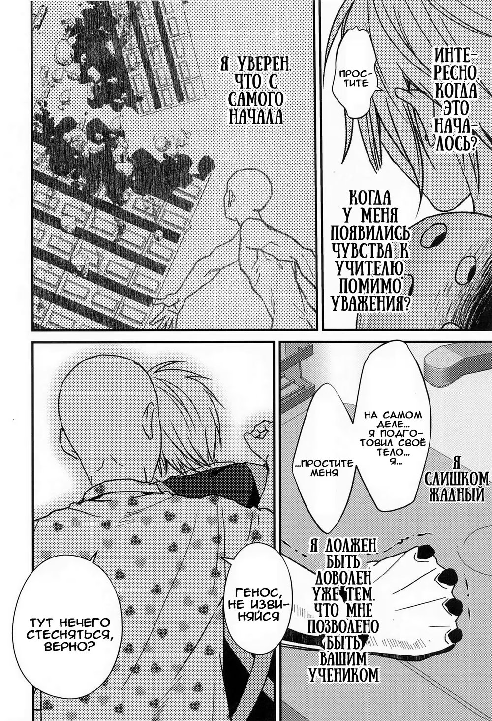 горчичное полеСтав учеником Сайтамы, Генос бессознательно начинает хотеть близости с учителем.