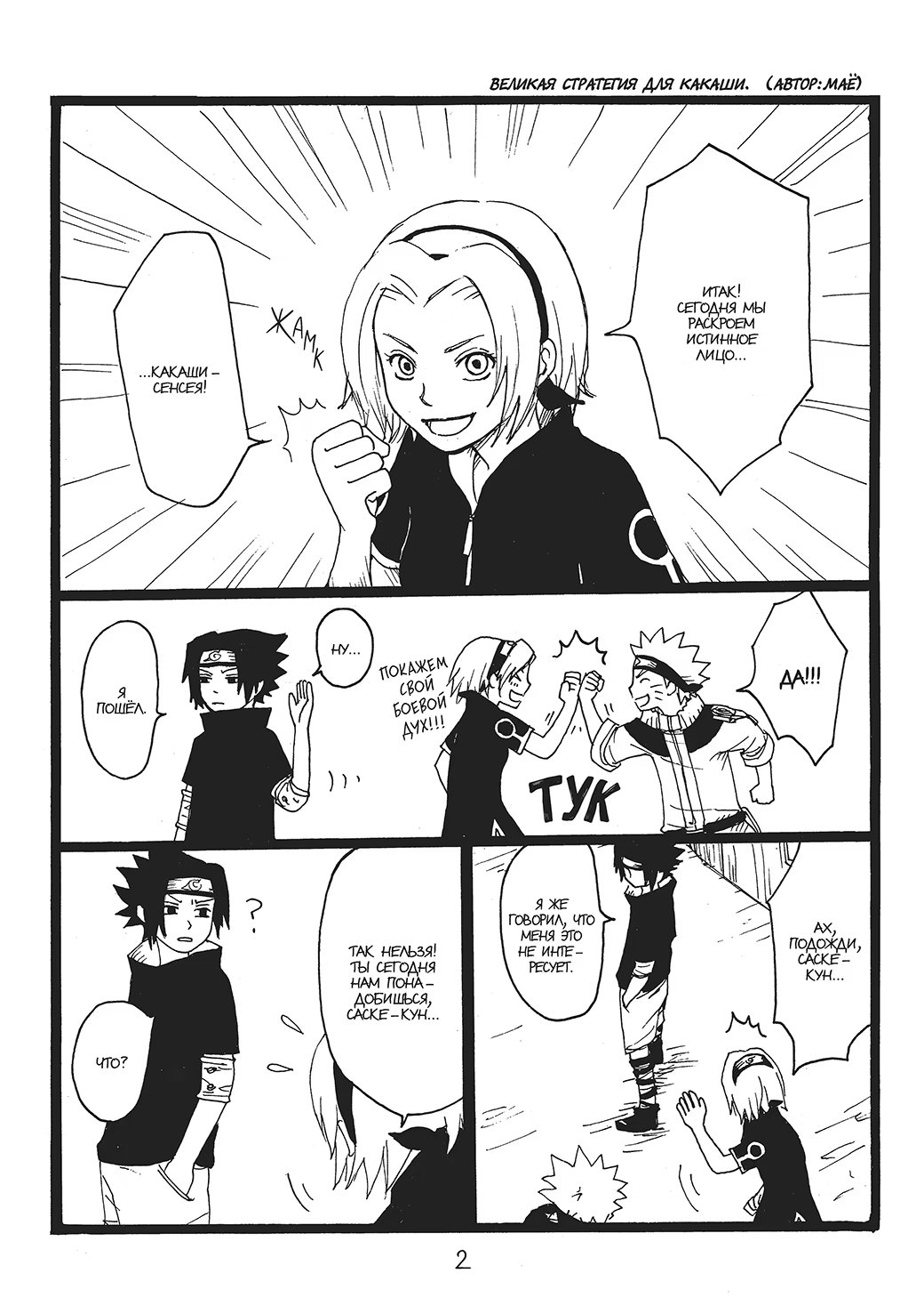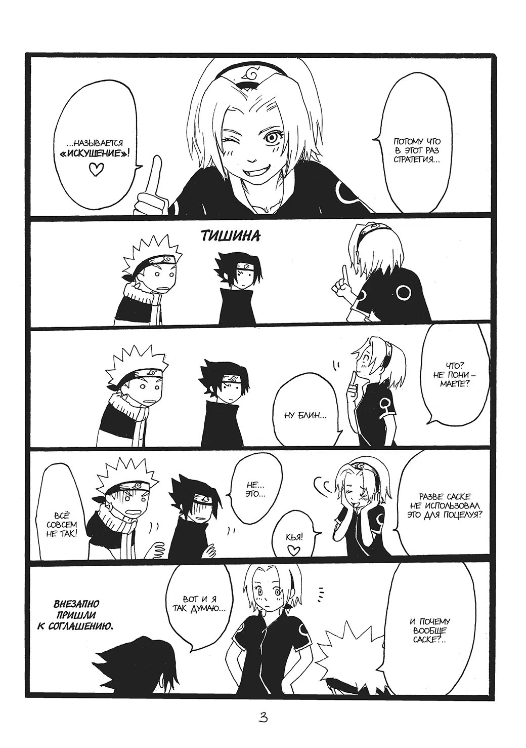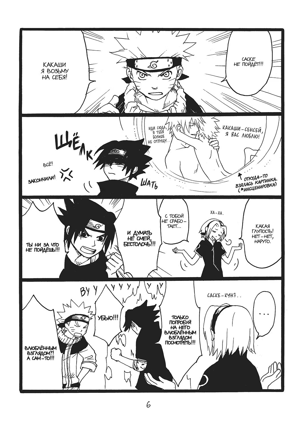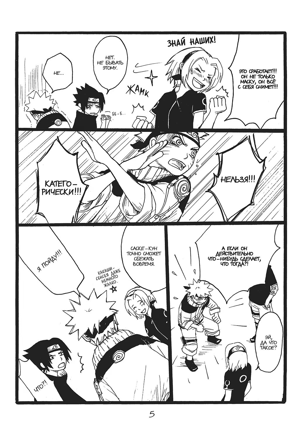 N-ная попытка команды номер 7 заглянуть наконец-то под маску Какаши-сенсея основывается на стратегии соблазнения, придуманной Сакурой. И все бы ничего, но в качестве жертвы куноичи благосклонно выбрала Саске, с чем категорически не согласен Наруто.