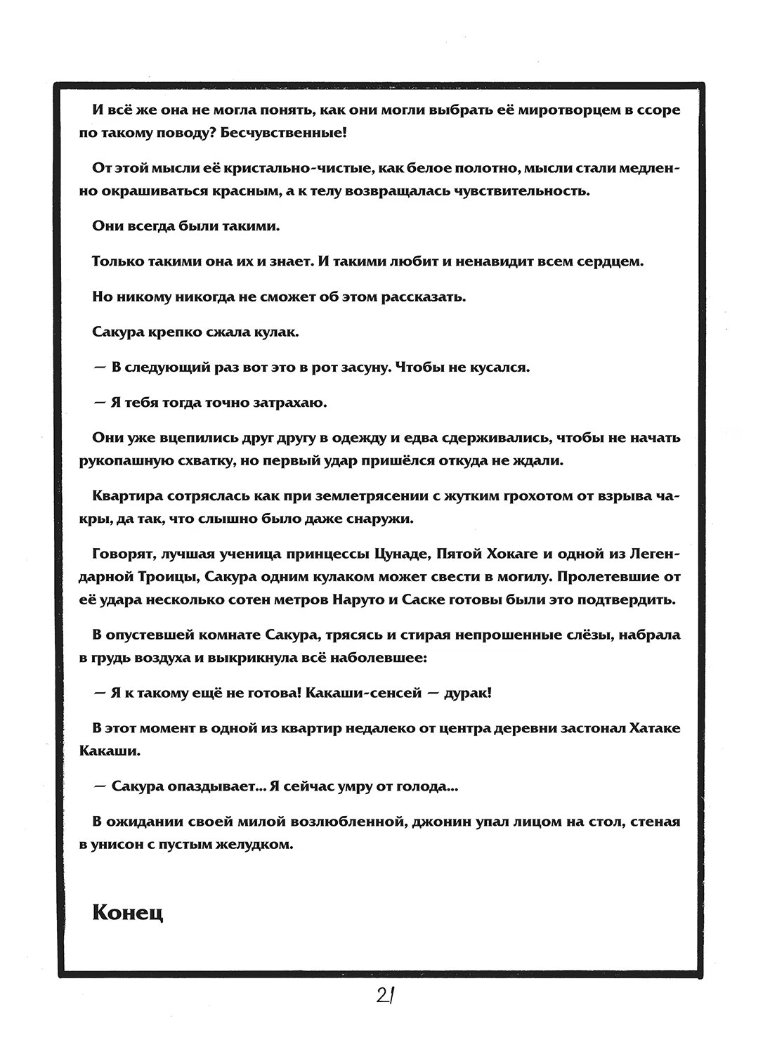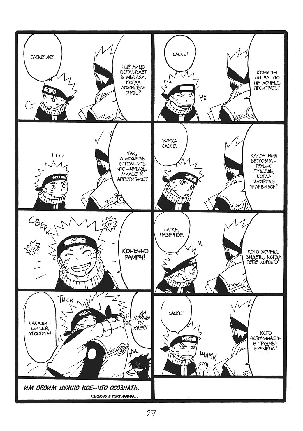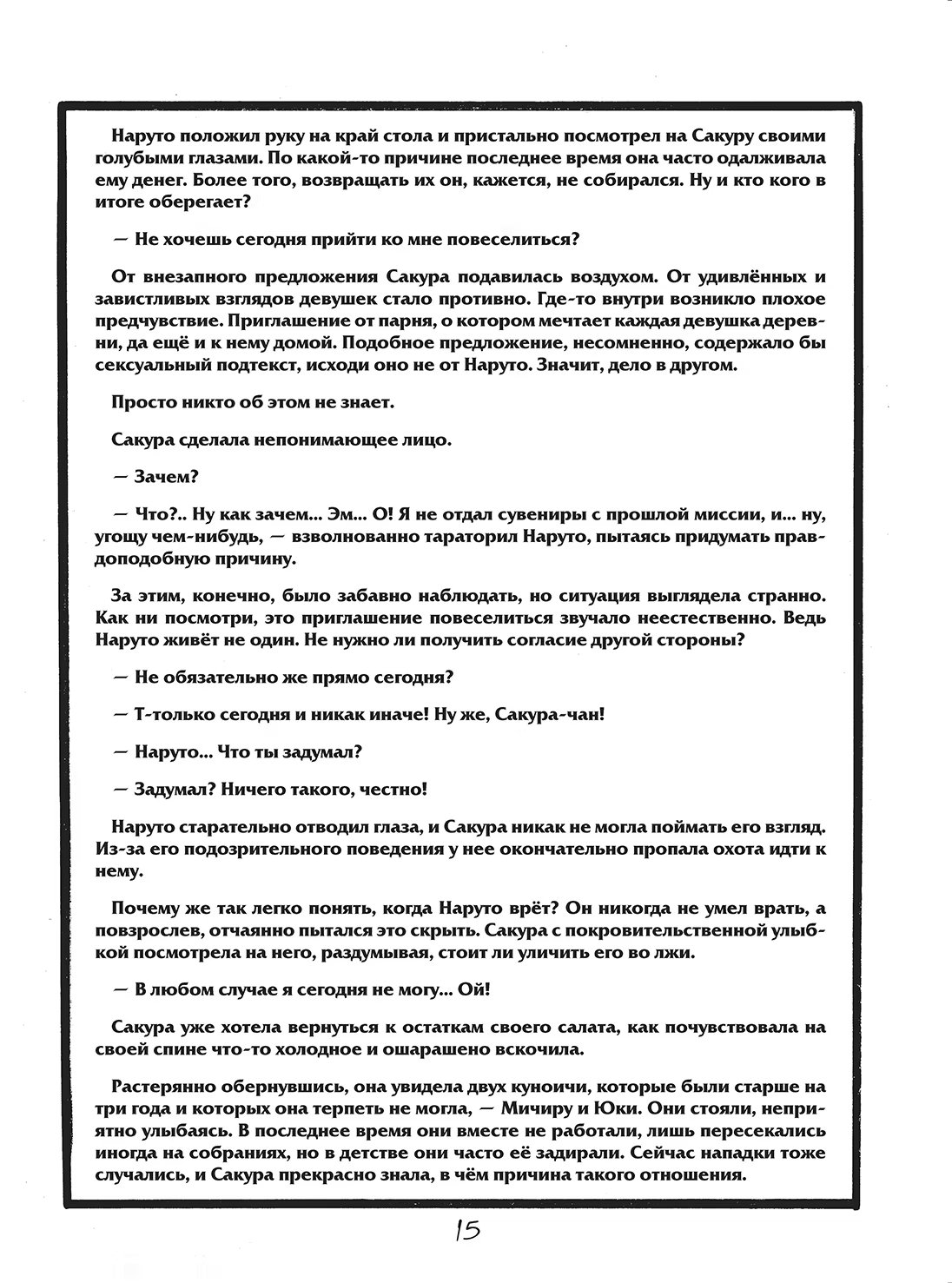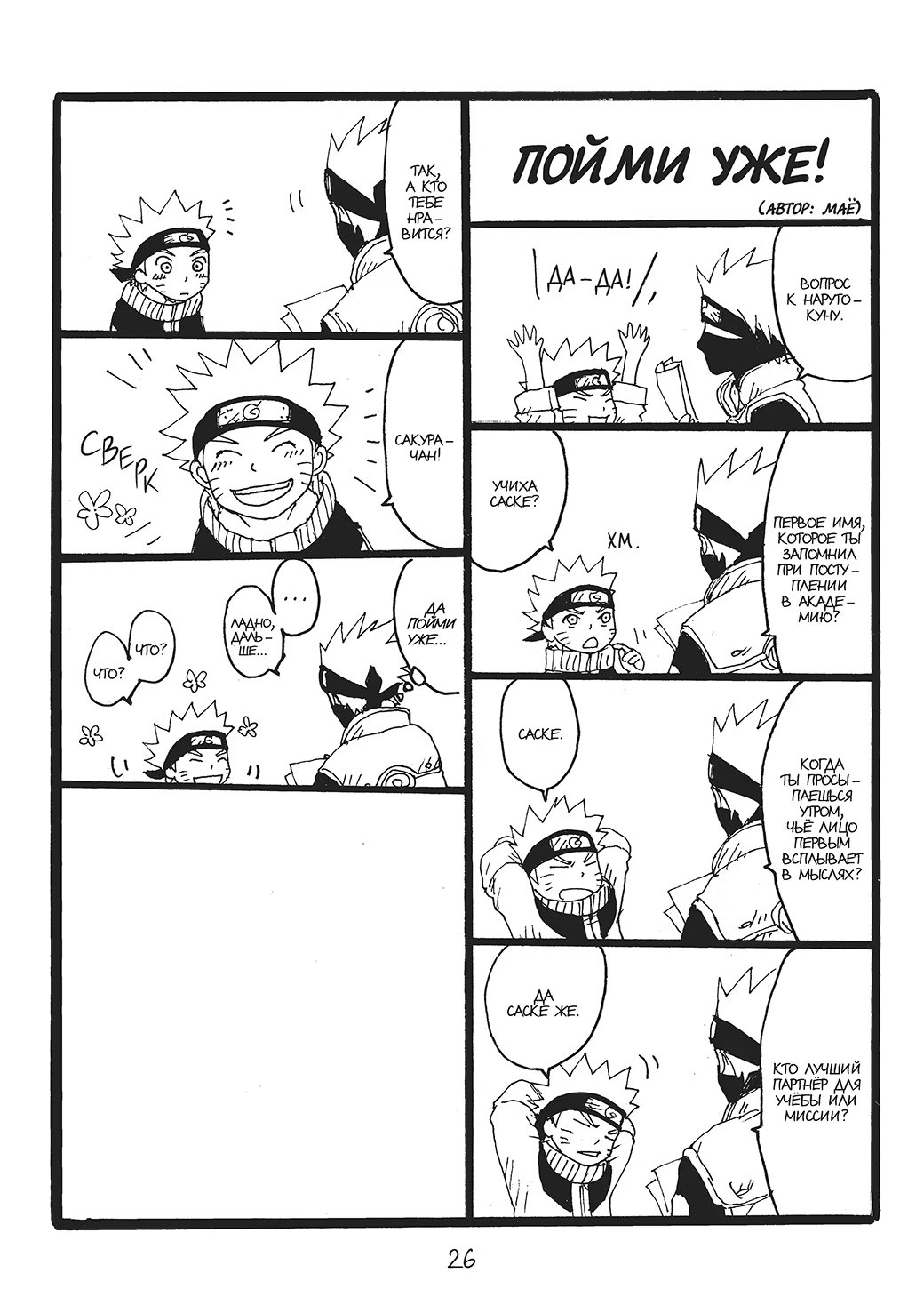 N-ная попытка команды номер 7 заглянуть наконец-то под маску Какаши-сенсея основывается на стратегии соблазнения, придуманной Сакурой. И все бы ничего, но в качестве жертвы куноичи благосклонно выбрала Саске, с чем категорически не согласен Наруто.