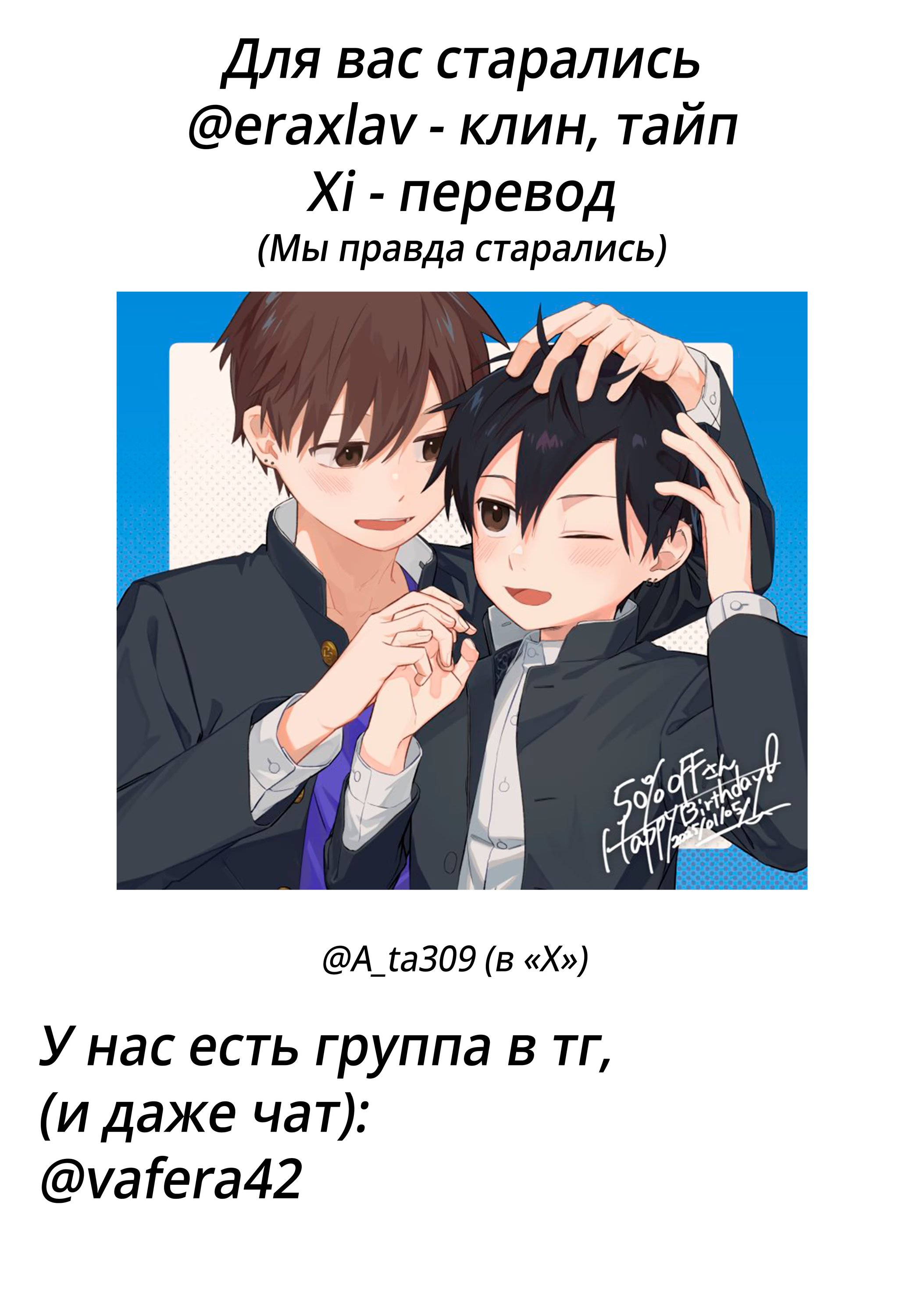 Nantou Backyard (Секрет Анана и Харуто) 1 Глава 1 2025-01-20 Показать все Читаем: Том: 1. Глава 1 ⬇ Пред глава ⬆ След глава Nantou Backyard (Секрет Анана и Харуто) 138 1 20 Янв в 0:00 00 0 Поделиться Переводчики: vafera Категории: романтикаяой18плюсшколасетакон Теги: манга Одноклассники Харуто узнали, что он гей, после чего он попал в лапы к хулиганам..... Комментарии 0 Добавить Отправить Комментариев еще нет. Вы можете стать первым Похожее Yuujou Haramase Triangle (Обременённый дружбой треугольник) 4 года назад 00 0 6 xxxHoLic dj - Party Love 104 Life! (Любовная партия) 13 лет назад 00 0 1 Work In (Коллеги) 12 лет назад 00 0 6 Wait a Minute, Harutora-kun (Давай немного подождем, Харутора-кун) 8 месяцев назад 00 0 7 Vampire Beru and Ghost Aki (Вампир Беру и призрак Аки) 2 года назад 00 0 56 Trip Lovers (Путешествие возлюбленных) 8 лет назад 00 0 1 The Thread Never Burned (Божья воля) 16 дней назад 00 0 18 The Pressure of an Evil Spirit, Sweetly Dripping (Этническая судьба и закон спаривания) 7 лет назад 00 0 1 The Boy&The Wolf (Мальчик и Волк) 7 лет назад 00 0 2 Sunlight spot (Солнечный зайчик) 3 года назад 00 0 20 Study Together (Совместное обучение) 12 лет назад 00 0 2 Shinjuku Lucky Hall (Счастливая Норка) 11 лет назад 00 0 6 Shiawase Gohan - Maki to Hanazawa (Счастье для двоих - Маки и Ханадзава) 6 лет назад 00 0 7 Seokeus Bireikeo (Автоматический выключатель) 7 месяцев назад 00 0 14 Sensual Reminder (Чувственное напоминание) 7 лет назад 00 0 2 Seinen Hakkaten (Горячая пора юности) 6 лет назад 00 0 6 Sabaku no Ouji-sama (Принц пустыни) 14 лет назад 00 0 2 Ouji to Kotori (Принц и маленькая птичка) 11 лет назад 00 0 8 Oretachi wa Gay Janai! (Мы Не Геи!) 3 года назад 00 0 15 Not Enough Time (Нехватка времени) 11 лет назад 00 0 6 Nonfiction Phrase (Научные выражения) 1 месяц назад 00 0 24 Nessa No Rakuen 11 лет назад 00 0 1 Nee Senpai, Oshiete yo (Эй, Семпай, Научите Меня) 6 лет назад 00 0 7 My secret is hidden under the bed (Мой секрет спрятан под кроватью) 6 лет назад 00 0 7 My secret is hidden under the bed (Мой секрет спрятан под кроватью) 13 лет назад 00 0 8 Matte, Suki (Постой, я люблю тебя) 1 год назад 00 0 6 Lucky Item (Счастливый билет) 14 лет назад 00 0 1 Kuroko no Basket dj - Futari ni wa himitsu ga aru (Наш с тобой секрет) 5 лет назад 00 0 2 Kugutsu Mawashi (Кукловод) 13 лет назад 00 0 1 Koko wa YES to Itte Kure (Пожалуйста, скажи да) 11 месяцев назад 00 0 7 Kiraide Isasete (Позволь мне тебя ненавидеть) 21 день назад 00 0 47 Kaizoku Game (Пиратская Игра) 10 лет назад 00 0 4 Junjou Escape (Чистый побег) 2 года назад 00 0 8 I'll Be With You Tomorrow (Завтра я буду с тобой) 12 лет назад 00 0 6 It waits with tonight "Mr." (Сегодня вечером, господин) 9 лет назад 00 0 4 Insolent Older Brother (Мой любимый старший брат) 6 лет назад 00 0 6 Innocent Maze (Невинная мозаика) 13 лет назад 00 0 6 Ikusen no Toki o Koete (Более тысячи раз) 10 лет назад 00 0 8 Horetara makeyo? (Если влюбишься - проиграешь) 2 месяца назад 00 0 6 Heaven's Darling (Любимец небес) 8 месяцев назад 00 0 7 Heart no Kakurega (Убежище для сердца) 4 года назад 00 0 34 Don't Let Go of This Hand (Не отпускай мою руку) 10 месяцев назад 00 0 18 Cherry Poppers (Вишнёвая хлопушка) 12 лет назад 00 0 6 Bright Light Sprout (Ромашка) 4 года назад 00 0 11 Ame to Kiss (Конфета и поцелуй) 7 лет назад 00 0 7 A Lie and Coffee and Sweet-Kiss (Ложь, кофе и сладкий поцелуй) 13 лет назад 00 0 6