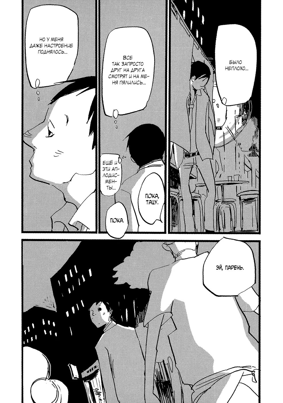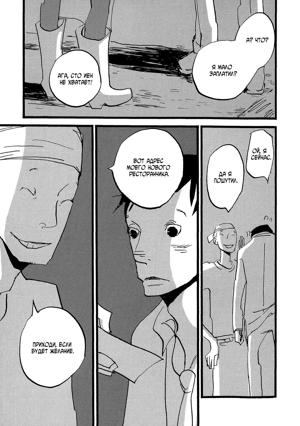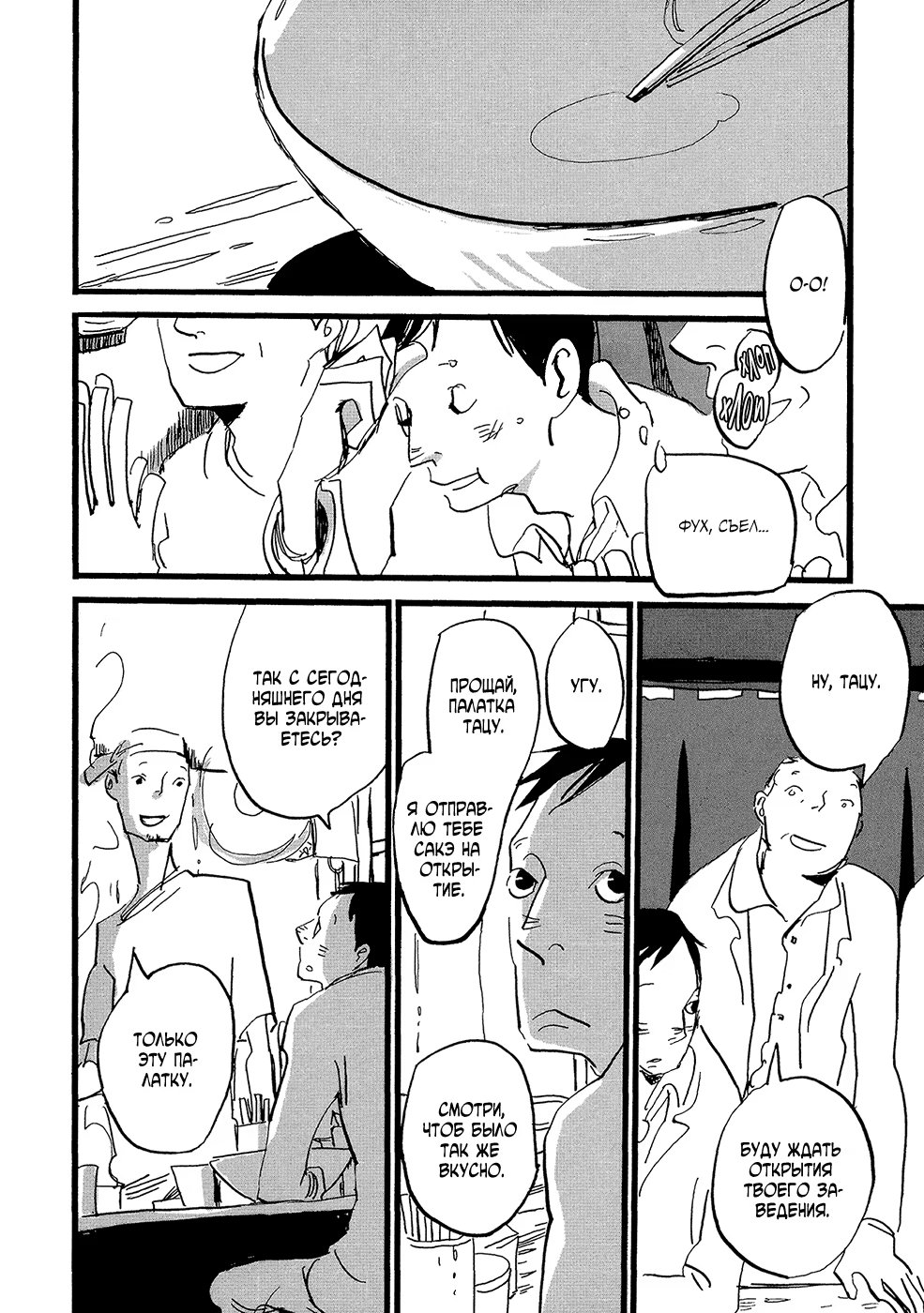 lapin pelucheЗамечательная повседневная жизнь владельца рамэнной, который беспокоится о своём здоровье, Нака-сана, его любовника и постоянного клиента ресторанчика, Мацусин-куна, и всех людей, которые их окружают. Также в сборник включена вторая история, «Чернее чёрного», о Ята-сане, который заботится о своих волосах.