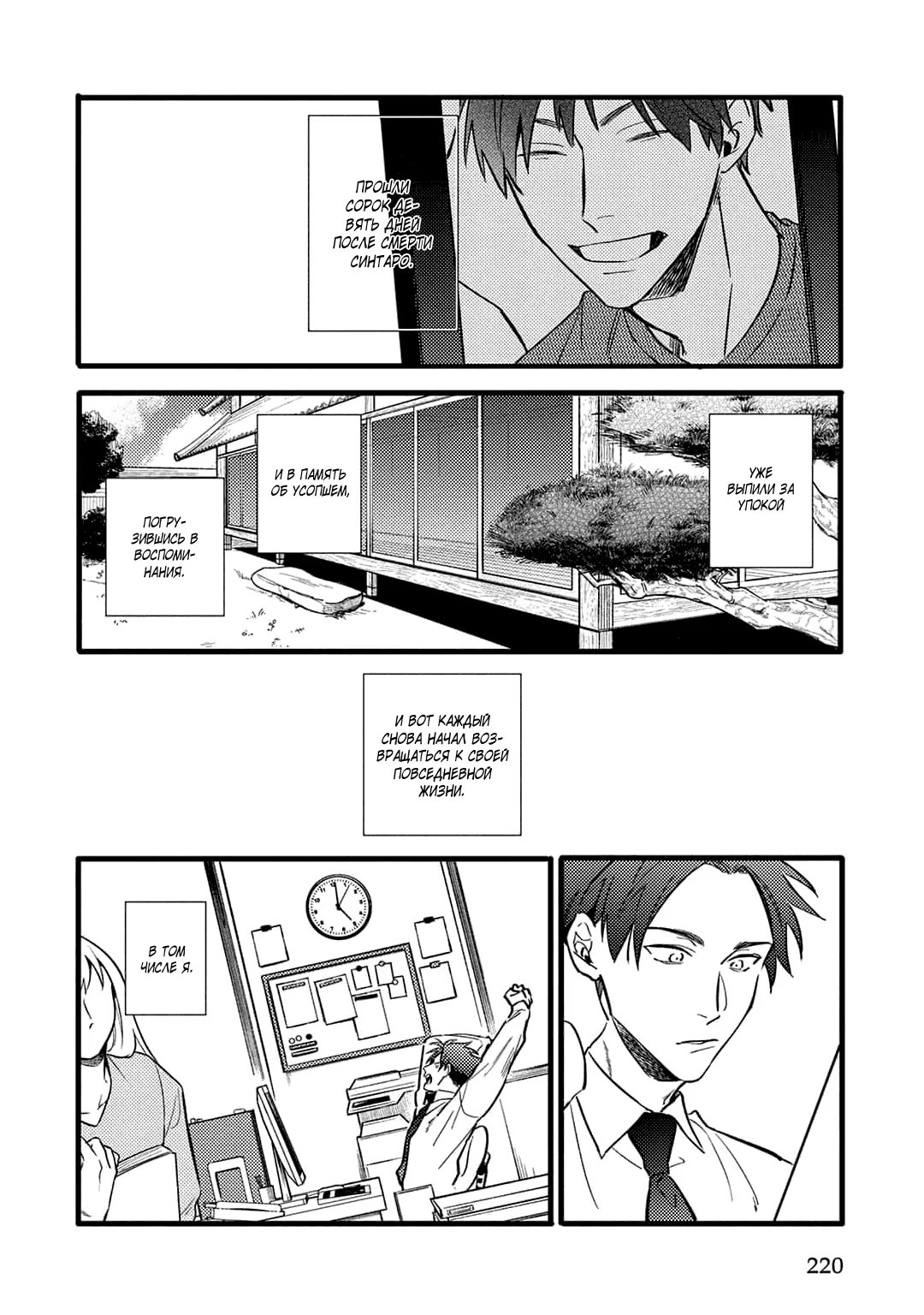 булочкиМасанори, обычный работник городской мэрии, внезапно получает известие о смерти своего близкого друга Синтаро, который не так давно переехал в Токио. В день похорон неожиданно появляется молодой человек, утверждающий, что он друг Синтаро. И к тому же намеревается остаться в их городе ещё на 49 дней.