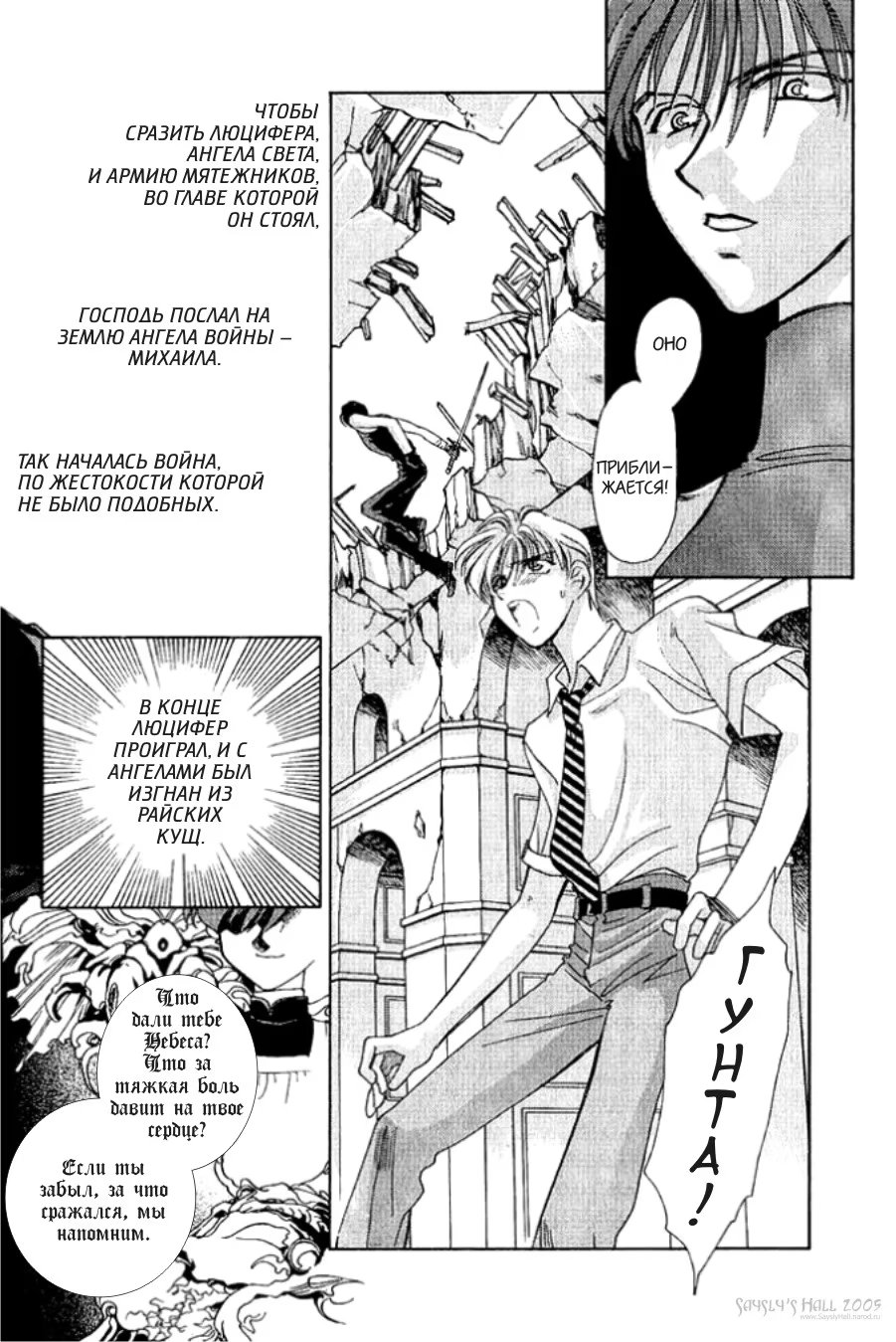 sayslys hallЛюцифер, в незапамятные времена поднявший восстание против Бога и ставший одним из Падших Ангелов... Его миссия - искупить свою вину, его цель - вернуть ангелов в райские кущи, остановить мерзости, творимые озлобленными существами. И рядом с ним - юный мальчик из католической школы, вокруг которого странным образом крутятся жертвы Охотника...