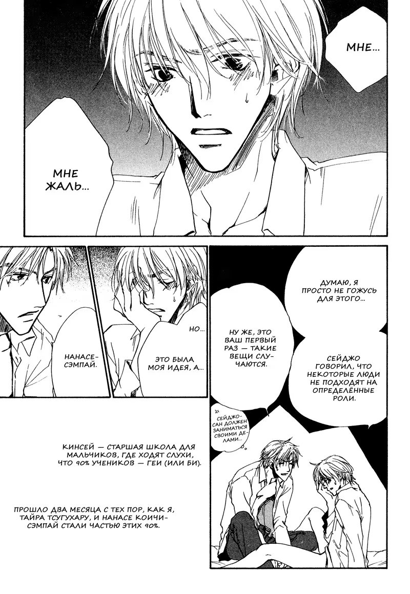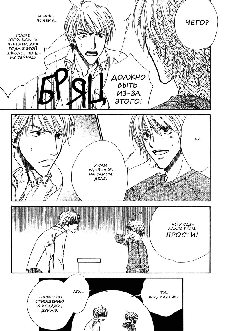 ублюдокНанасе и Хэйджи, должно быть, одни из немногих нормальных парней в школе, где 90% студентов, по слухам, геи (или би). И вот простой подарок на Белый день всё пускает наперекосяк, однако, иногда последствия неизбежны.