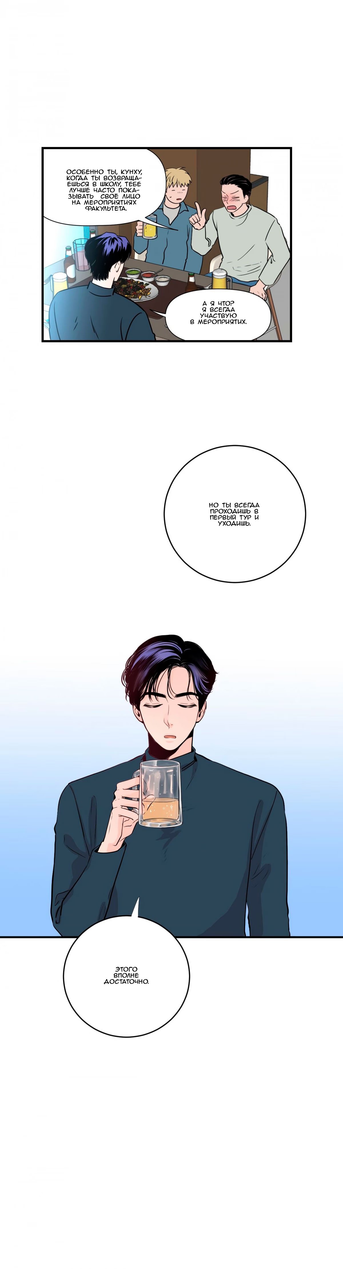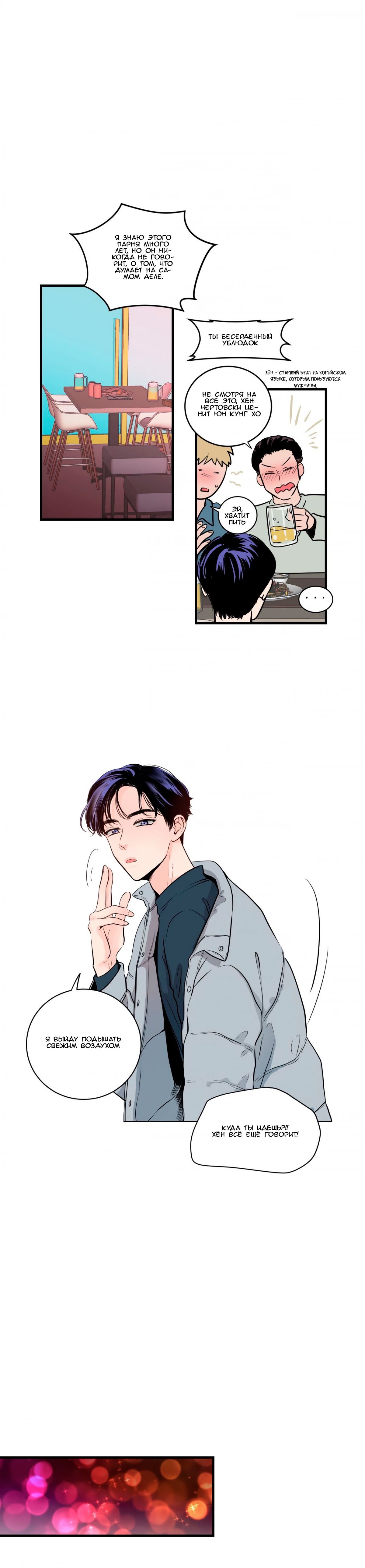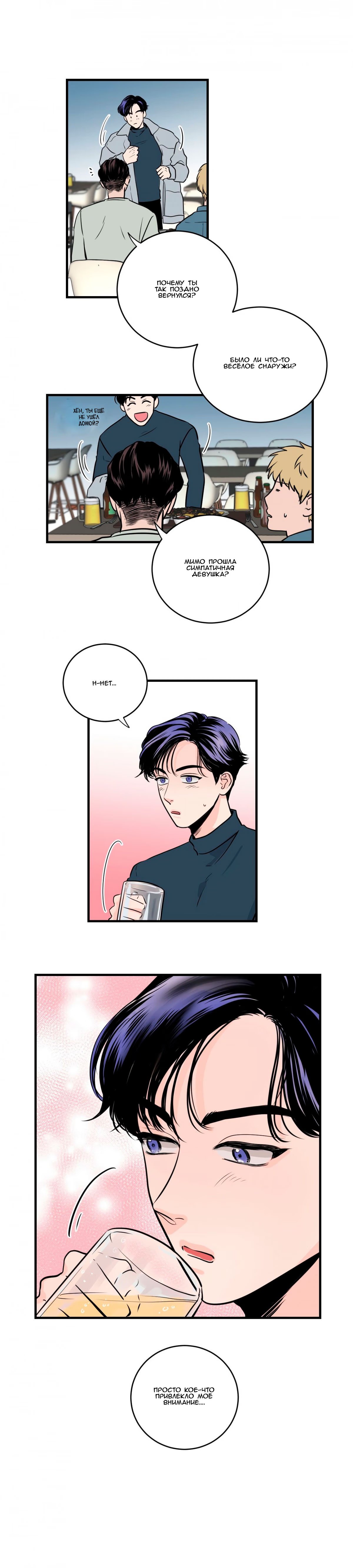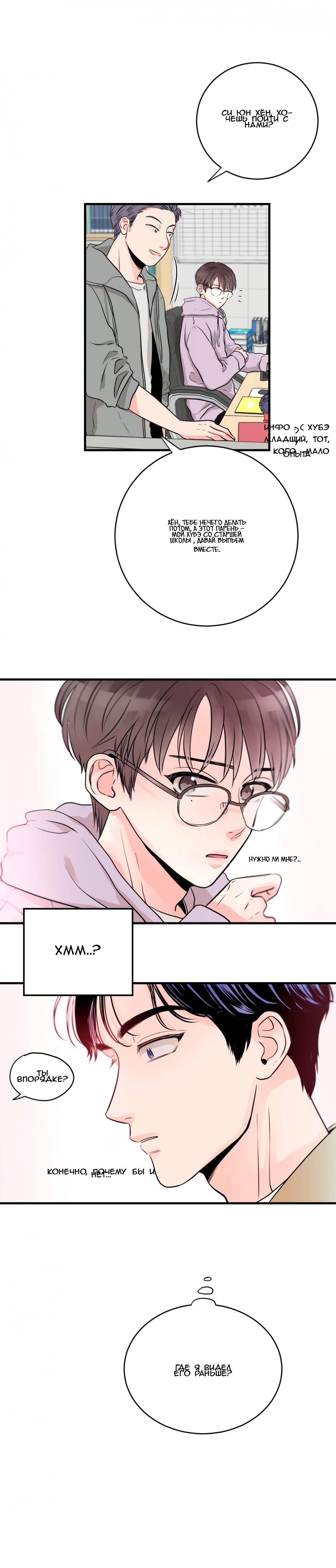 sorklaboy4ikЮн Кунху не любит тратить много времени на встречи с людьми, он предпочитает легкие и веселые отношения с другими. Когда он выходит, чтобы покурить, он случайно становится свидетелем того, как гей-пара целуется впервые в своей жизни. 2 месяца спустя его сонбэ приглашает его выпить вместе со своим коллегой Сиюн, которого Кунху откуда-то помнит. Когда Сиюн снимает очки, он понимает, что Сиюн была одной из гей-пары, которую он видел раньше.
