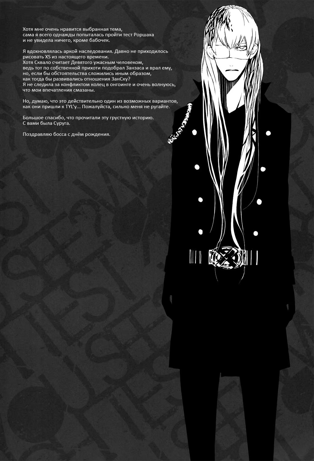 Katekyo Hitman Reborn! dj - Rorschach Test (Тест Роршаха) 1 Глава 1 2017-04-08 Показать все Читаем: Том: 1. Глава 1 ⬇ Пред глава ⬆ След глава Katekyo Hitman Reborn! dj - Rorschach Test (Тест Роршаха) 25 0 8 Апр 2017 в 0:00 00 0 Поделиться Переводчики: pain and ecstasy Категории: сёнэн айдодзинси Теги: манга Пейринг: Занзас/Сквало Комментарии 0 Добавить Отправить Комментариев еще нет. Вы можете стать первым Похожее Test Play (Испытательная Игра) 9 лет назад 00 0 1 Prince of Tennis dj - You are a Pet (Ты - мой питомец) 14 лет назад 00 0 1 Naruto dj - The Psychometry of the Boy I'm Interested In (Психология мальчика, который мне интересен) 14 лет назад 00 0 1 Make-up test. (Подготовка к тесту.) 5 лет назад 00 0 1 Katekyo Hitman Reborn! Fantastic Fantasy Hour (Чудесный фантастический час) 3 года назад 00 0 1 Katekyo Hitman Reborn! Lyrical Magical Time (Лирическое волшебное время) 3 года назад 00 0 1 Katekyo Hitman Reborn! Midnight Temptation (Полуночная страсть) 3 года назад 00 0 1 Katekyo-Hitman, Reborn! dj - Nyan to wonderful (Волшебное мяуканье) 13 лет назад 00 0 1 Katekyou Hitman Reborn! dj - Tairyoumaru 10 лет назад 00 0 1 Katekyo Hitman Reborn! dj - Yoroshiku 13 лет назад 00 0 1 Katekyo Hitman Reborn! dj - Yuugai Kagoubutsu (Губительная смесь) 13 лет назад 00 0 1 Katekyo Hitman Reborn! dj - Сrescendo (Крещендо) 13 лет назад 00 0 1 Katekyo Hitman Reborn! dj - Vampire Wars (Вампирские войны) 10 лет назад 00 0 1 Katekyo Hitman Reborn! dj - Virginia (Непорочность) 11 лет назад 00 0 1 Katekyo Hitman Reborn! dj - That's Tough Luck!! (Это неудачи!!) 14 лет назад 00 0 1 Katekyo Hitman Reborn! dj - The Boy Next Door (Мальчик по соседству) 13 лет назад 00 0 1 Katekyo Hitman Reborn! dj - Tayutau Homatsu no 12 лет назад 00 0 1 Katekyo Hitman Reborn! dj - Sanctuary (Sanctuary) 14 лет назад 00 0 1 Katekyo Hitman Reborn! dj - Search for Reason (Поиск причины) 14 лет назад 00 0 1 Katekyo Hitman Reborn! dj - Seaside School (Побережье) 13 лет назад 00 0 1 Katekyo Hitman Reborn! dj - Shall We Fall in Love (Katekyo Hitman Reborn! dj - Saa, Koi wo Shiyou ka) 14 лет назад 00 0 1 Katekyo Hitman Reborn! dj - Shoumonai White Day no Hon (Бесполезный Белый День) 13 лет назад 00 0 1 Katekyo Hitman Reborn! dj - Slow motion (Slow motion) 14 лет назад 00 0 1 Katekyo Hitman Reborn! Dj - Small & Round Kyouya-chan 3 (Katekyo Hitman Reborn! Dj - Милый и Круглый Кея-тян 3) 13 лет назад 00 0 1 Katekyo Hitman Reborn! dj - Sametan (Холодное пробуждение) 9 лет назад 00 0 1 Katekyo Hitman Reborn! dj - Onsen Ryokou (Горячие источники) 10 лет назад 00 0 2 Katekyo Hitman Reborn! dj - Overcompensation (Сверхкомпенсация) 13 лет назад 00 0 1 Katekyo Hitman Reborn! dj - Overexcited (Перевозбужден) 13 лет назад 00 0 1 Katekyo Hitman Reborn! dj - Overjoyed! ('Katekyo Hitman Reborn! dj - Чересчур счастливый!) 13 лет назад 00 0 1 Katekyo Hitman Reborn! dj - Pure (Девственник) 13 лет назад 00 0 1 Katekyo Hitman Reborn! dj - Quiz (Тест) 14 лет назад 00 0 1 Katekyo Hitman Reborn! Dj - R-roky (Katekyo Hitman Reborn! Dj - Р-року) 13 лет назад 00 0 1 Katekyo Hitman Reborn! dj - Natsuyasumi (Летние каникулы) 14 лет назад 00 0 1 Katekyo Hitman Reborn! dj - Neko no Iibun (Кошачье признание) 12 лет назад 00 0 1 Katekyo Hitman Reborn! dj - Neko wa suki desu ka (А вы любите кошек?) 12 лет назад 00 0 1 Katekyo Hitman Reborn! dj - Nounai Sapuri (Слабое сопротивление) 13 лет назад 00 0 1 Katekyo Hitman Reborn! dj - Minami Italia Shinjuu (Самоубийство влюблённых в Южной Италии) 12 лет назад 00 0 1 Katekyo Hitman Reborn! Dj - Misunderstanding (Katekyo Hitman Reborn! Dj - Недоразумение) 13 лет назад 00 0 1 Katekyo Hitman Reborn! dj - Monopolizer (Собственник) 14 лет назад 00 0 1 Katekyo Hitman Reborn! dj - Mr. & Mr. Hitman? 14 лет назад 00 0 1 Katekyo Hitman Reborn! dj - Mukou no Hi 10 лет назад 00 0 1 Katekyo Hitman Reborn! dj - Nakayama Hospital 13 лет назад 00 0 1 Katekyo Hitman Reborn! dj - Lover's spice XXX (Некоторые любят поострее) 12 лет назад 00 0 1 Katekyo Hitman Reborn! dj - Maika (Майка) 13 лет назад 00 0 2 Katekyo Hitman Reborn! dj - Kozakana Hell (Ад маленьких рыбок) 10 лет назад 00 0 1 Katekyo Hitman Reborn! dj - Kusuriyubi no Haitoku 14 лет назад 00 0 1 Katekyo Hitman Reborn! dj - Lewd Culture Festival (Развратный культурный фестиваль) 13 лет назад 00 0 1 Katekyo Hitman Reborn! dj - Lie (Katekyo Hitman Reborn! dj - Обманщик) 14 лет назад 00 0 1 Katekyo Hitman Reborn! Dj - Lieto Fine (Счастливый конец) 13 лет назад 00 0 1 Katekyo Hitman Reborn! dj - Limiter (Причина) 13 лет назад 00 0 1